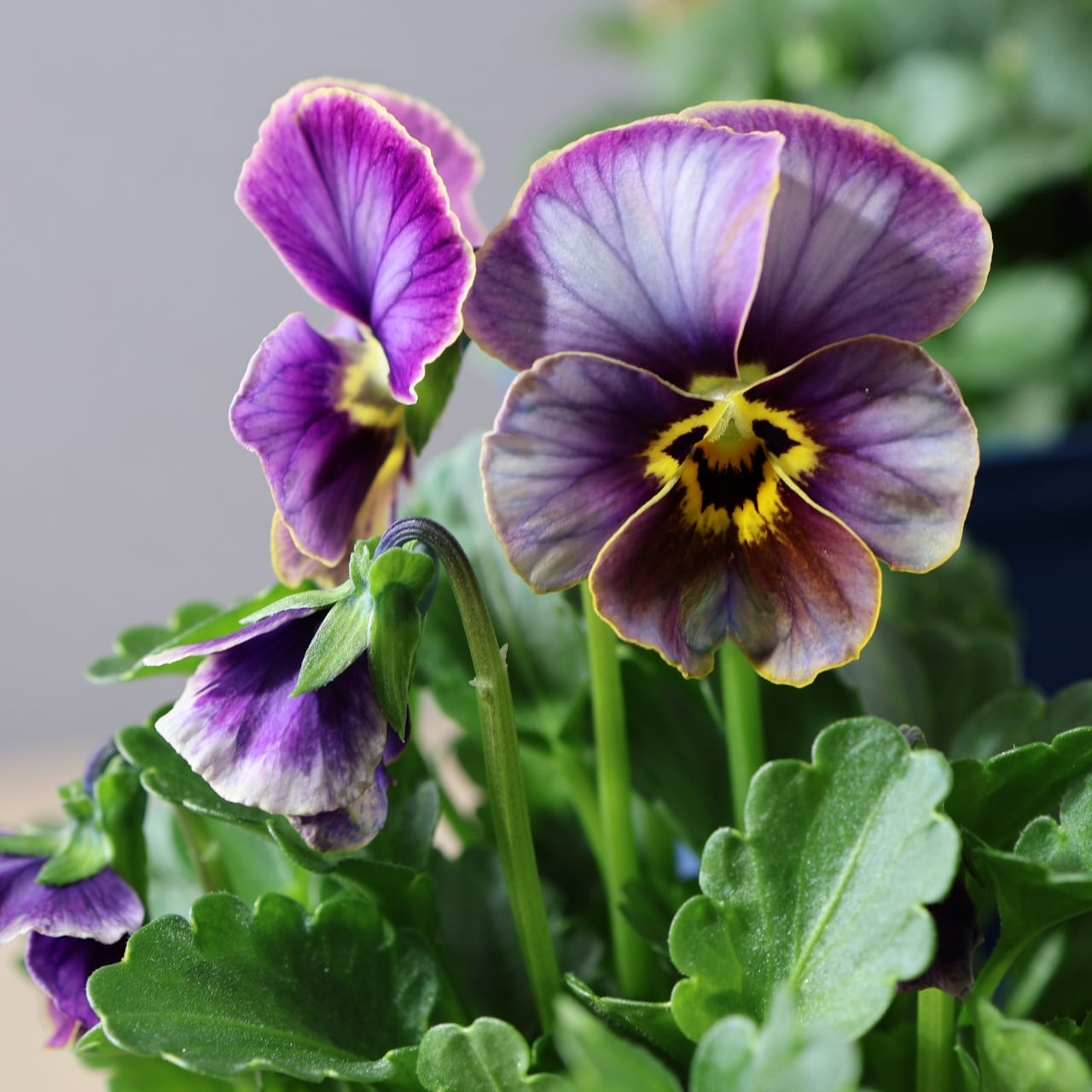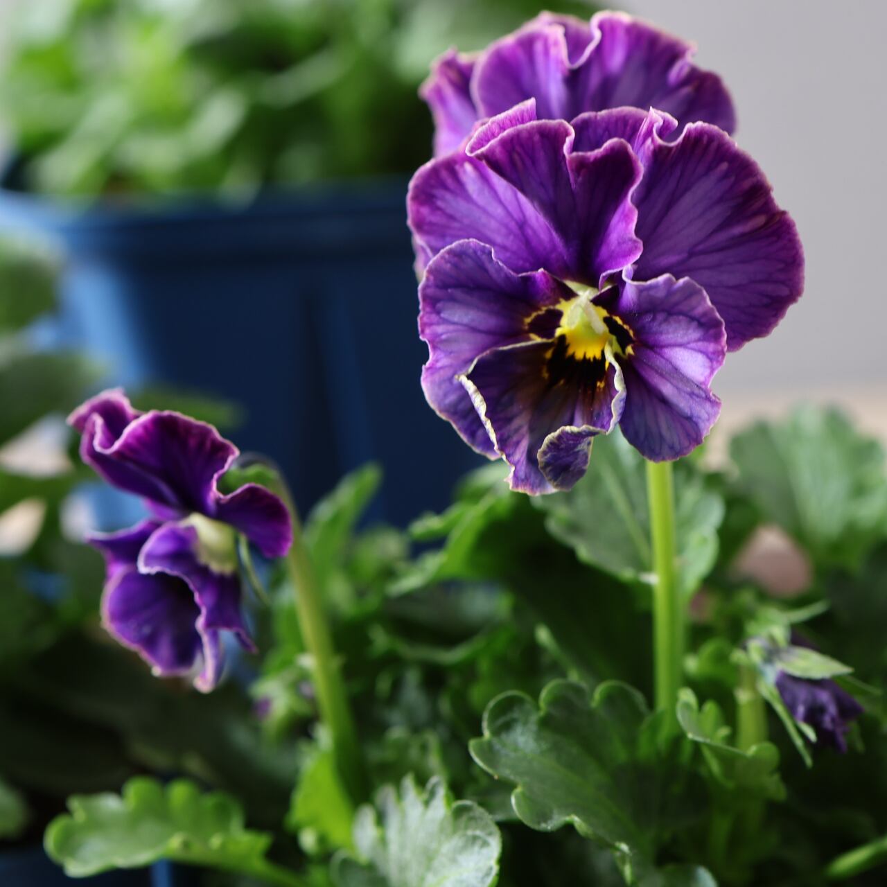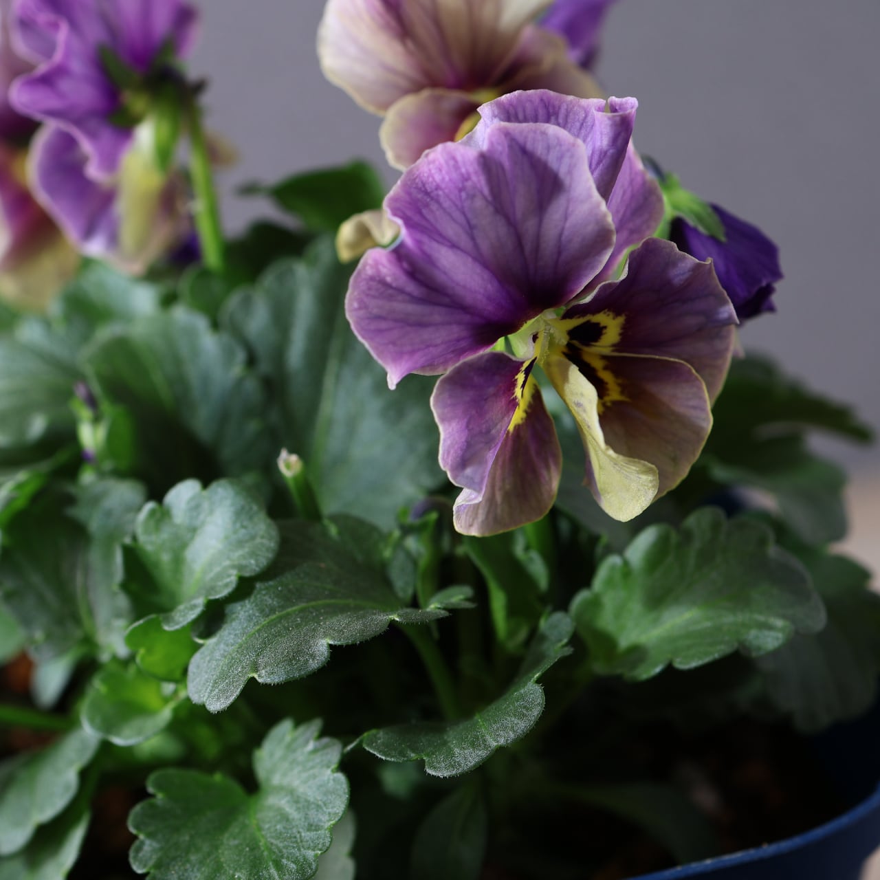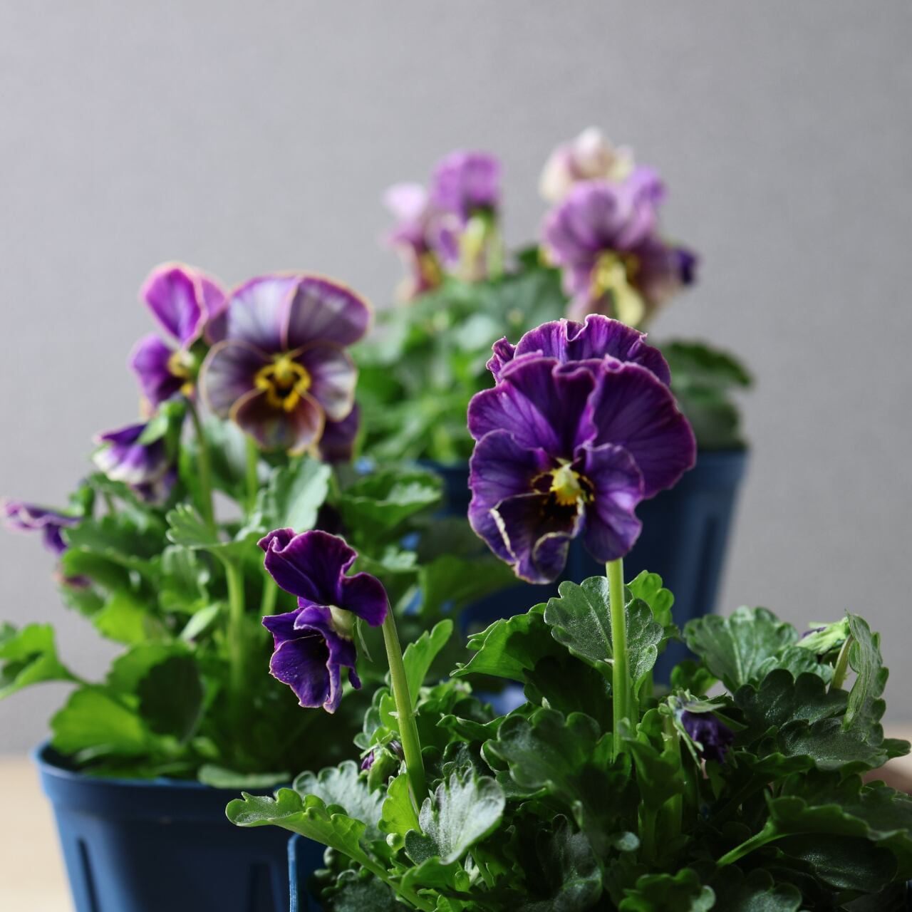 秋から春まで長く咲き続け、寄せ植えの主役としても、単品植えのアクセントとしても抜群の存在感。落ち着いたブルー系は、冬のガーデンに上品な彩りを添えてくれます。