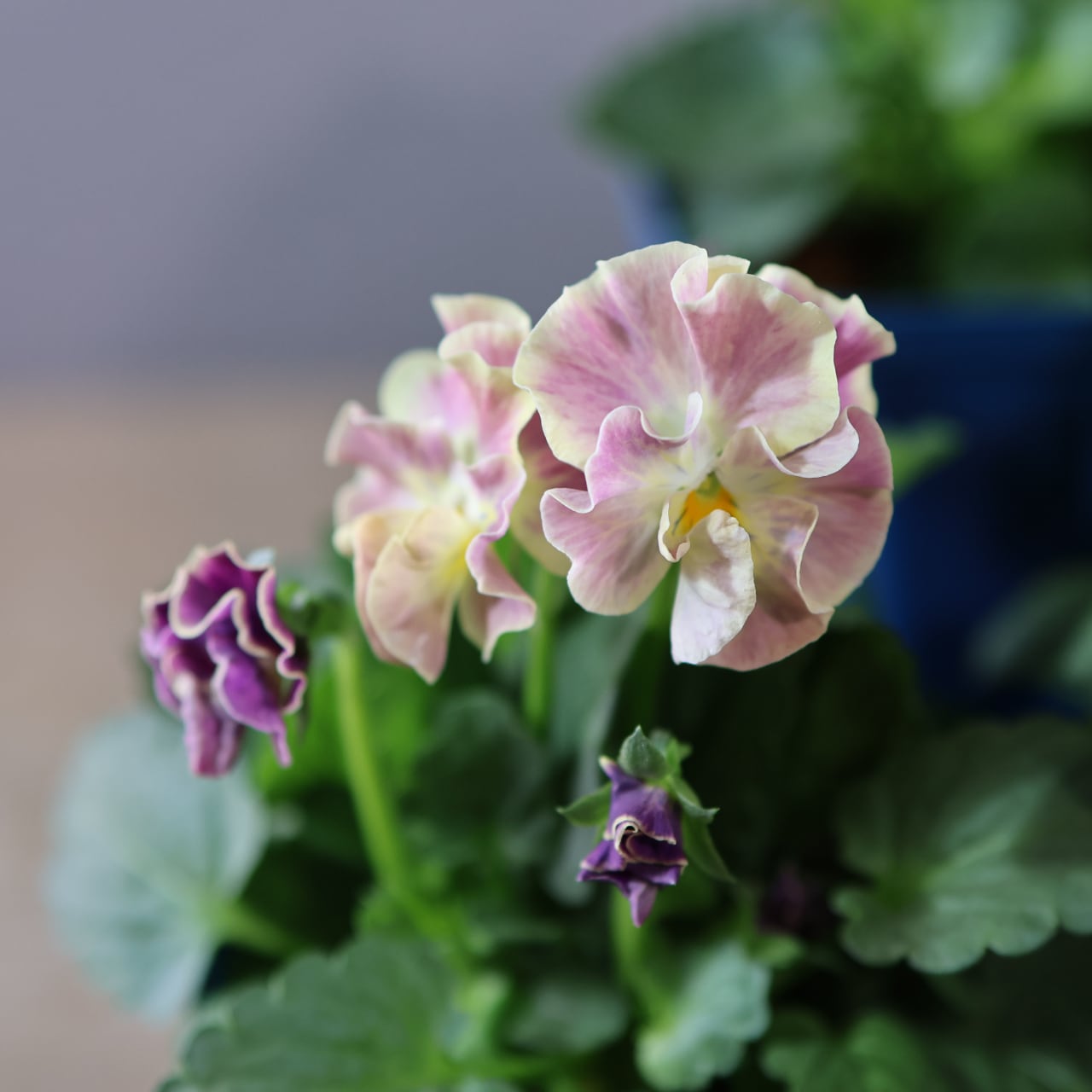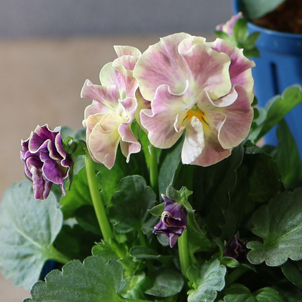 エレガントで個性的な彩りを放つ、「ヌーヴェルヴァーグ アンジュ」。育種の名門 サトウ園芸 が丹精込めて育成した、高品質フリル咲きビオラの逸品です。ベージュ・アプリコットなどのニュアンスカラーの花びらがふんわりとした波打ちが印象的で可愛さ抜群です。