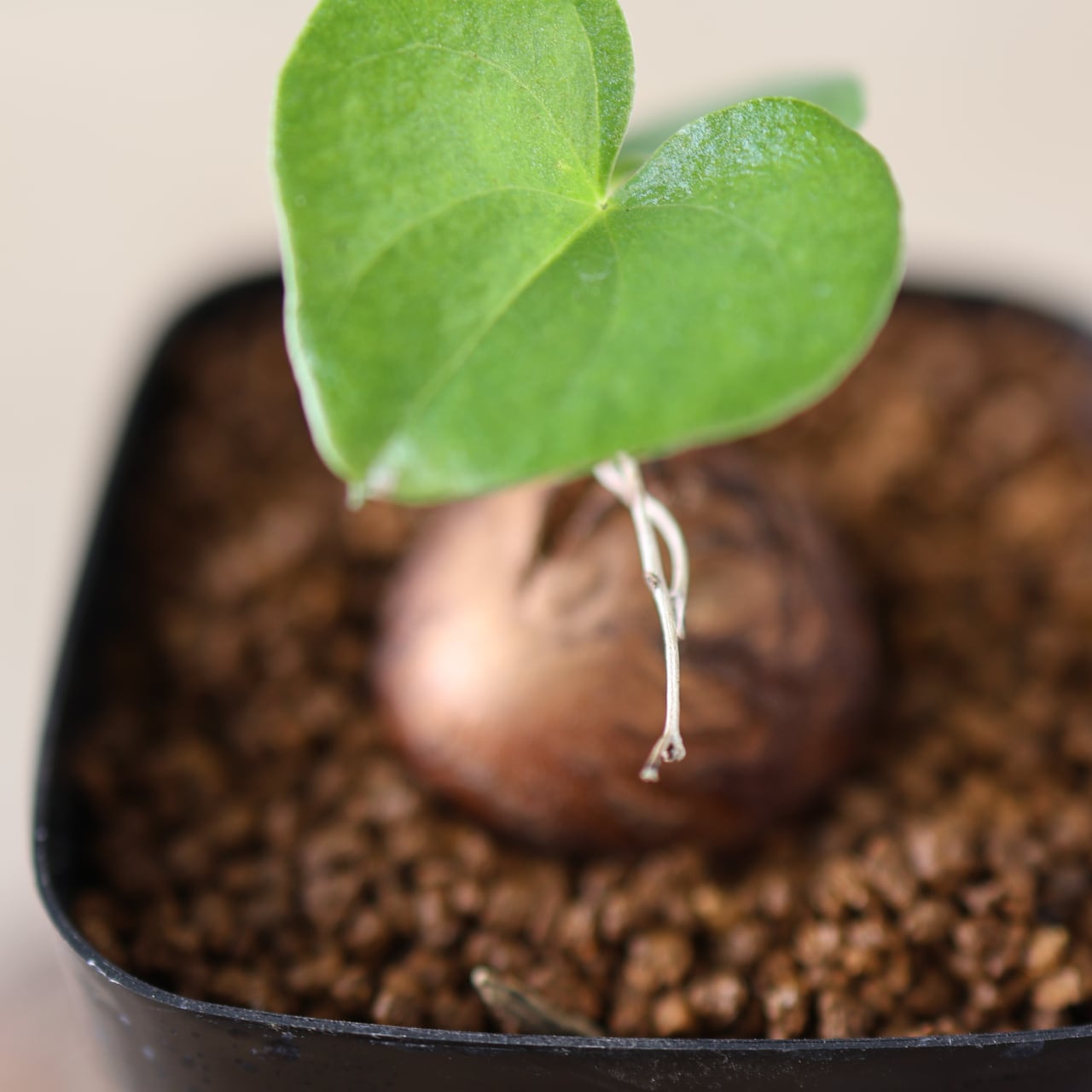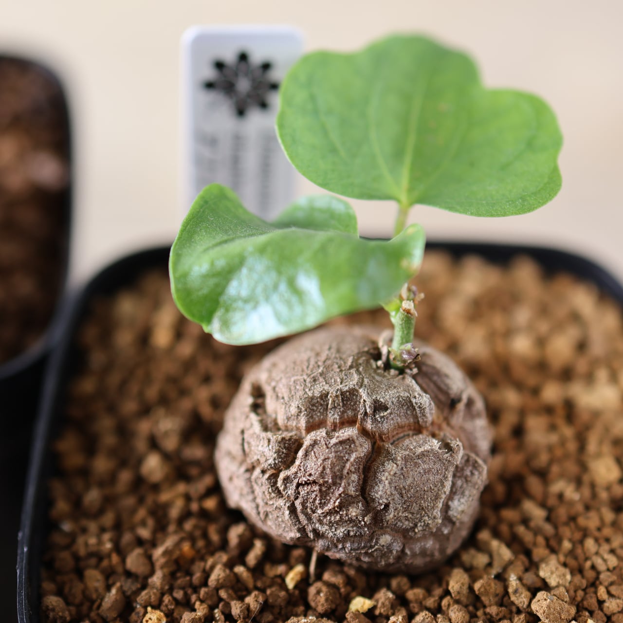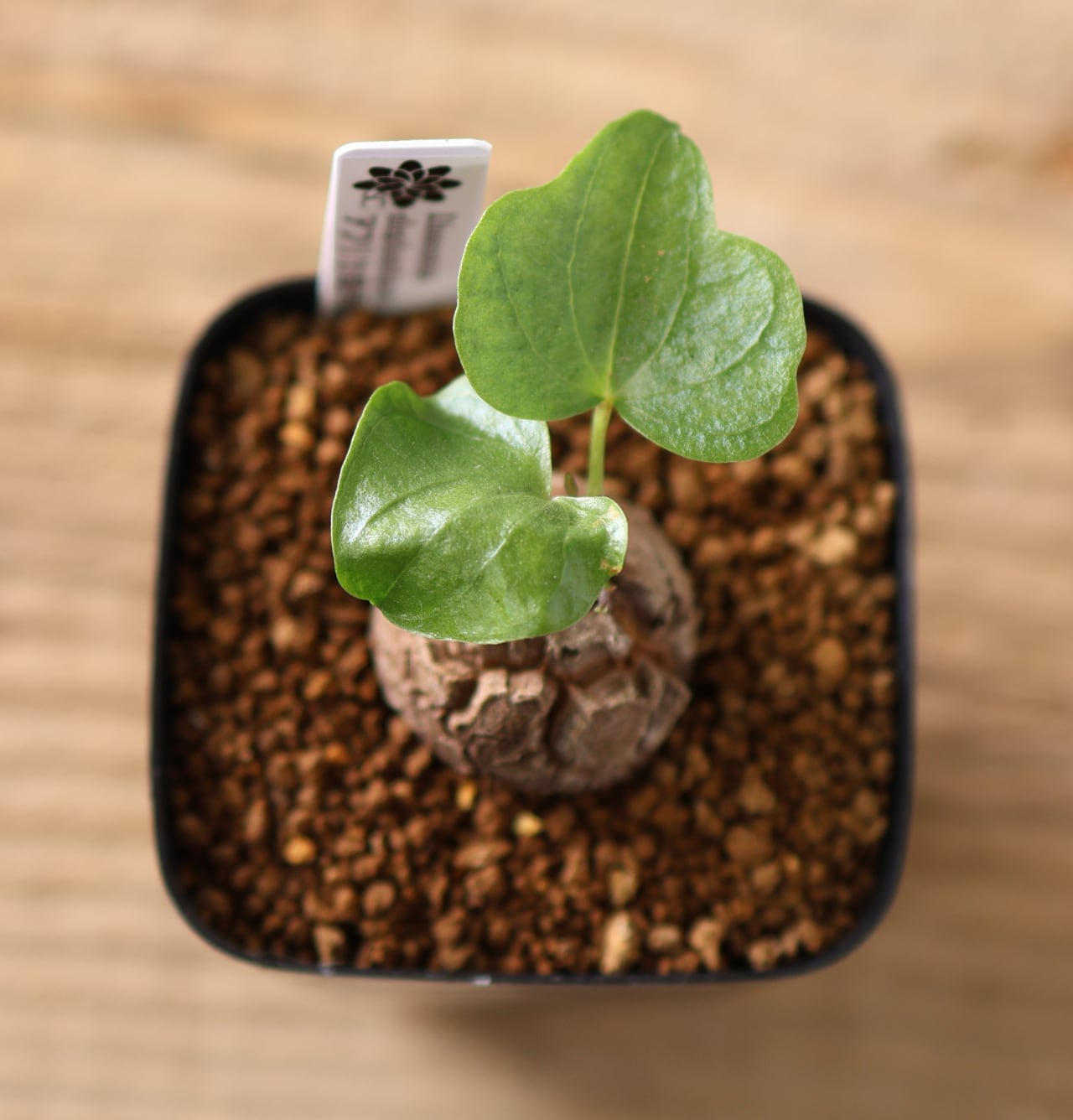 冬型なので、9月上旬から5月中旬が成長期です。夏の終わり頃からつるを伸ばして葉を展開し、冬と春を過ごした後、梅雨前につるや葉が枯れ、塊根のみとなります。
