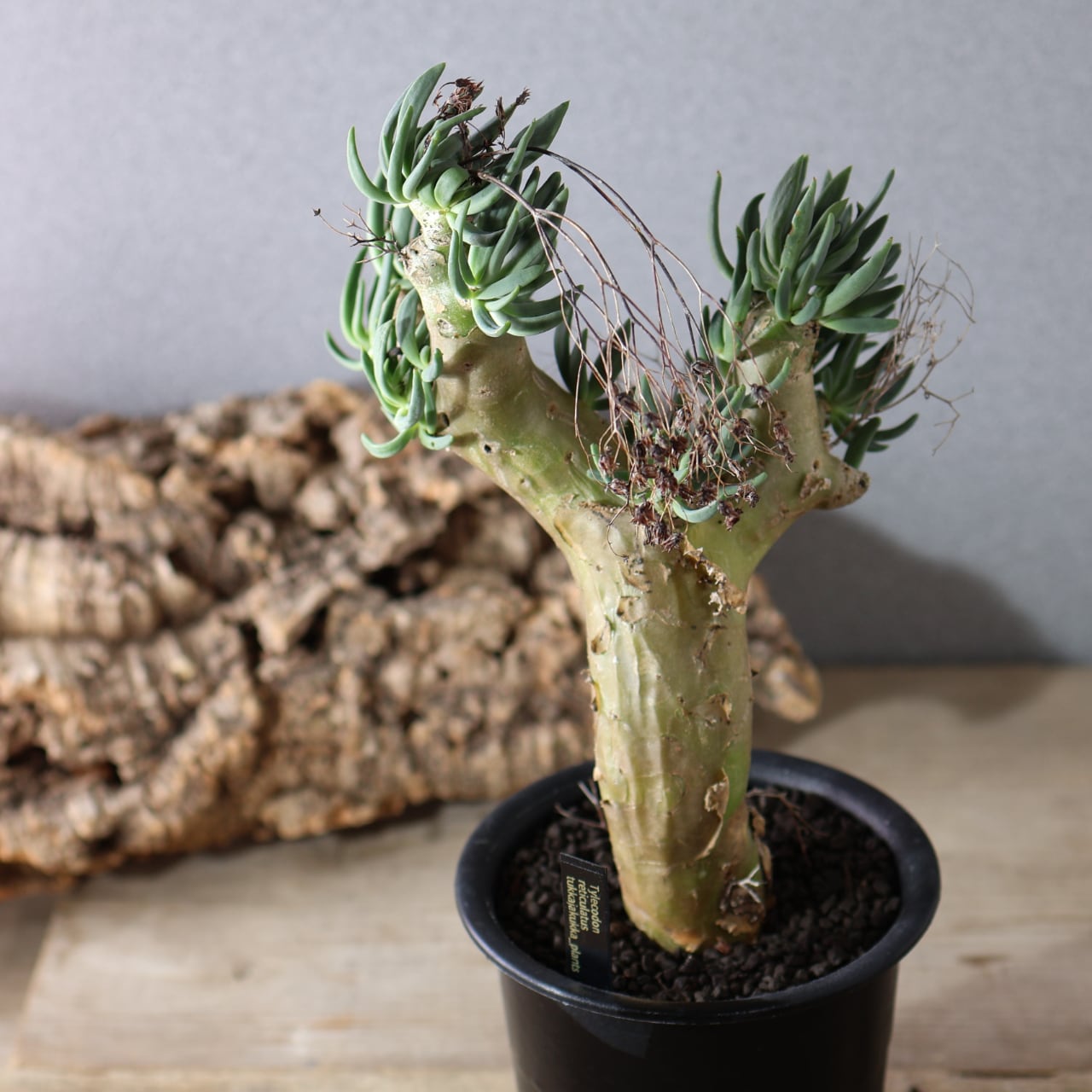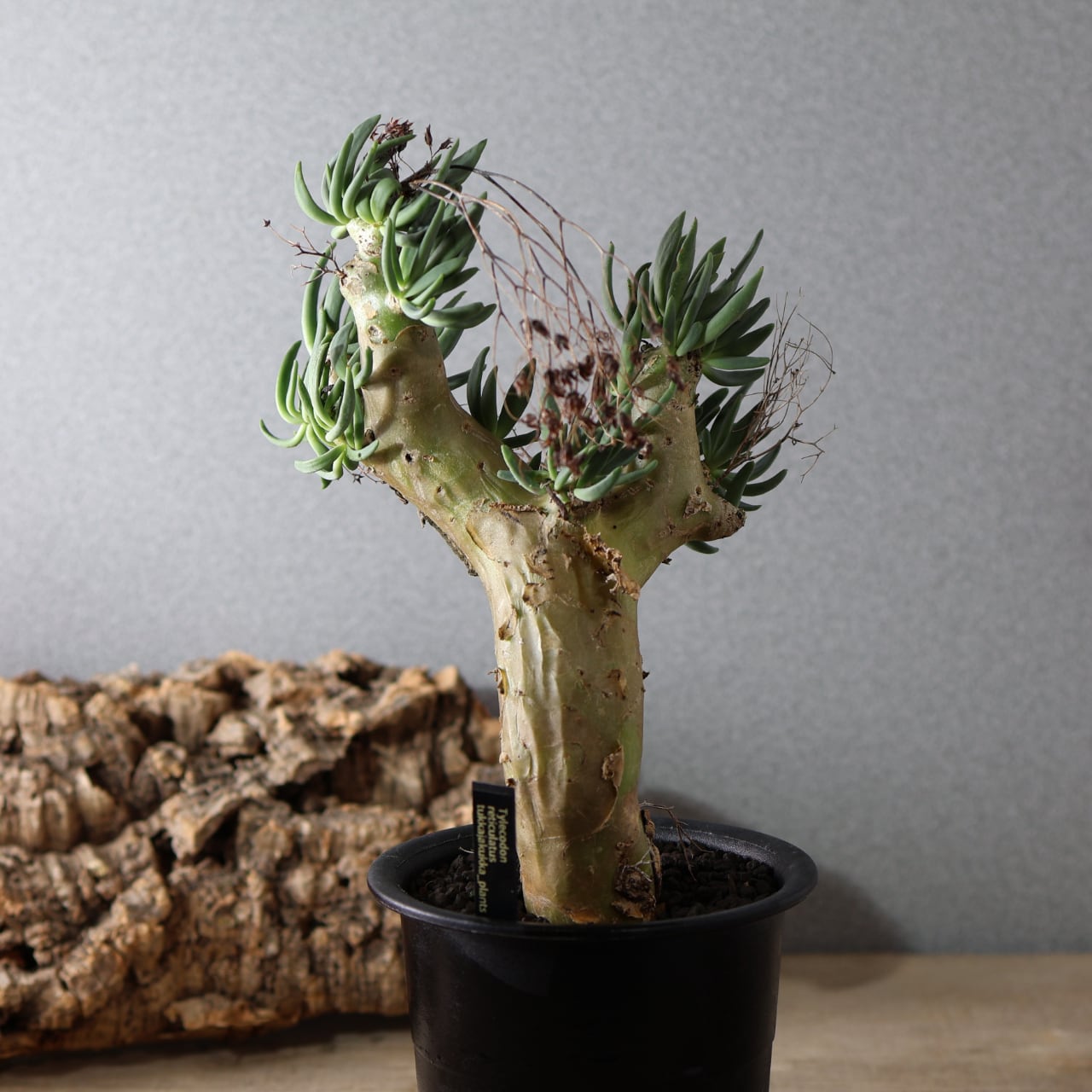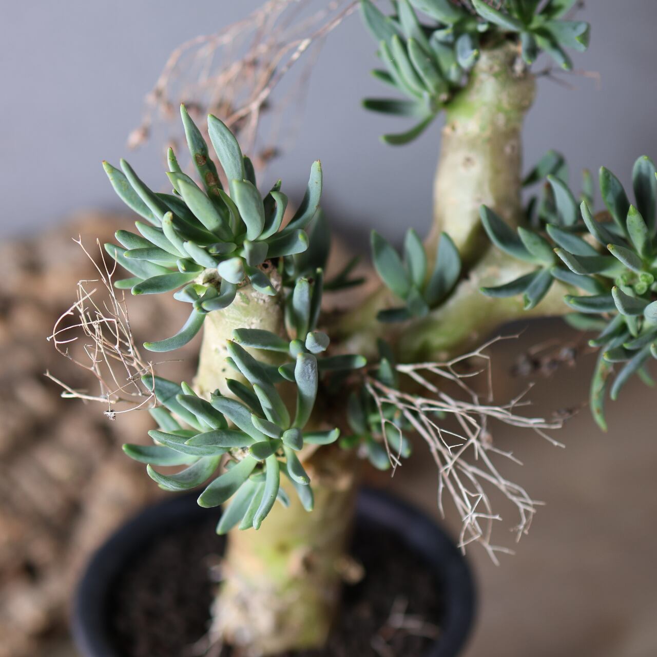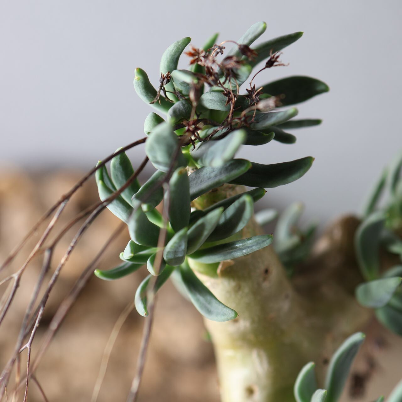 チレコドン・レティキュラーツスの最大の特徴は、花柄(花梗)、が枯れた跡が細い針金のように残りつづけ、年を経るごとにどんどん奇妙な見た目になっていくところです。