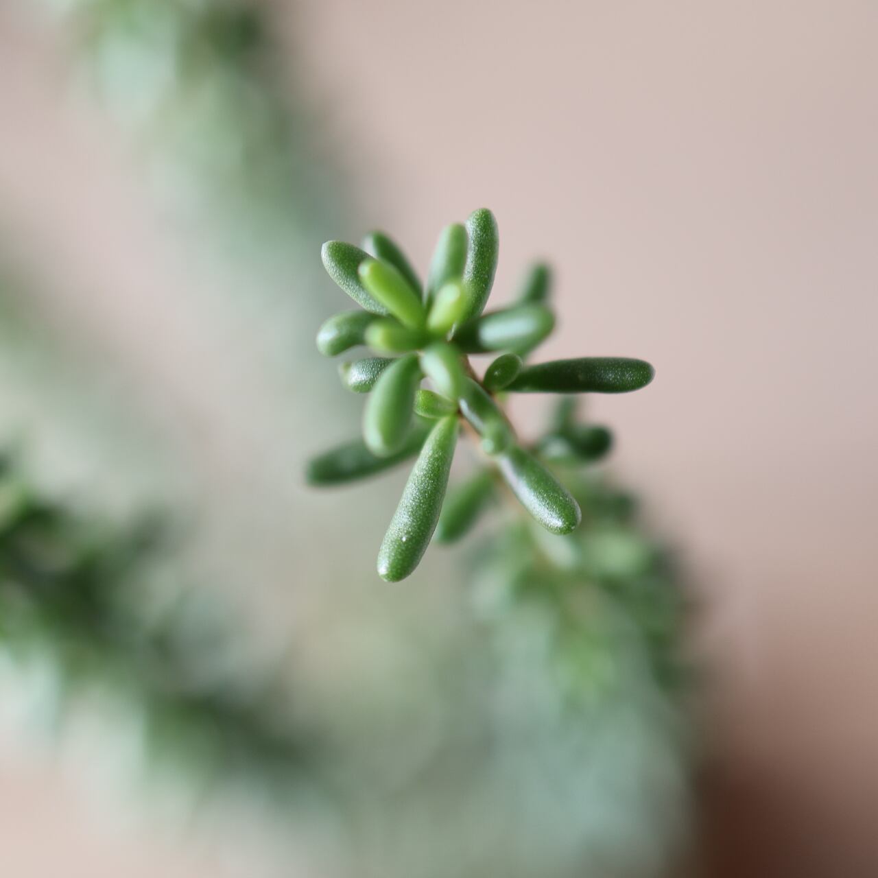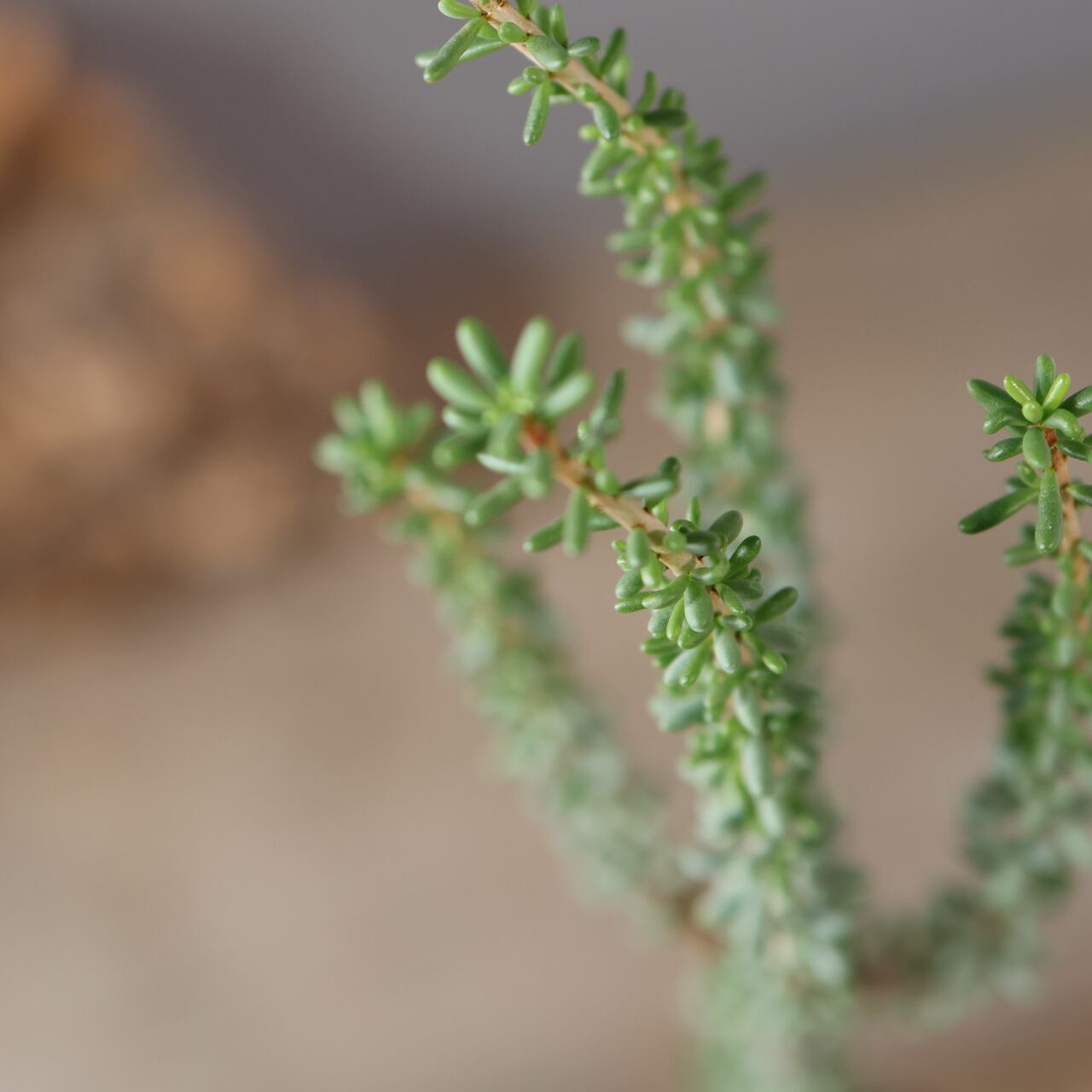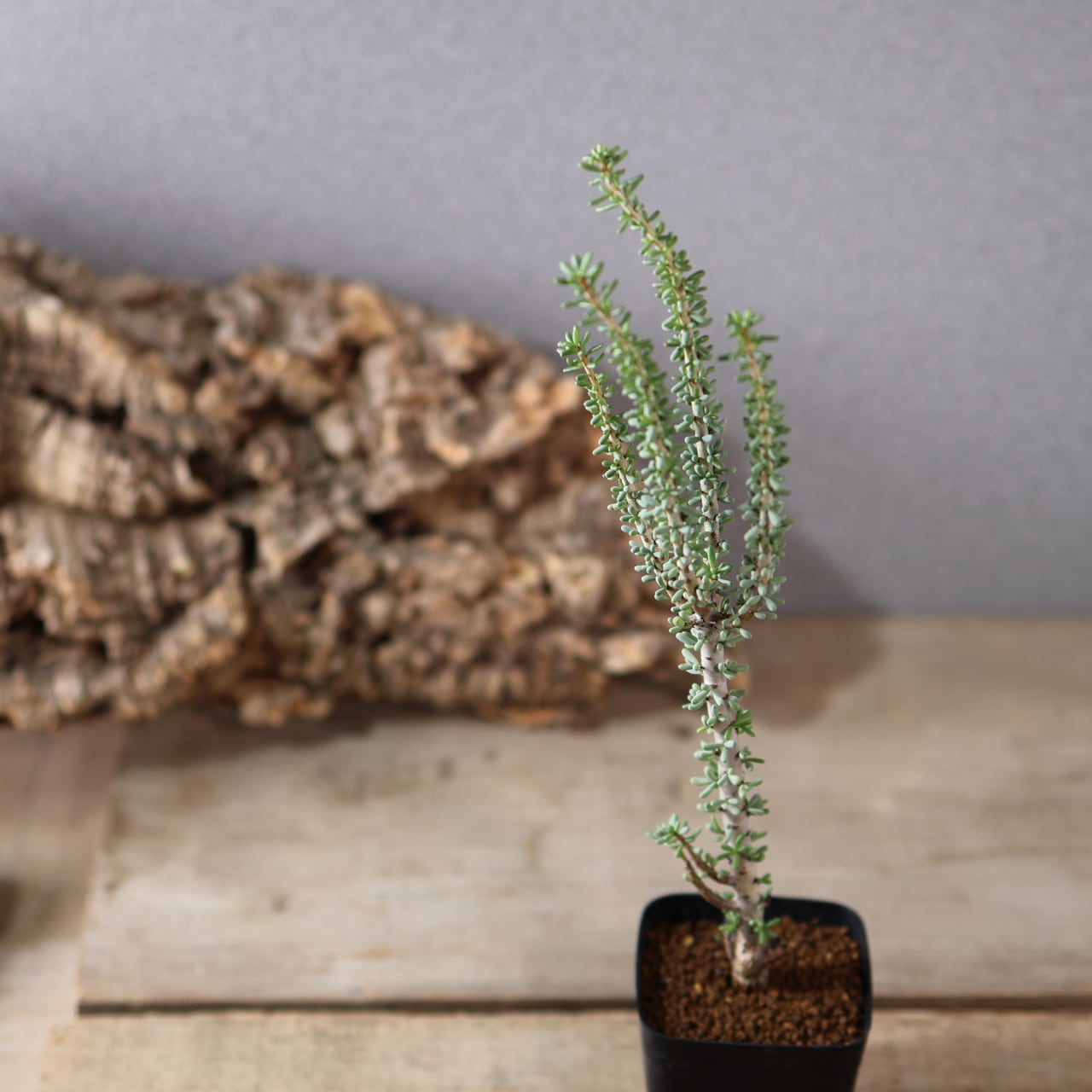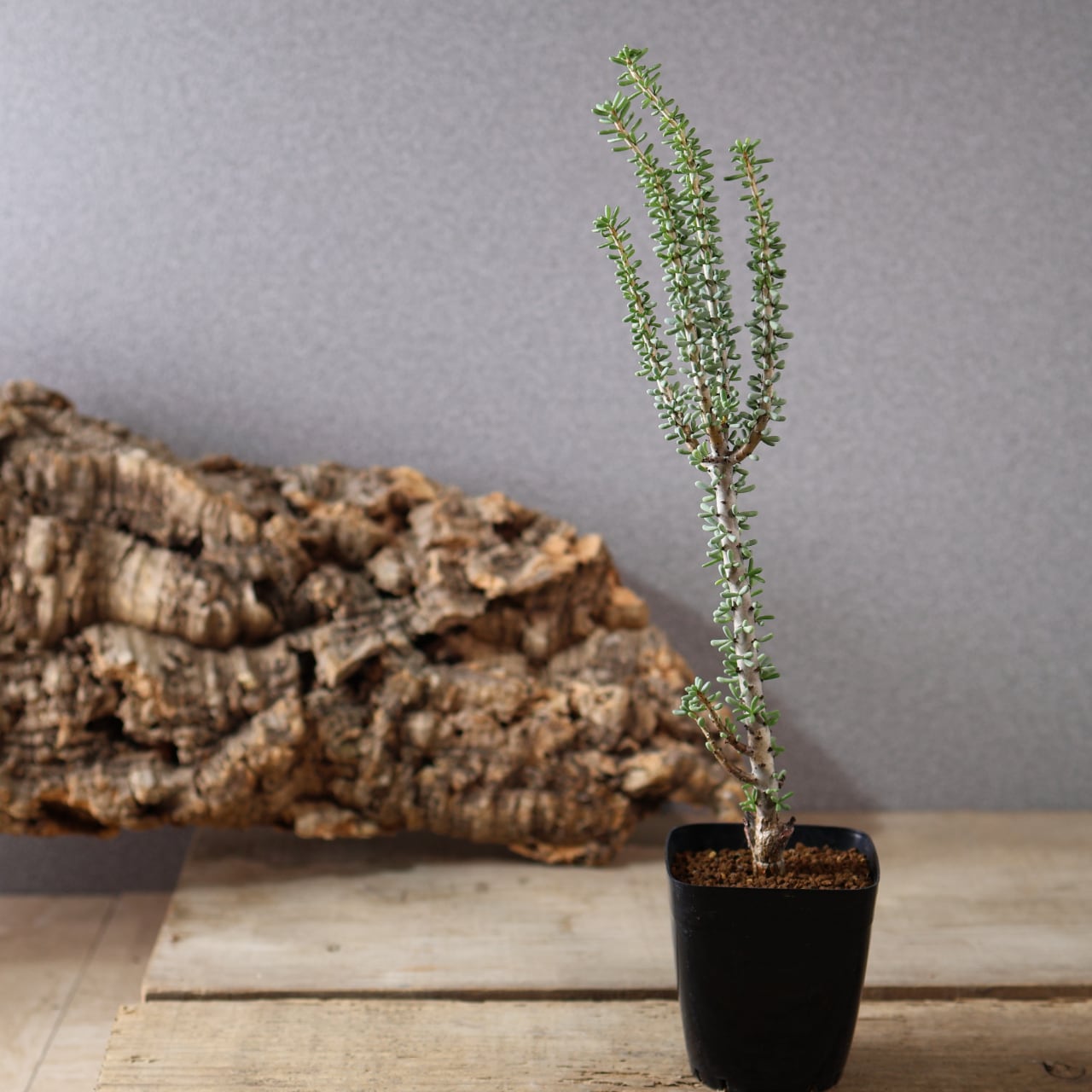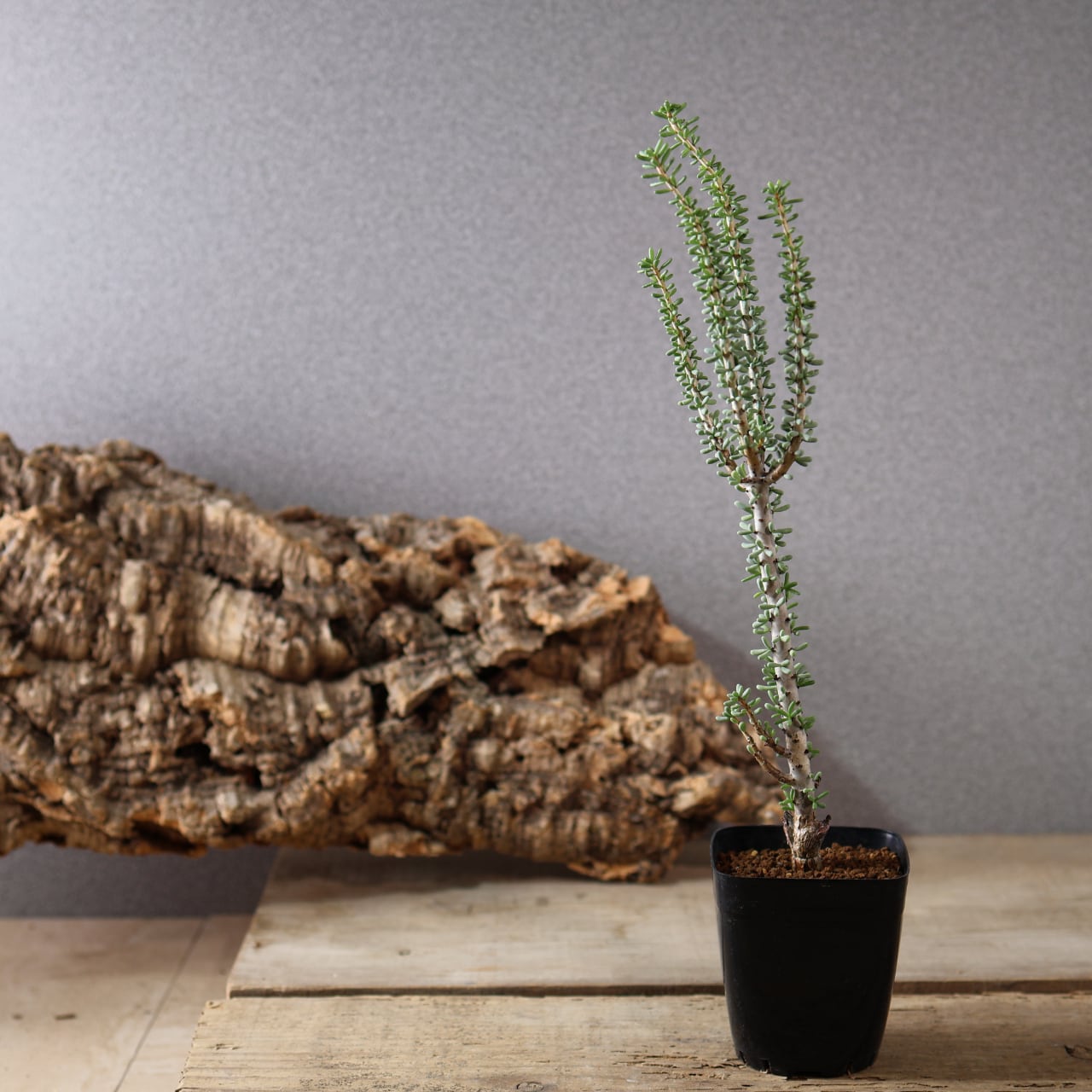 ぷっくりと膨らんだ枝と、細かい多肉質の葉が愛らしく、まるで“木質化した盆栽と多肉のあいの子”のような独特の姿が魅力です。