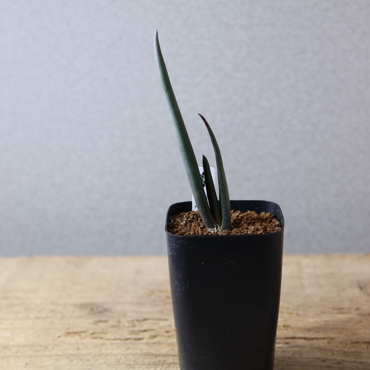 ロゼット状にゆっくり広がる葉はやわらかく波打ち、白い粉をまとったような上品なマット質感が特徴です。ほのかに青みを帯びたシルバーグリーンの色味は、同じアロエの中でもひときわ静かな存在感を放ち、飾るだけで洗練された印象の空間に変えてくれます。