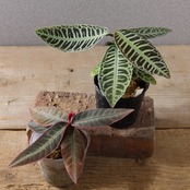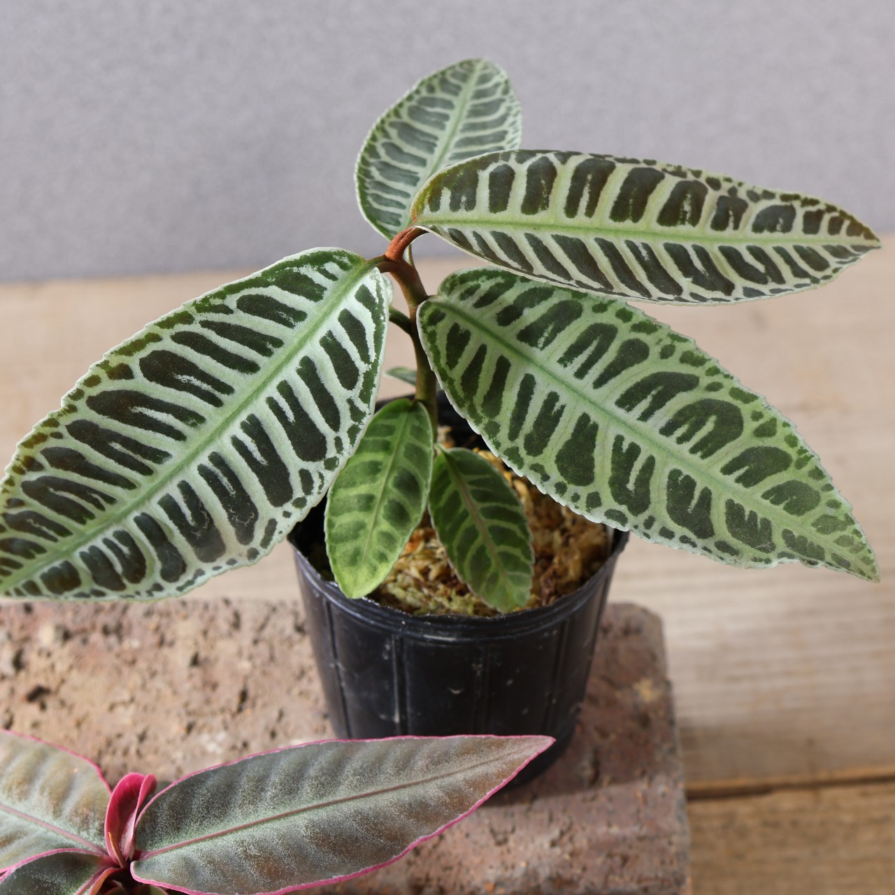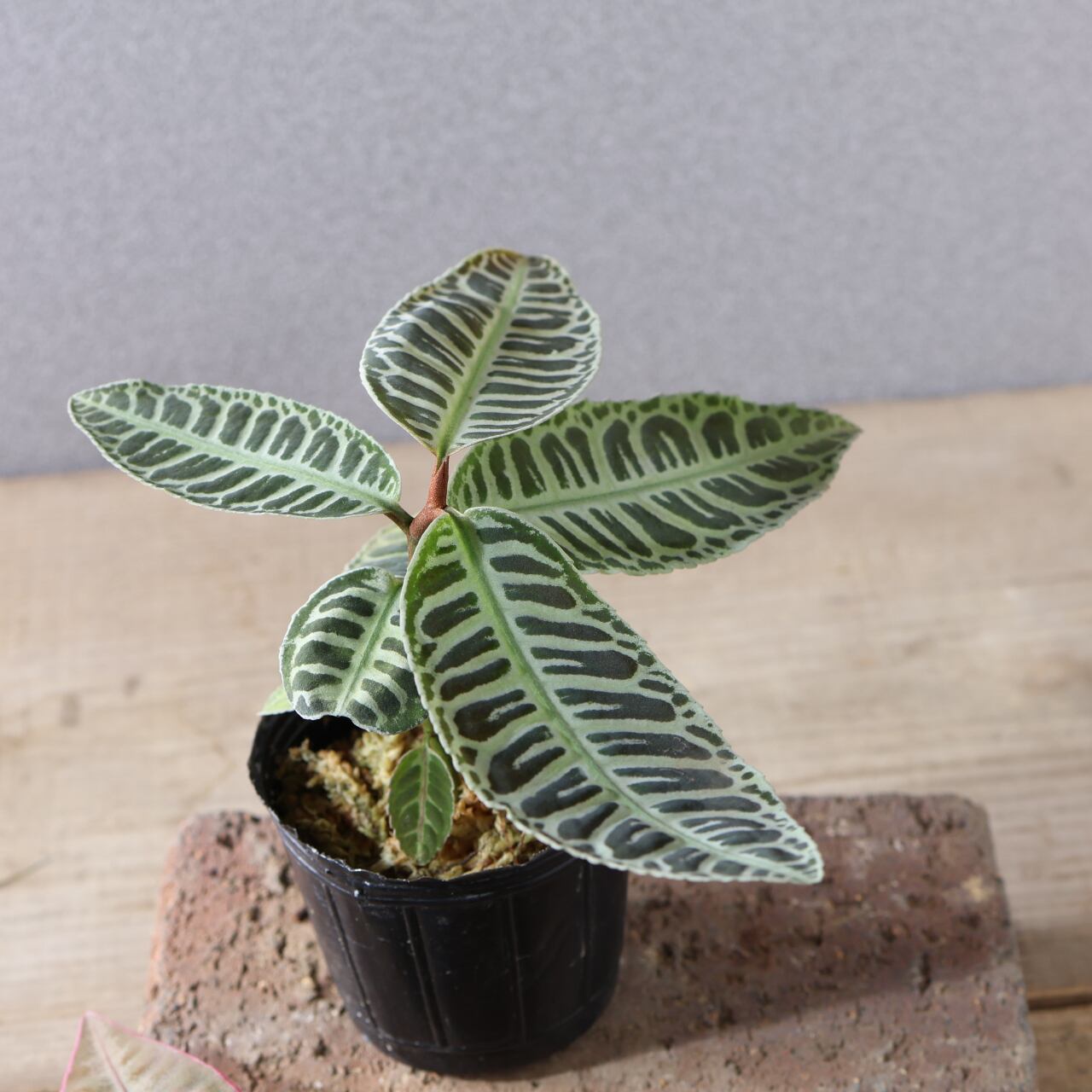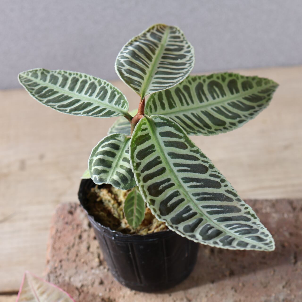 シルバーグリーンの地に濃緑の縞が入るグラフィカルな葉姿。