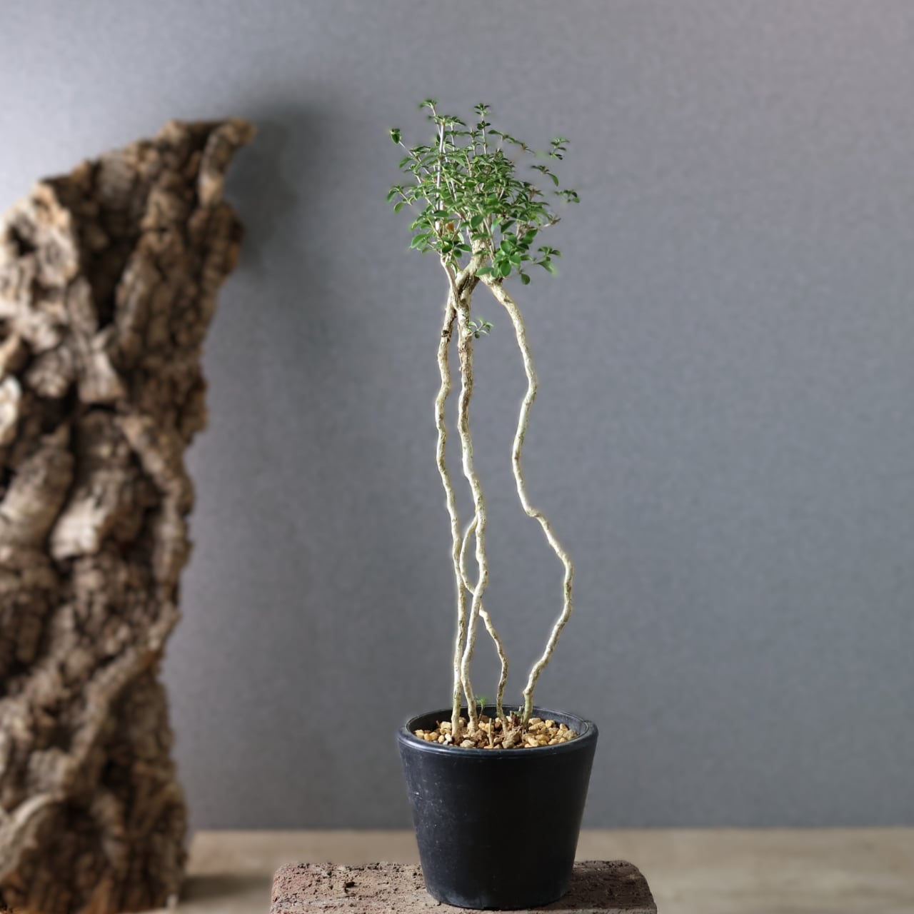 香丁木は、細くうねる幹と軽やかな葉姿が魅力の低木で、盆栽・塊根風・ミニツリー仕立てなど幅広く楽しめる樹種です。