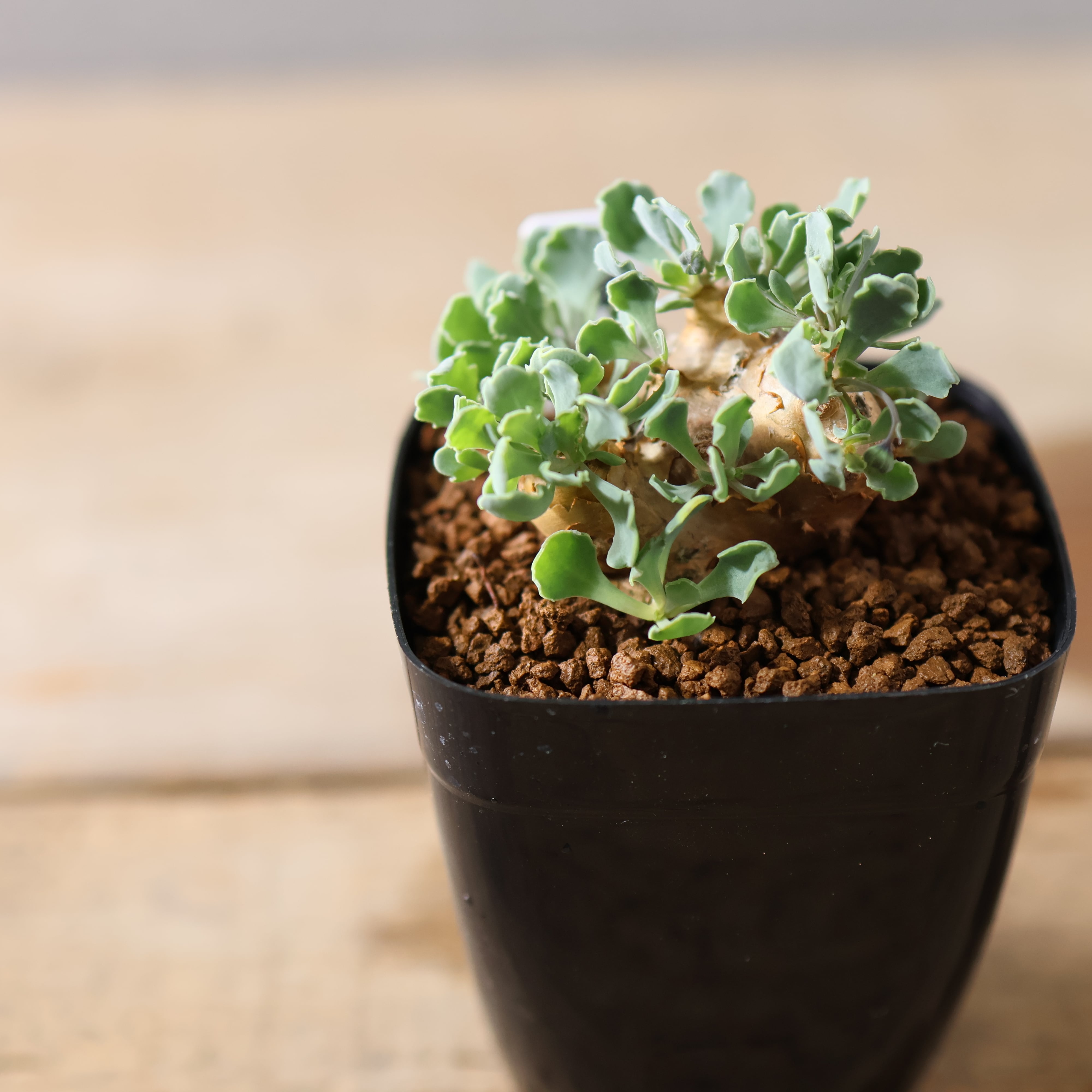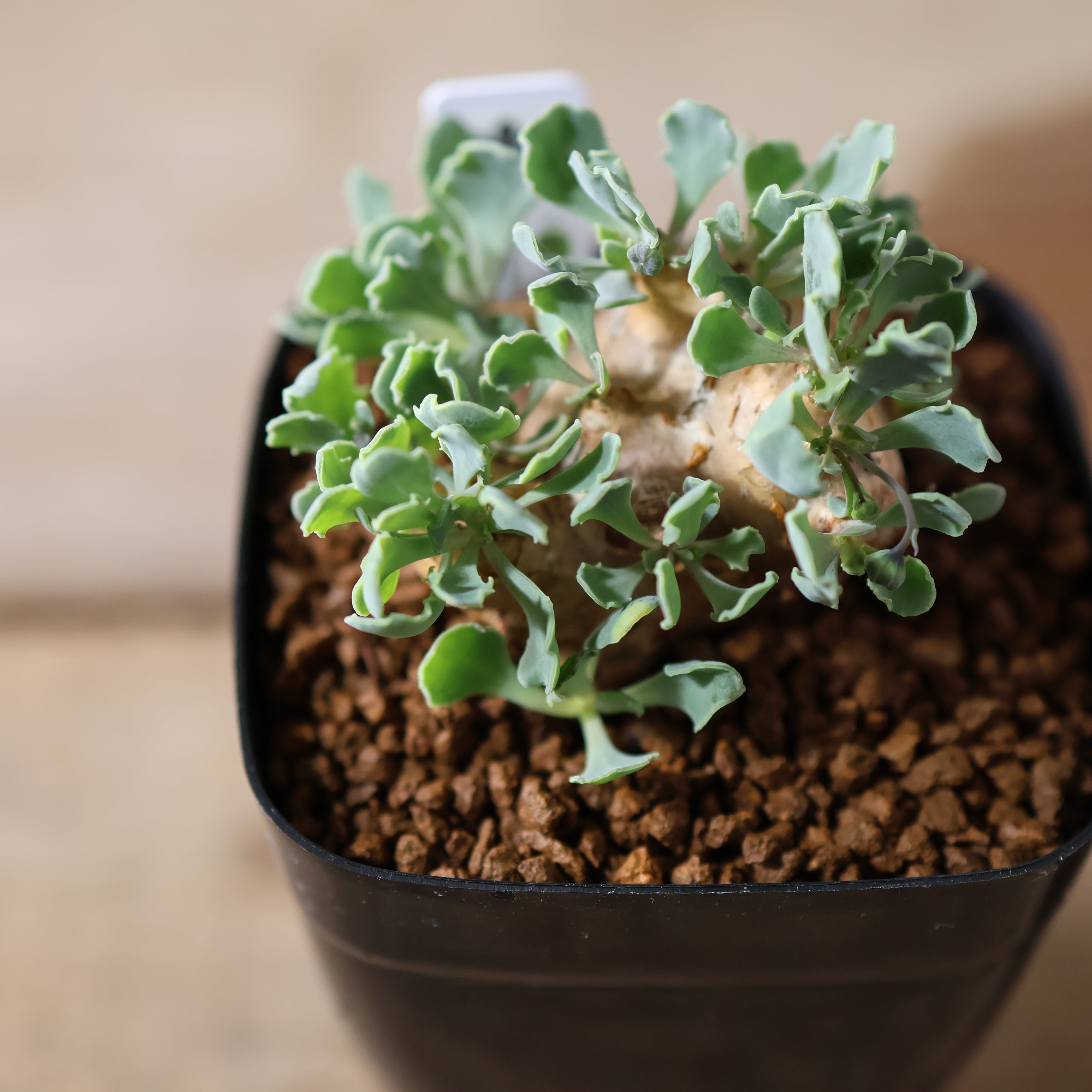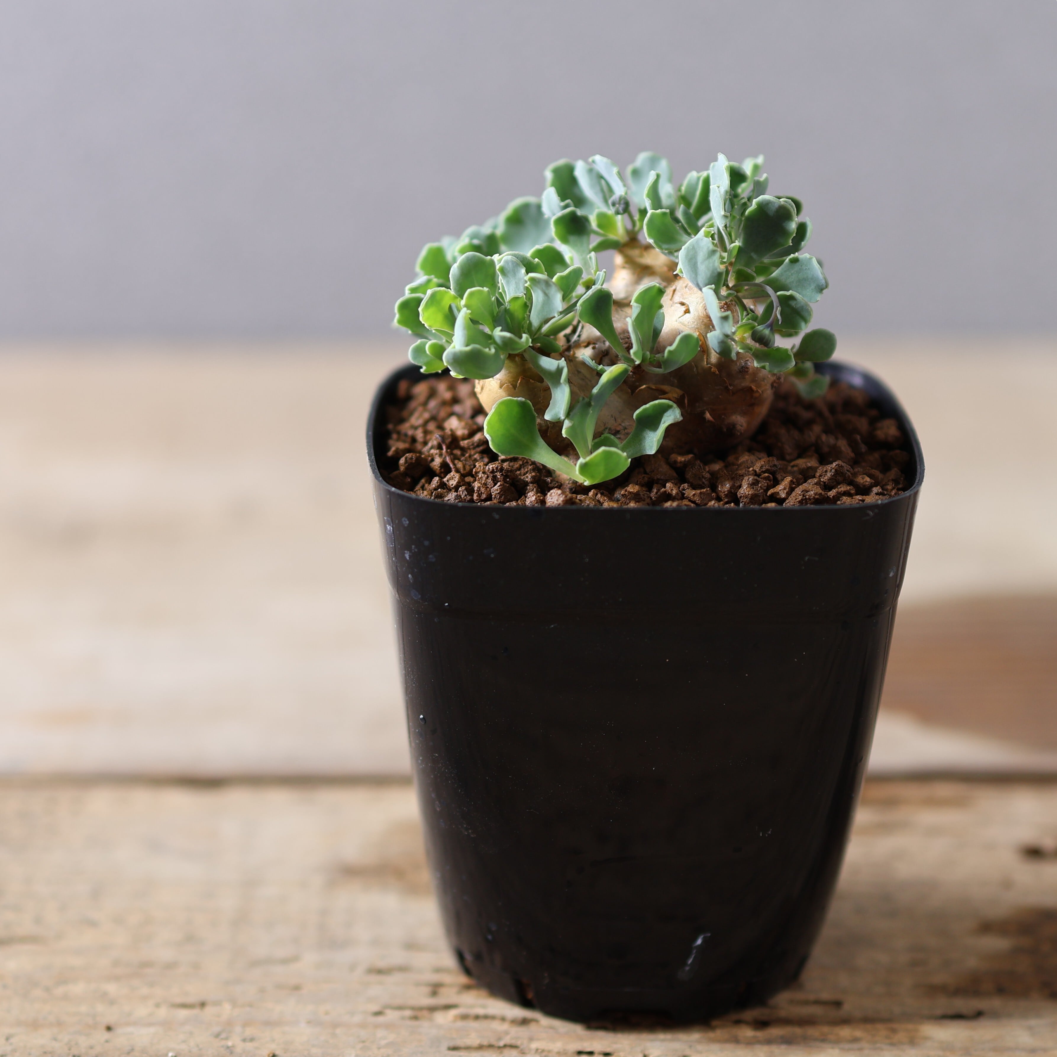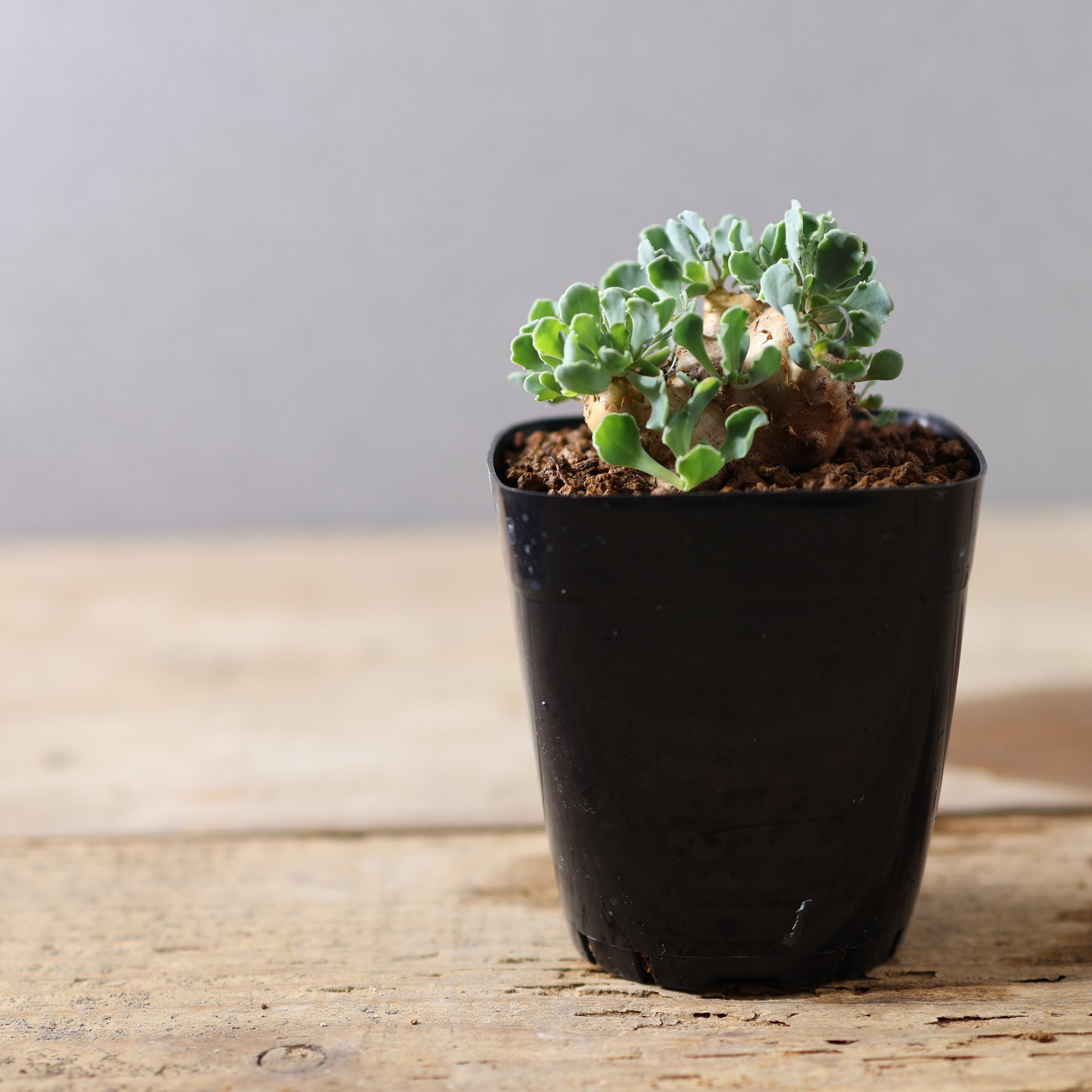 小型の品種で、最大でも7~8cm程度にしかなりません。塊根はショウガのような形をしており、成長するにつれて分岐していきます。成長速度も非常に遅いので、じっくりその姿を眺めて楽しんで育ててみてください。成長するとツルを伸ばしとても可愛らしい黄色いお花も咲かせてくれます。