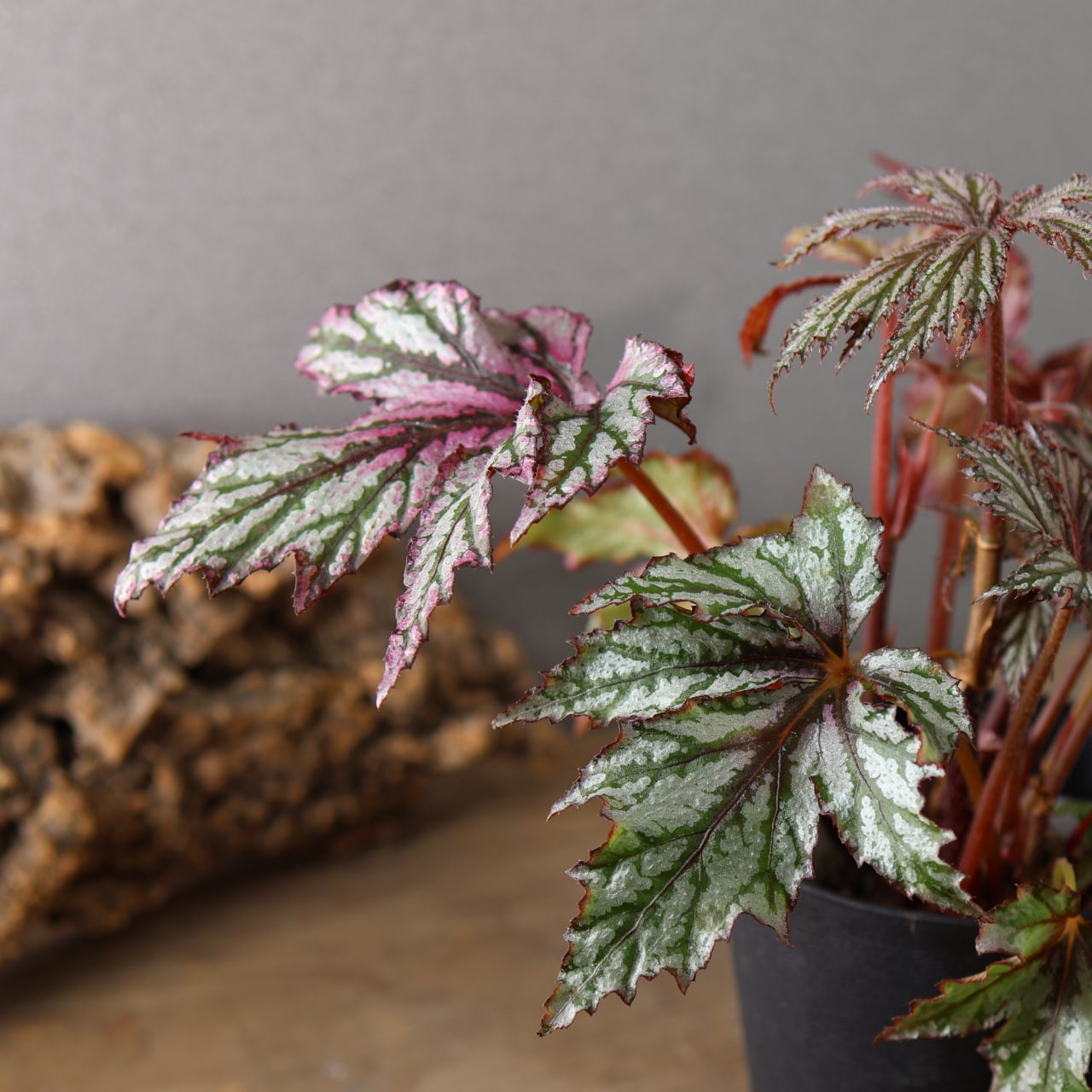 葉縁の強い切れ込みと立体感のある葉面により、1株でも非常に存在感があり、コレクション性の高いレックスベゴニアです。