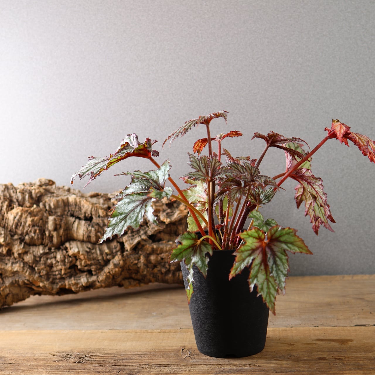和のニュアンスと妖艶さを併せ持つ葉姿は、室内のアクセントグリーンとして特におすすめ。シンプルな鉢合わせでも映え、レックスベゴニアの個性を楽しみたい方や、少しクセのある品種を探している方に向いています