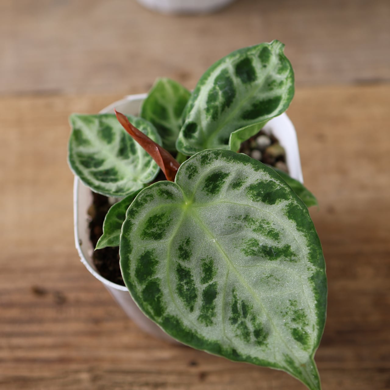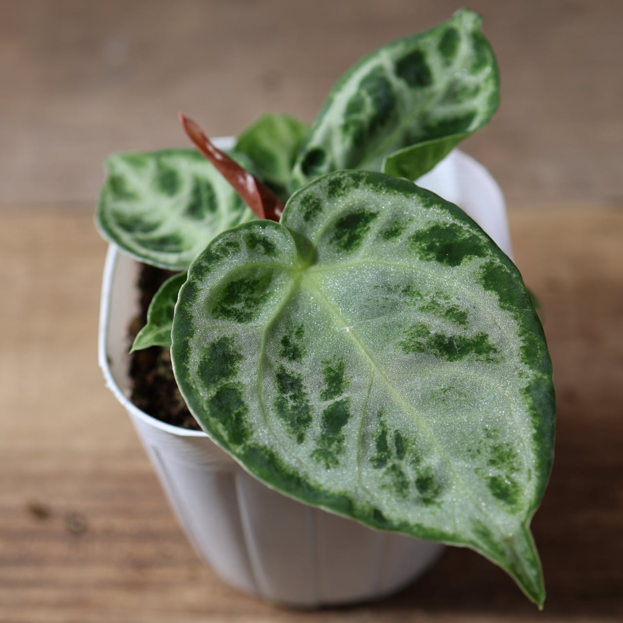 個性的でありながら主張しすぎない姿は、観葉植物初心者からコレクターまで幅広くおすすめ。丸葉系アンスリウムが好きな方や、かわいさと上品さを両立した植物を探している方にぴったりです。