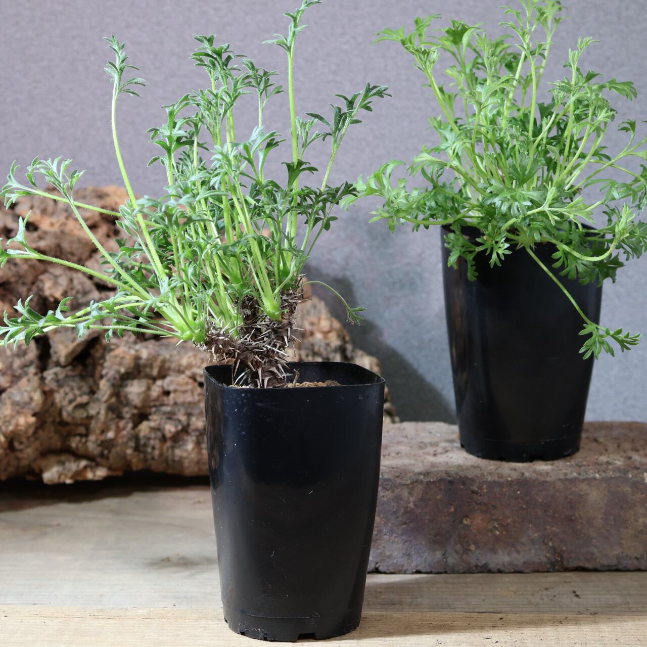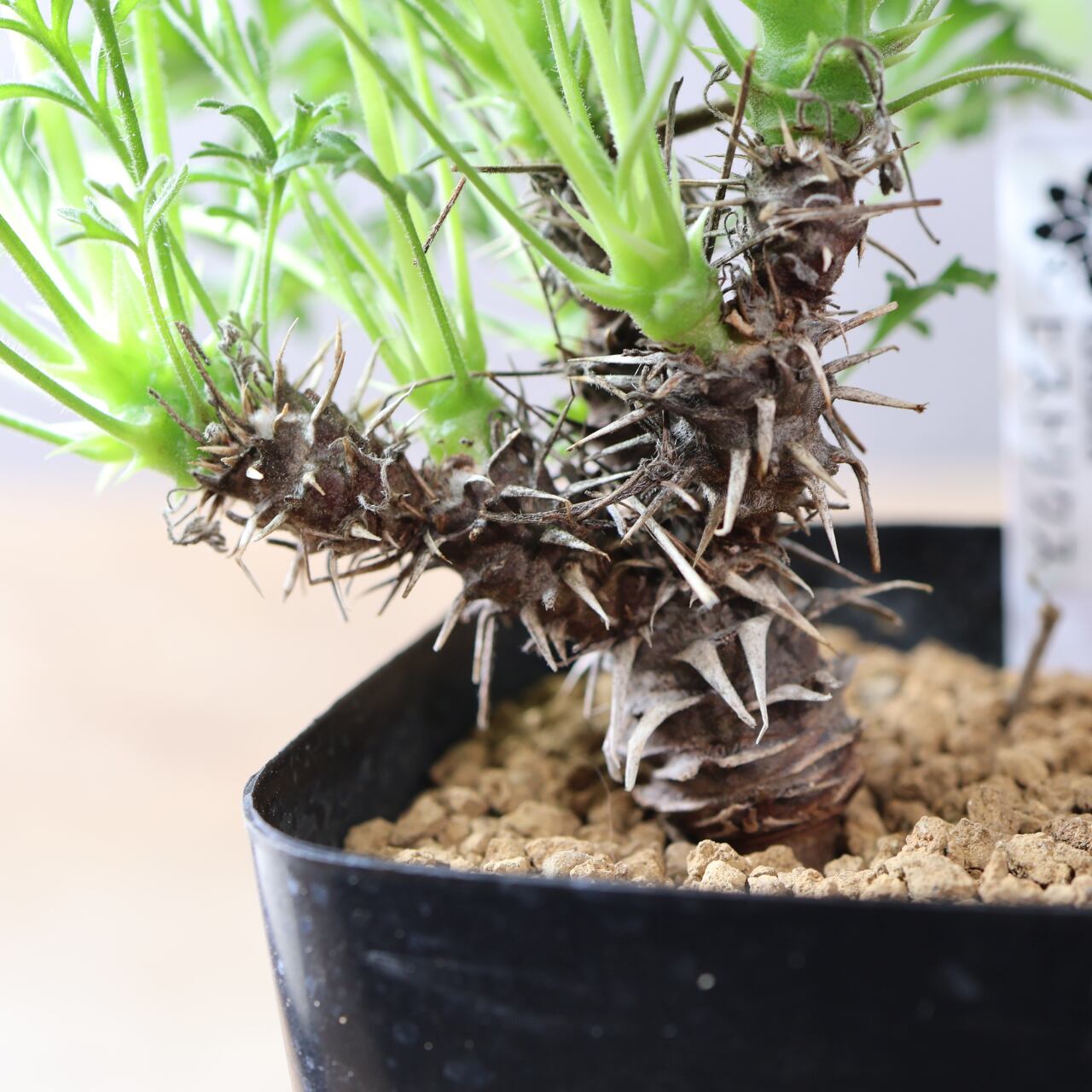 ペラルゴニウムヒストリクスはごつごつした幹肌と、細かい毛が生えたかわいい葉が特徴的な冬型コーデックスです。