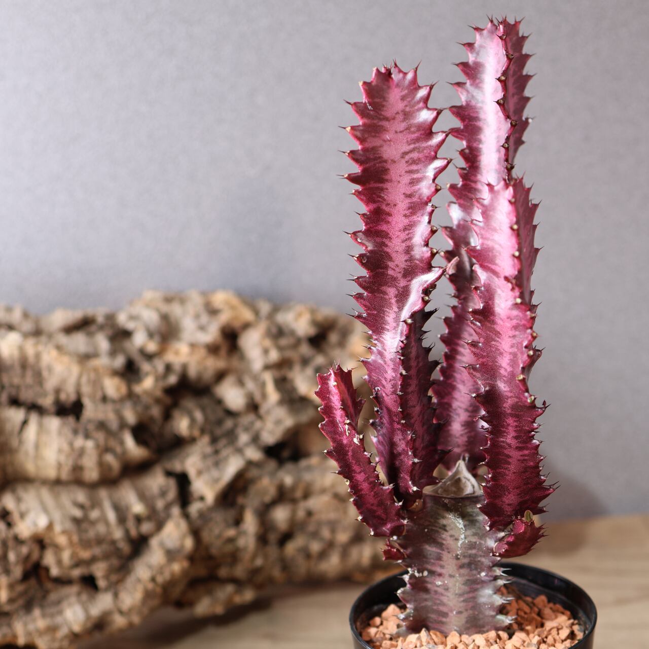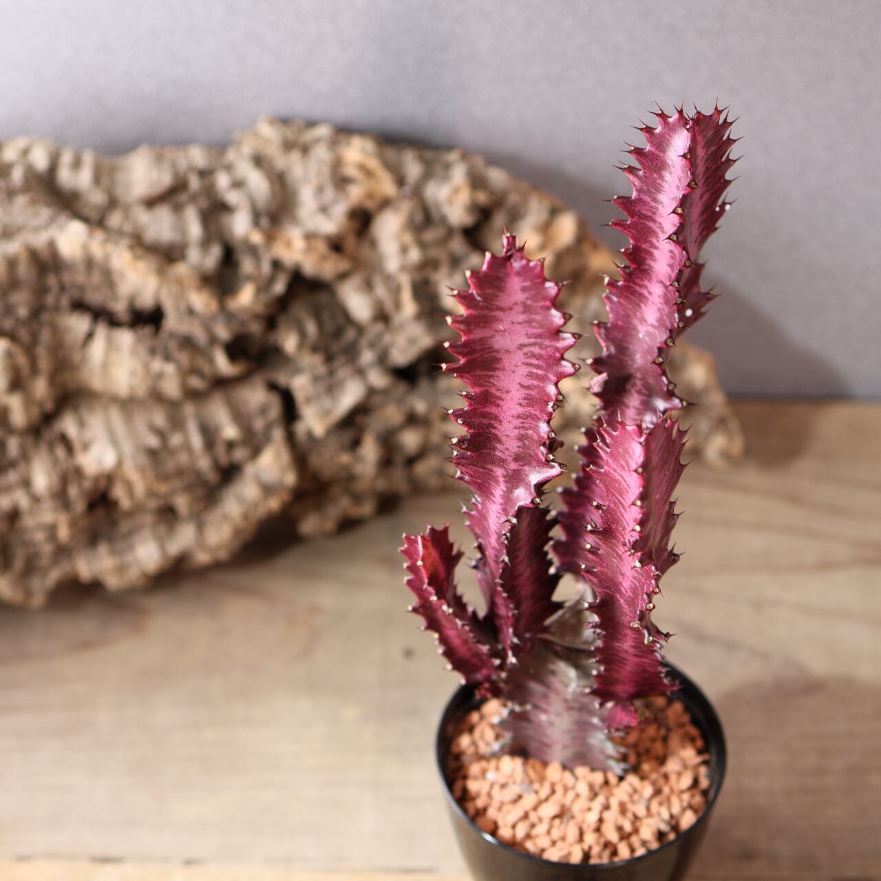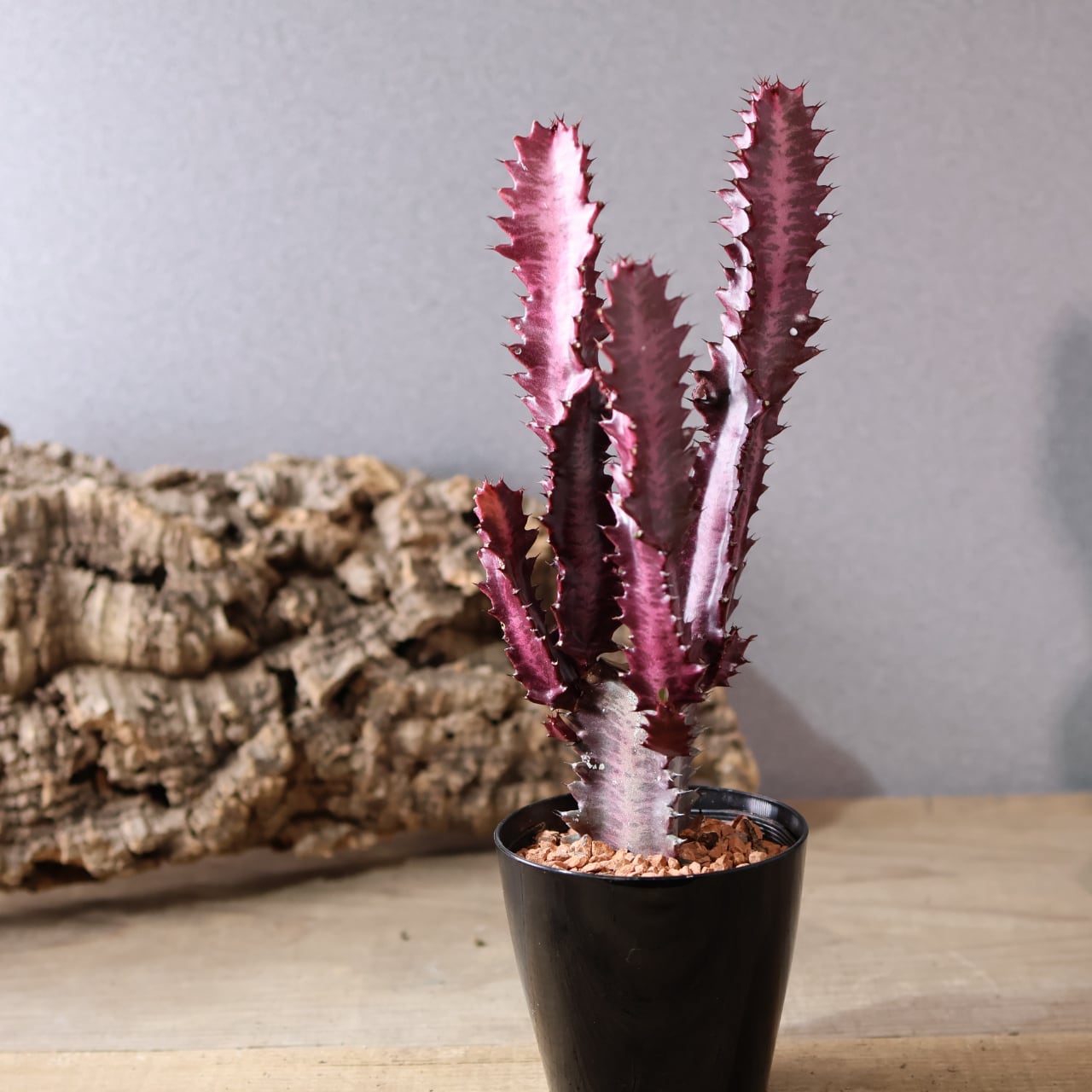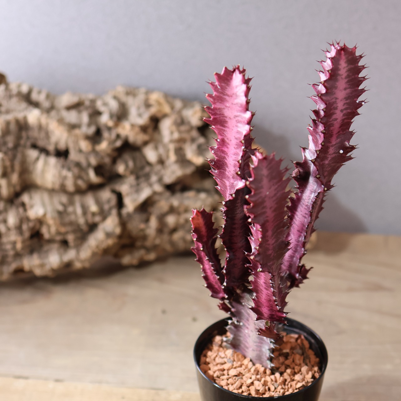 細く立ち上がる枝は光を受けるほど赤味を増し、まるで夕焼け雲のような幻想的な姿を見せてくれます。シンプルながら存在感があり、インテリアグリーンとしても映える一本。丈夫で育てやすく、ユーフォルビア入門にもおすすめです。