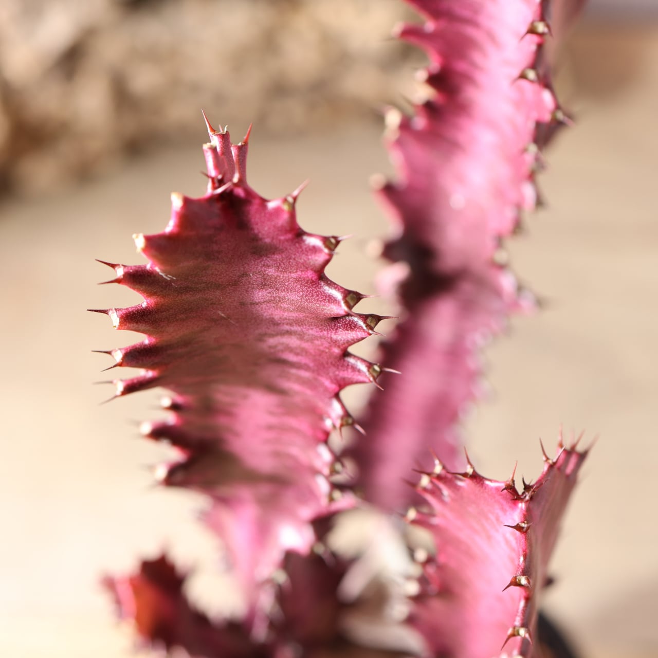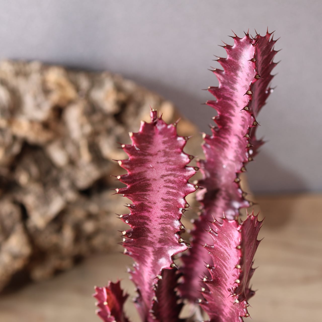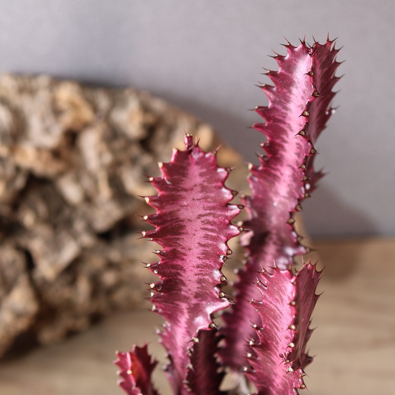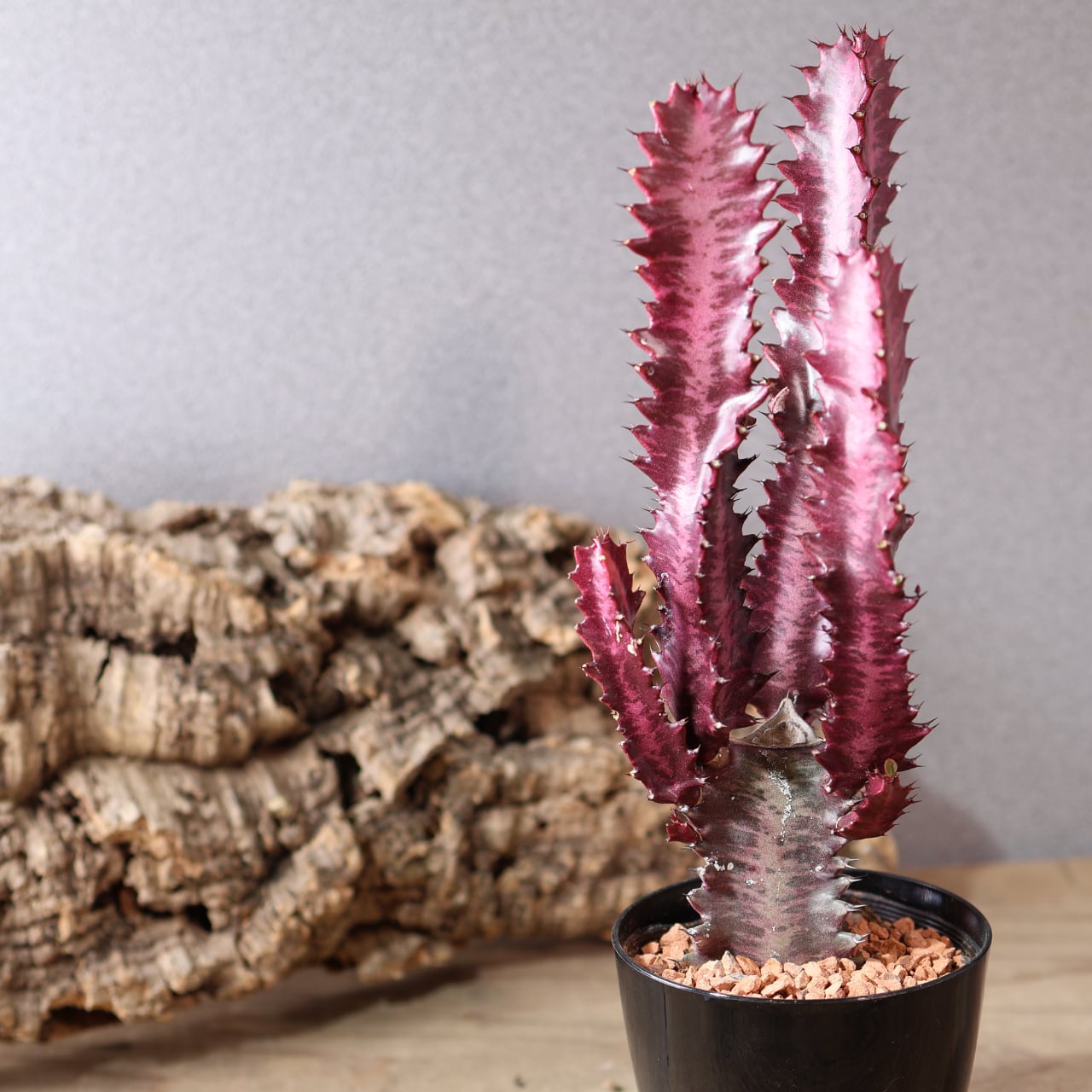細く立ち上がる枝は光を受けるほど赤味を増し、まるで夕焼け雲のような幻想的な姿を見せてくれます。シンプルながら存在感があり、インテリアグリーンとしても映える一本。丈夫で育てやすく、ユーフォルビア入門にもおすすめです。