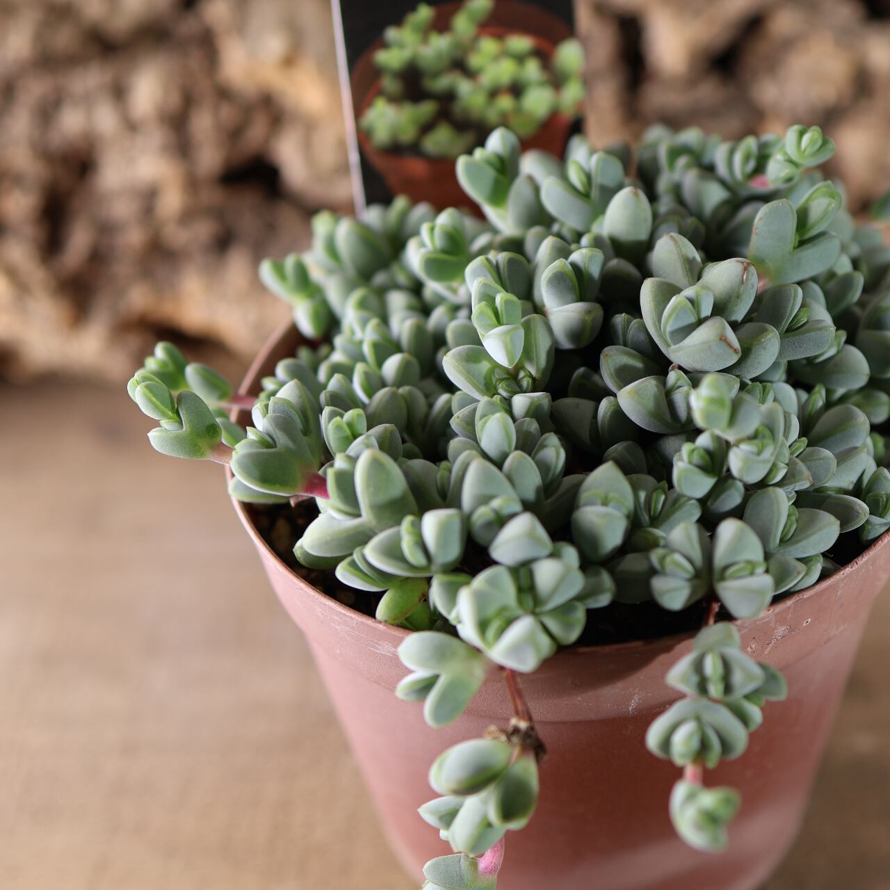 生長すると自然に垂れ下がり、鉢からこぼれる姿も美しく、ハンギングや棚上ディスプレイにもよく映えます