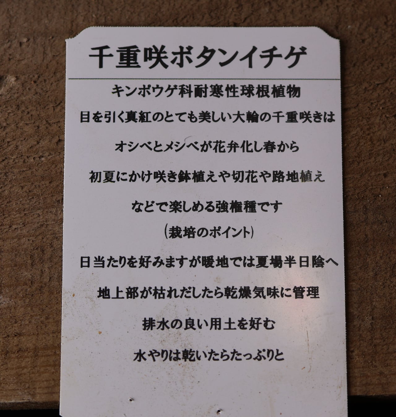 オシベとメシベが花弁化し、春から初夏にかけ咲き、鉢植えや切花や路地植えなどで楽しめます。