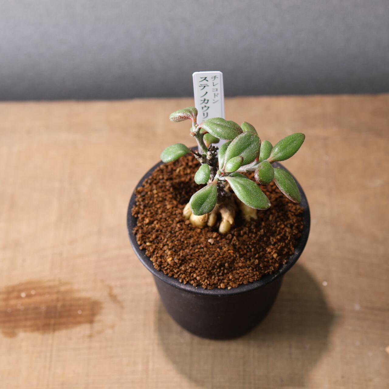 チレコドン・ステノカウリスは、南アフリカ原産の冬型多肉植物で、*細く伸びる枝(=steno=細い、caulis=茎)*が特徴的な種。