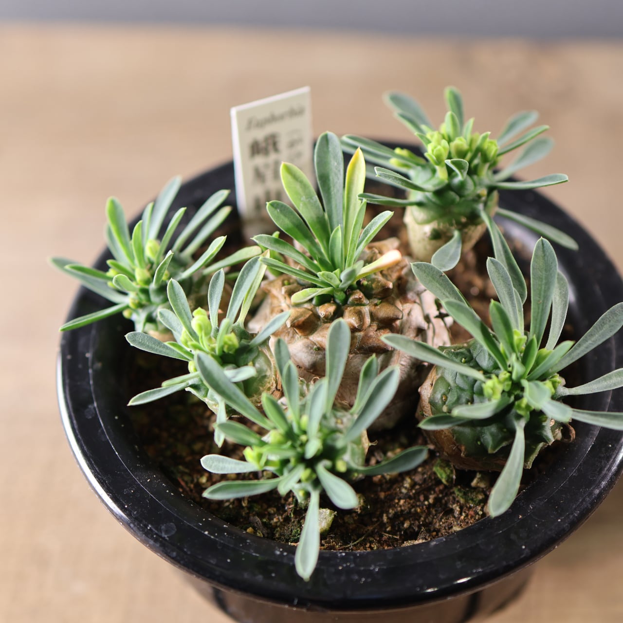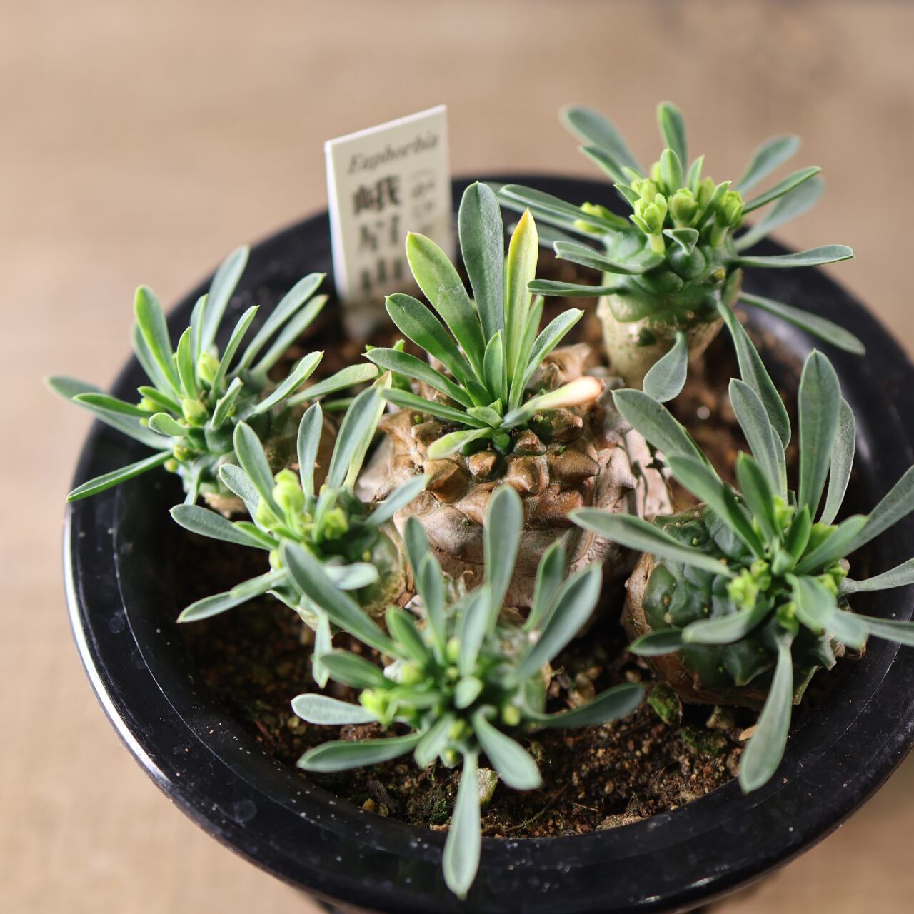 峨眉山は、ゴツゴツとした岩肌のような幹肌と、こんもり盛り上がる独特の株姿が魅力のユーフォルビア。