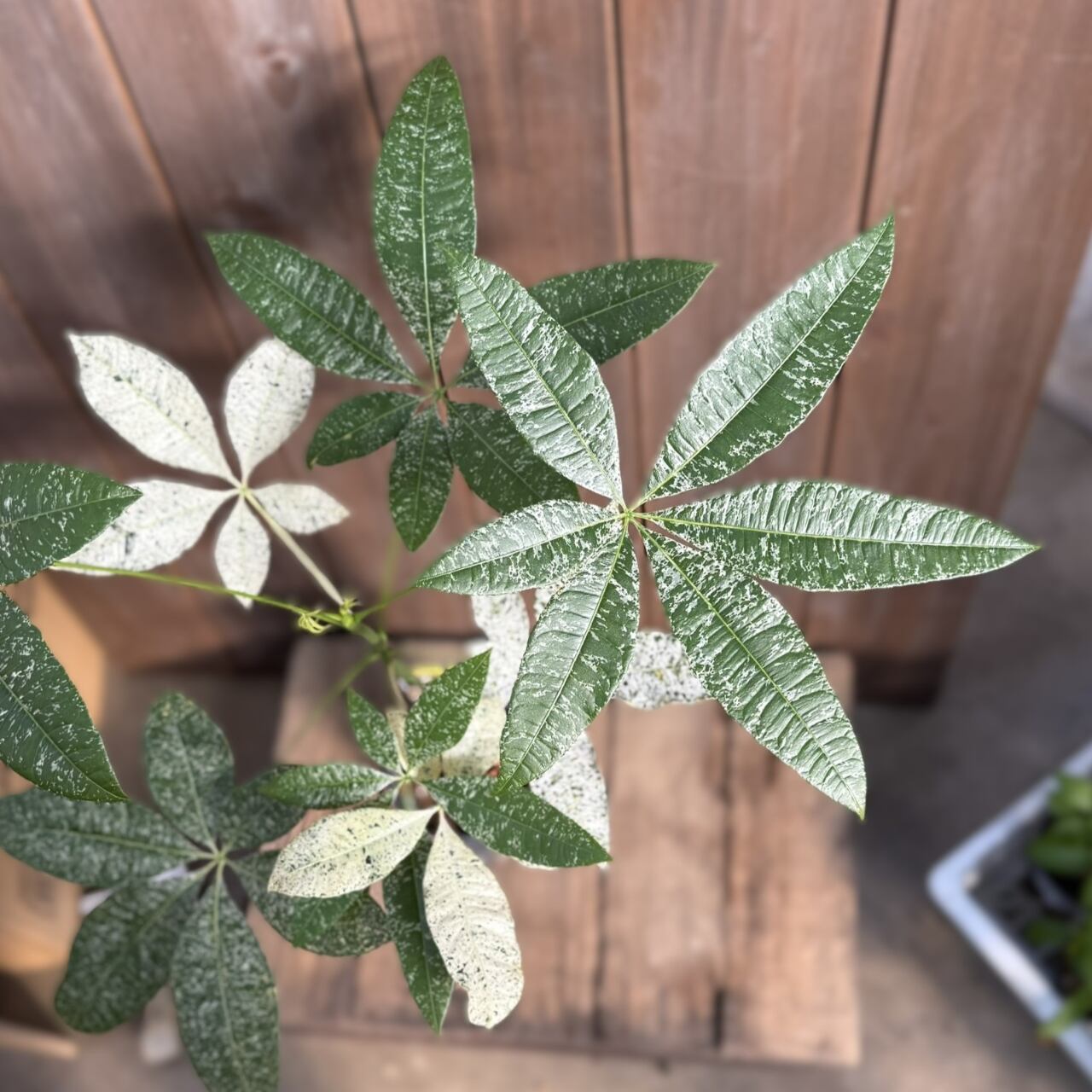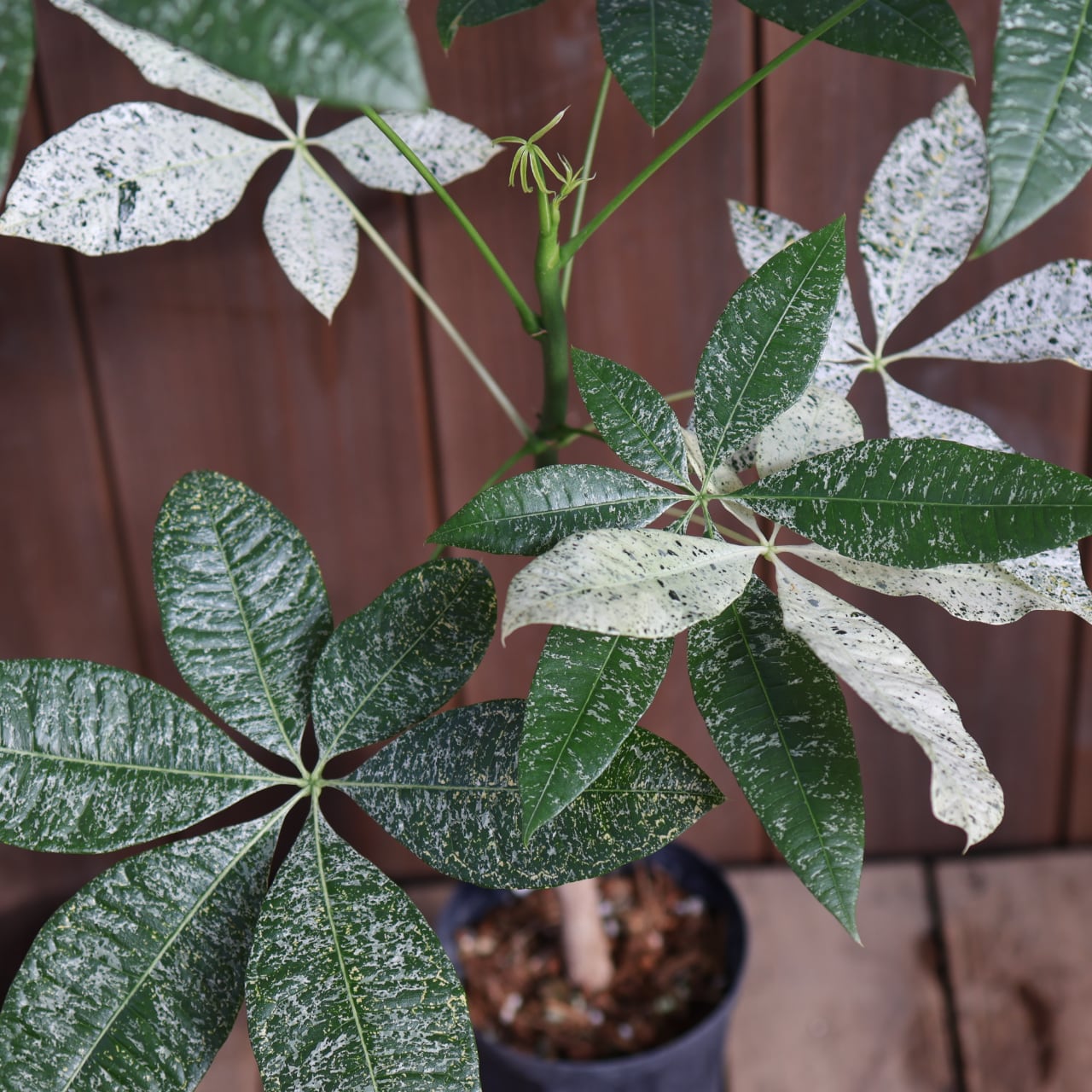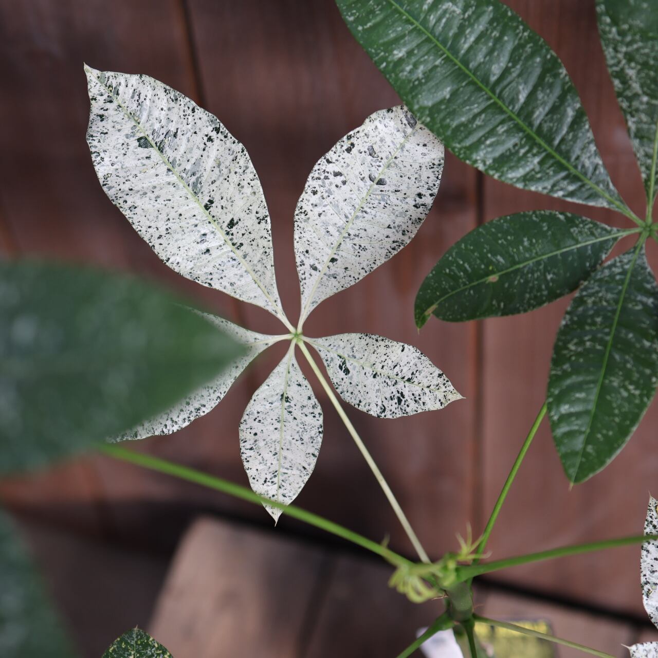 実生から生まれた、個体差のある一点ものの斑入りパキラ。