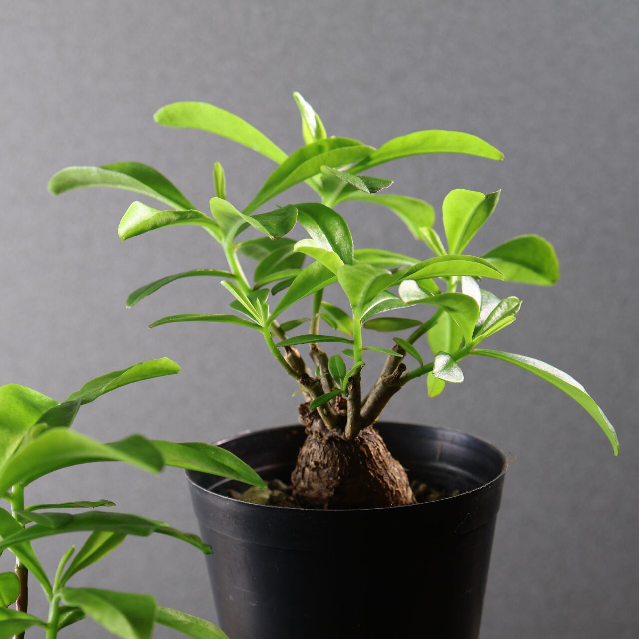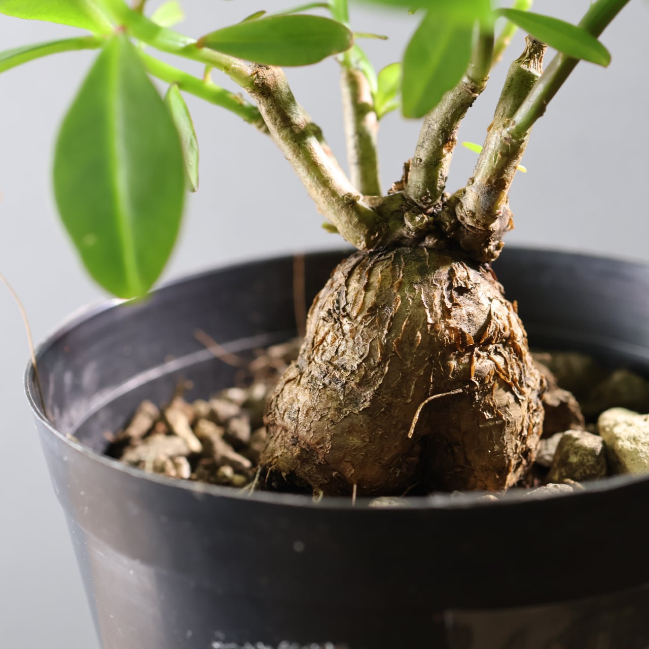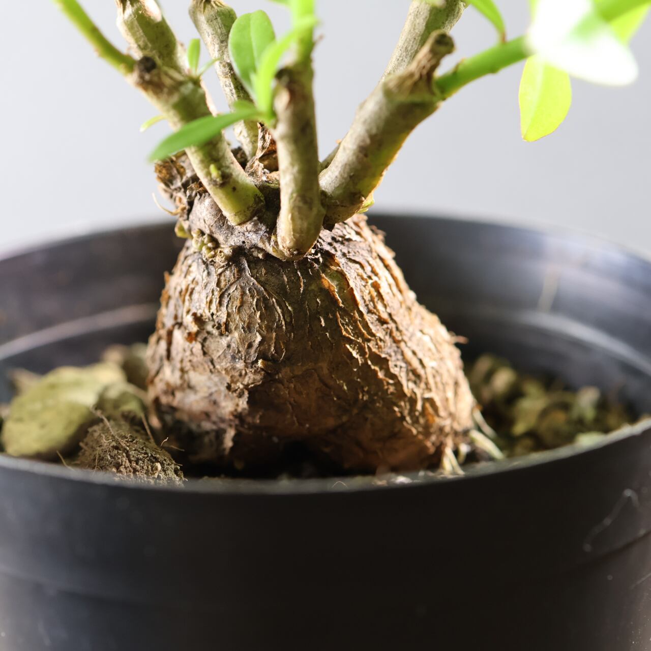 丸く締まった基部が美しい、塊根仕立てのスリナムパースレーン。