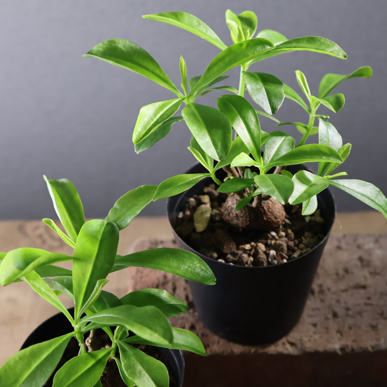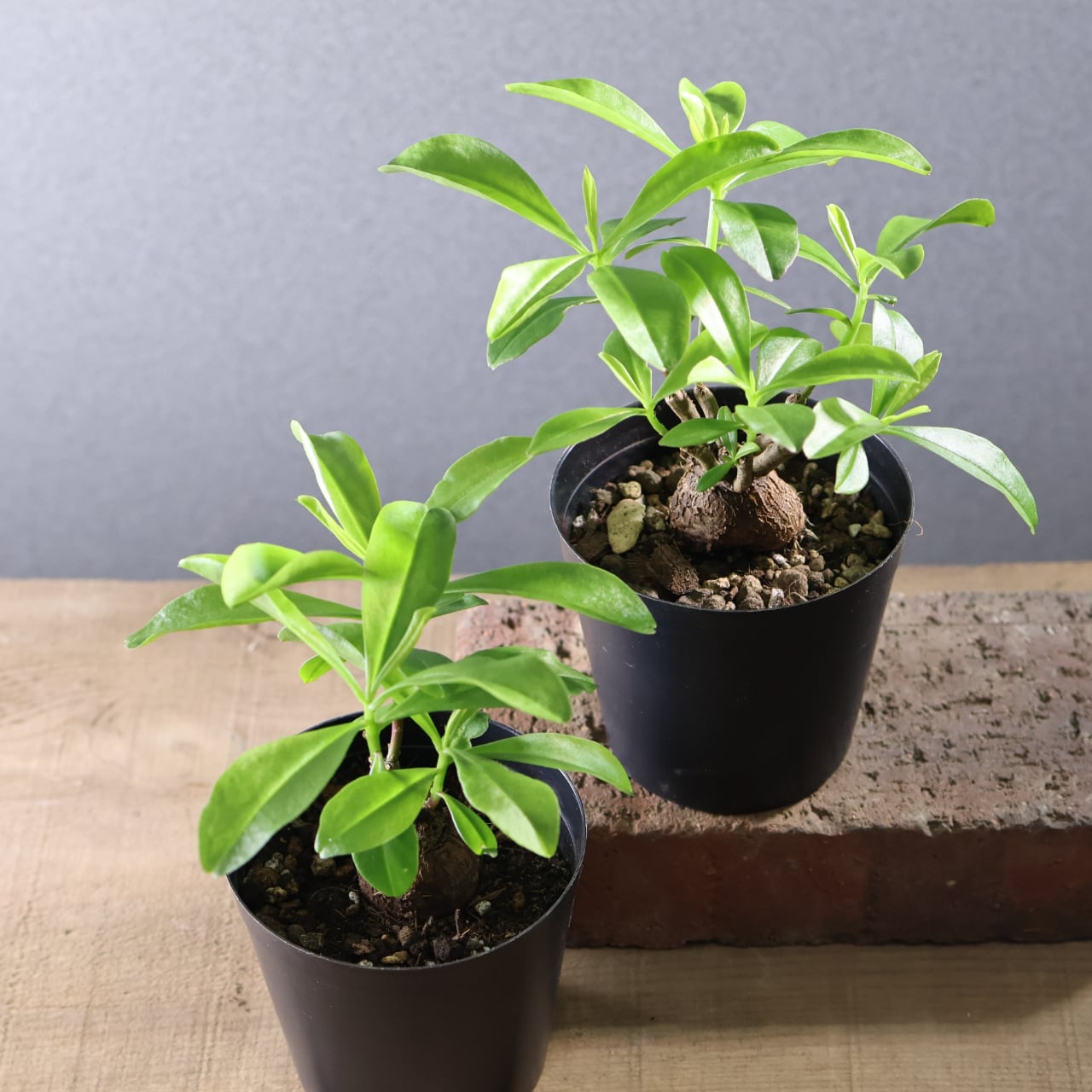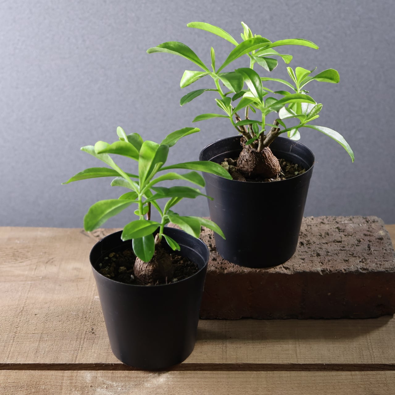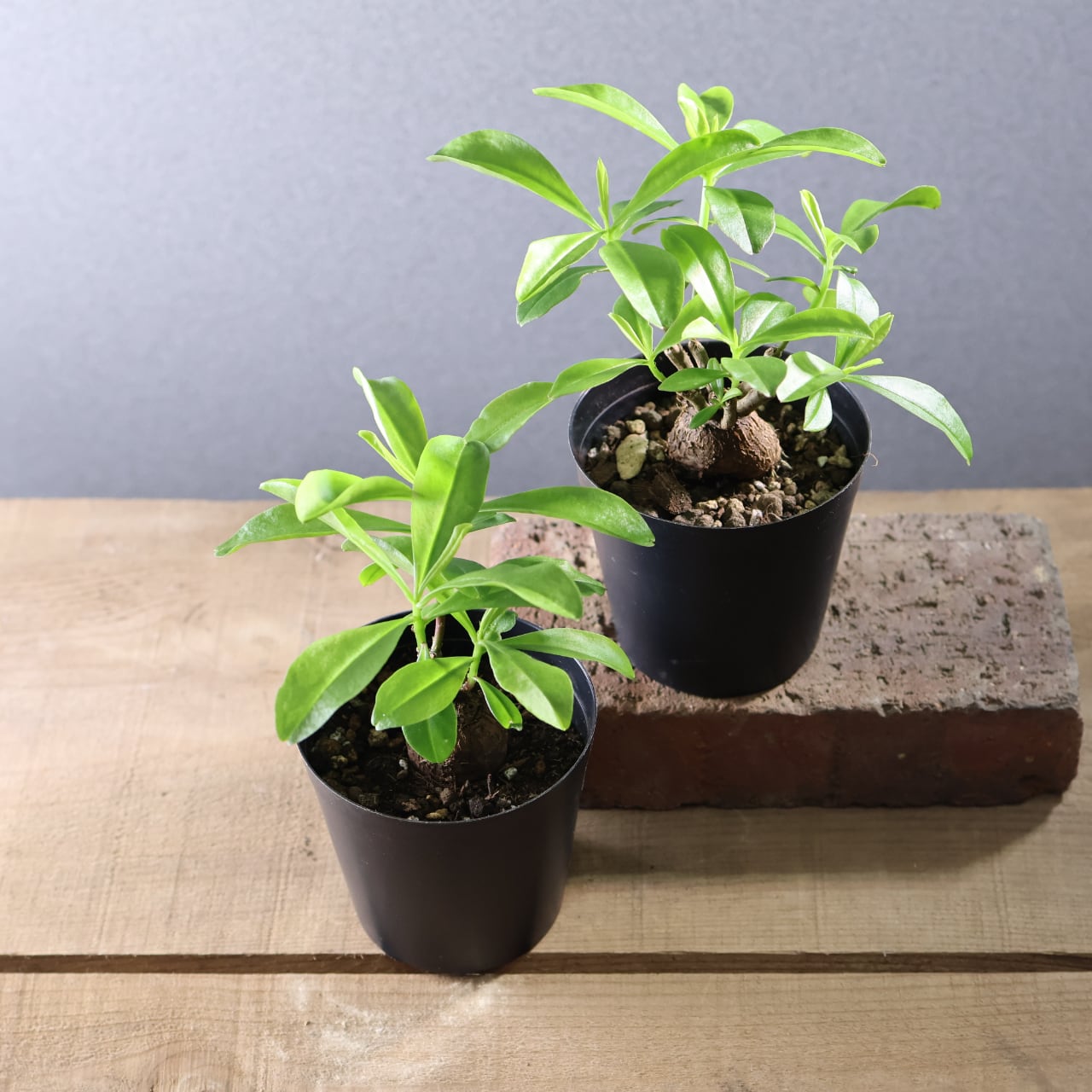 丸く締まった基部が美しい、塊根仕立てのスリナムパースレーン。