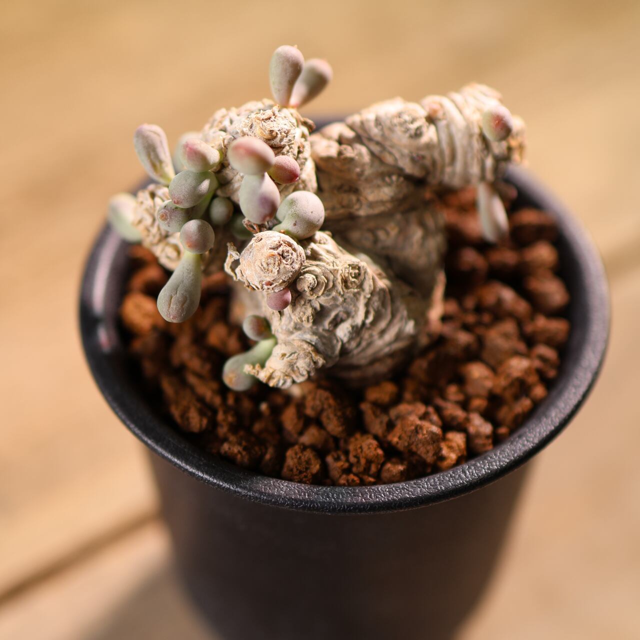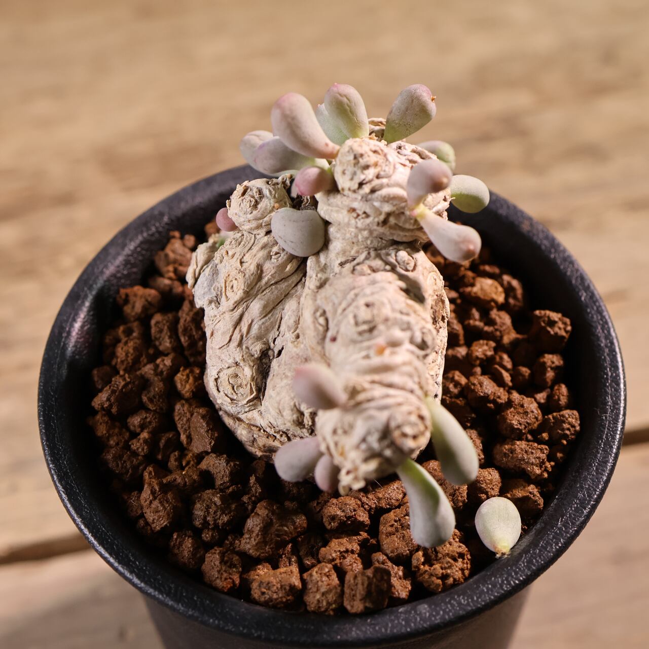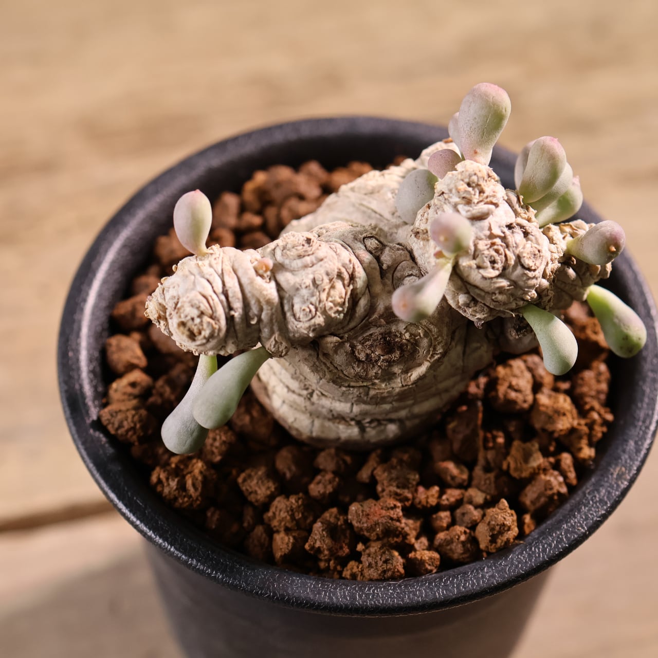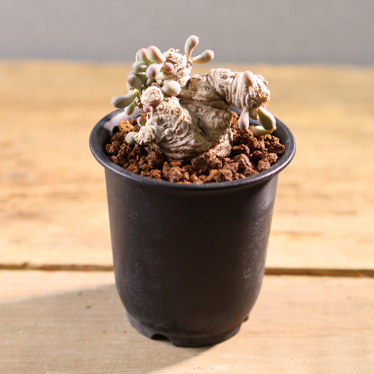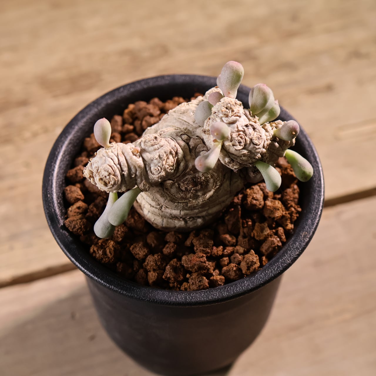 ぷりぷりとした葉をもつ太い塊茎から短い枝を伸ばす小型のコーデックスプランツで、大きく育っても直径20cmほどにしか育たない小型種です。