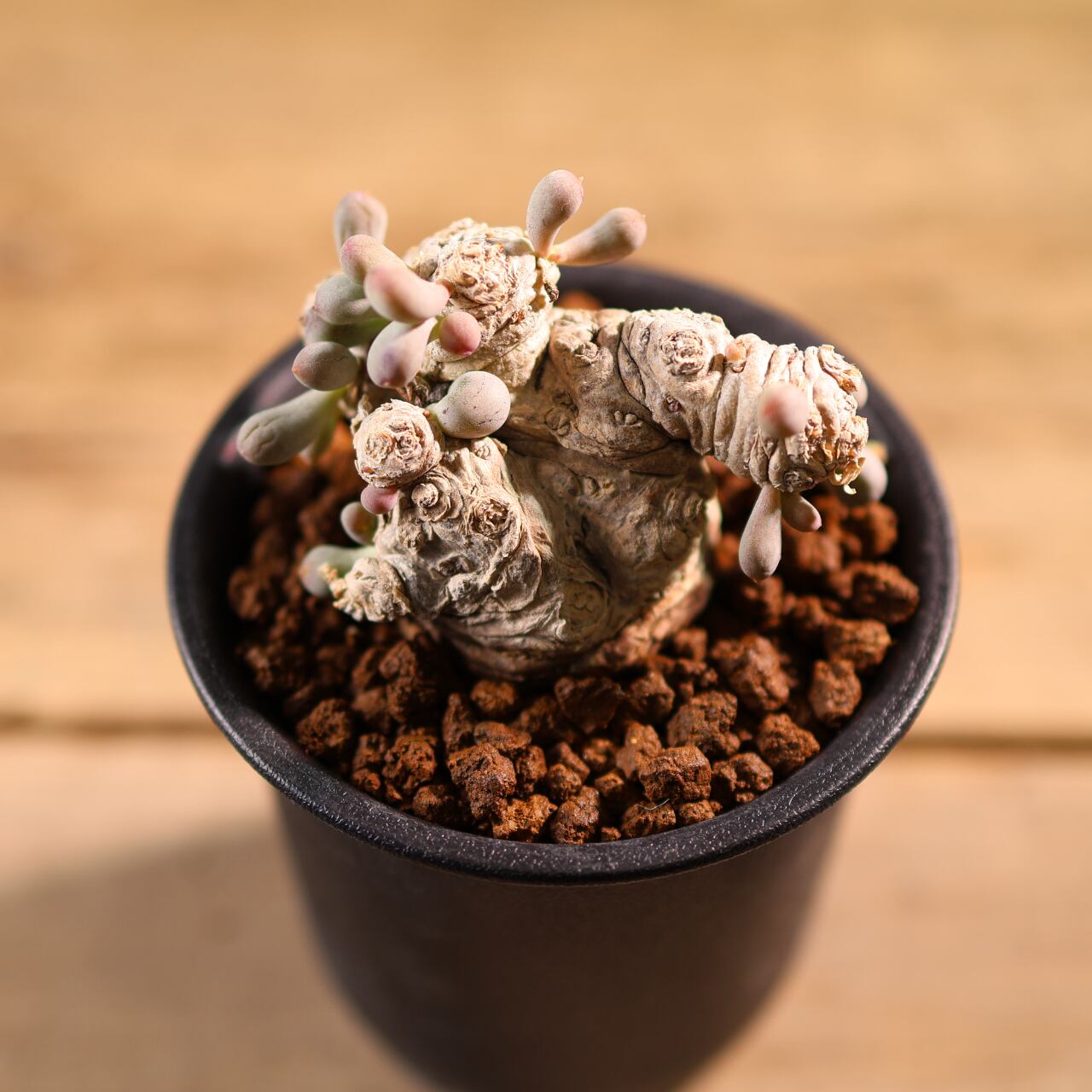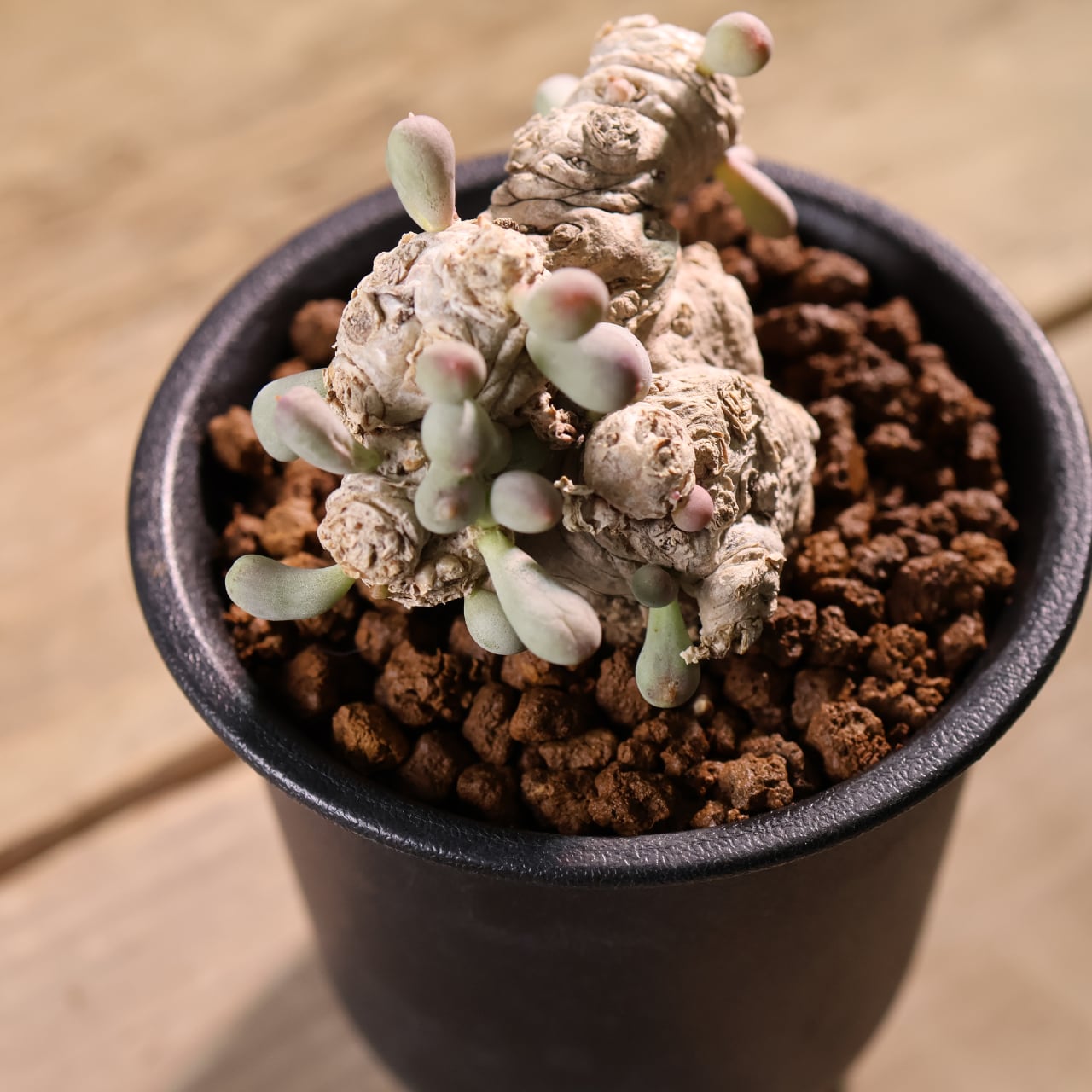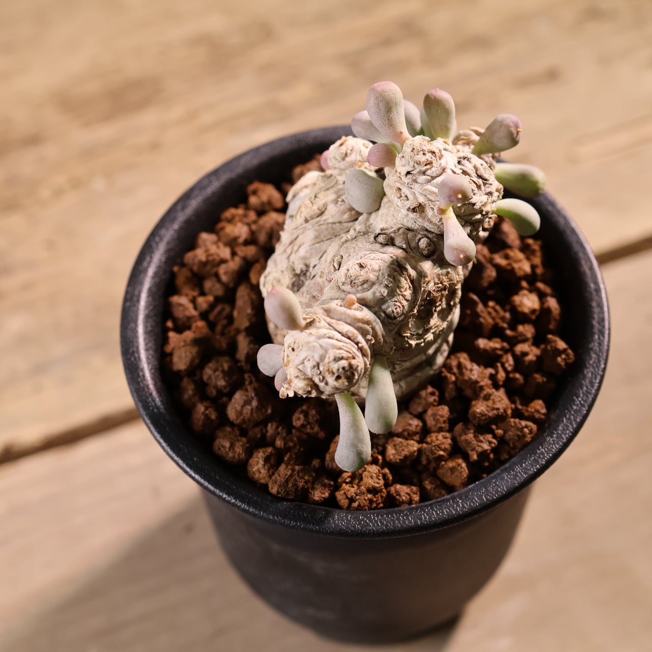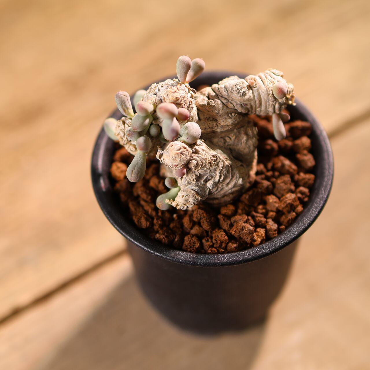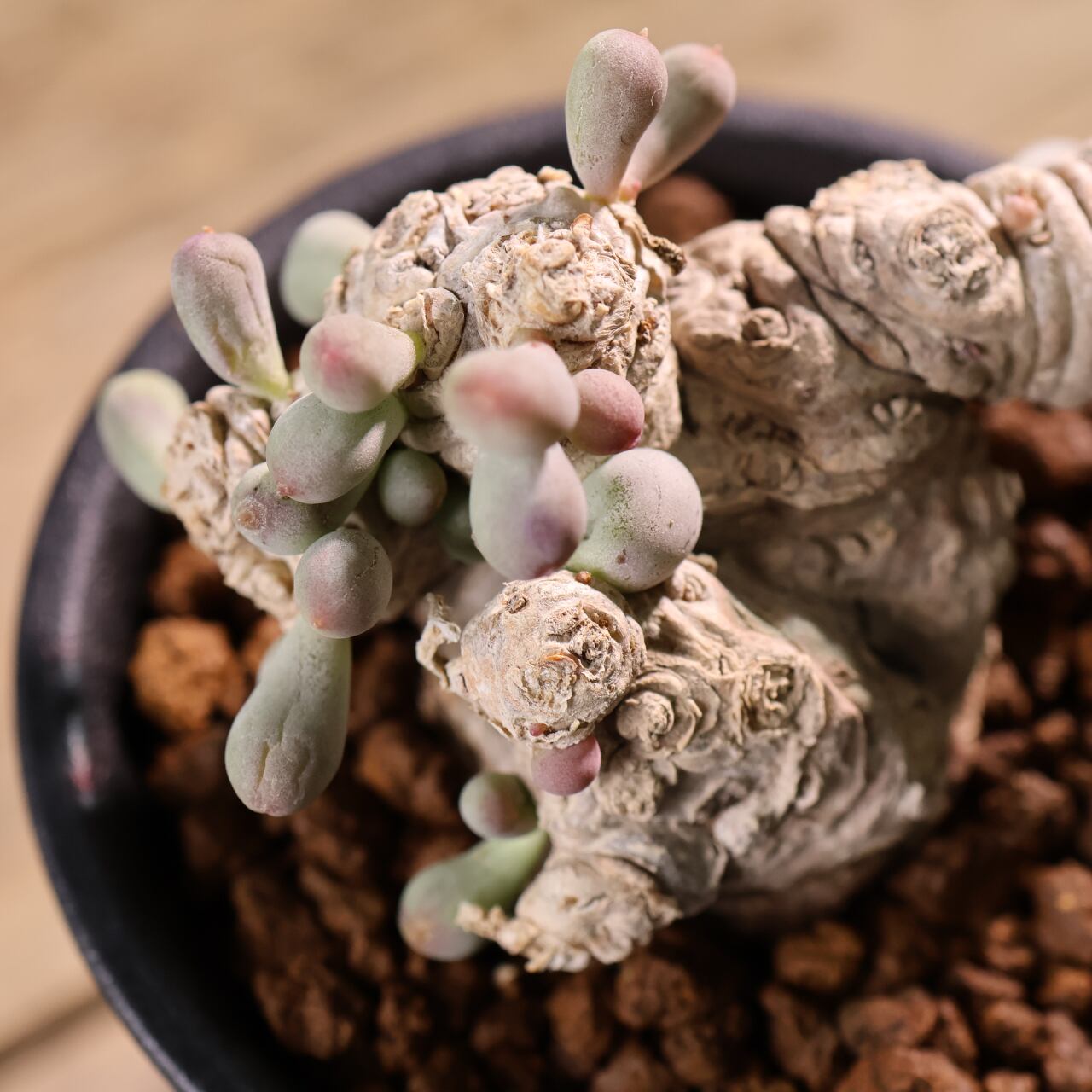 ぷりぷりとした葉をもつ太い塊茎から短い枝を伸ばす小型のコーデックスプランツで、大きく育っても直径20cmほどにしか育たない小型種です。