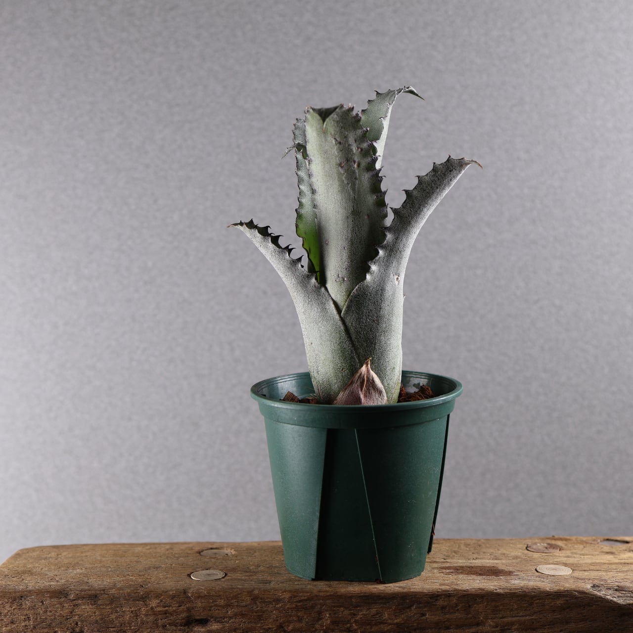 ホヘンベルギア・サンドラズマウンテンは、硬質で厚みのある葉をロゼット状に広げる力強い印象のブロメリアです。