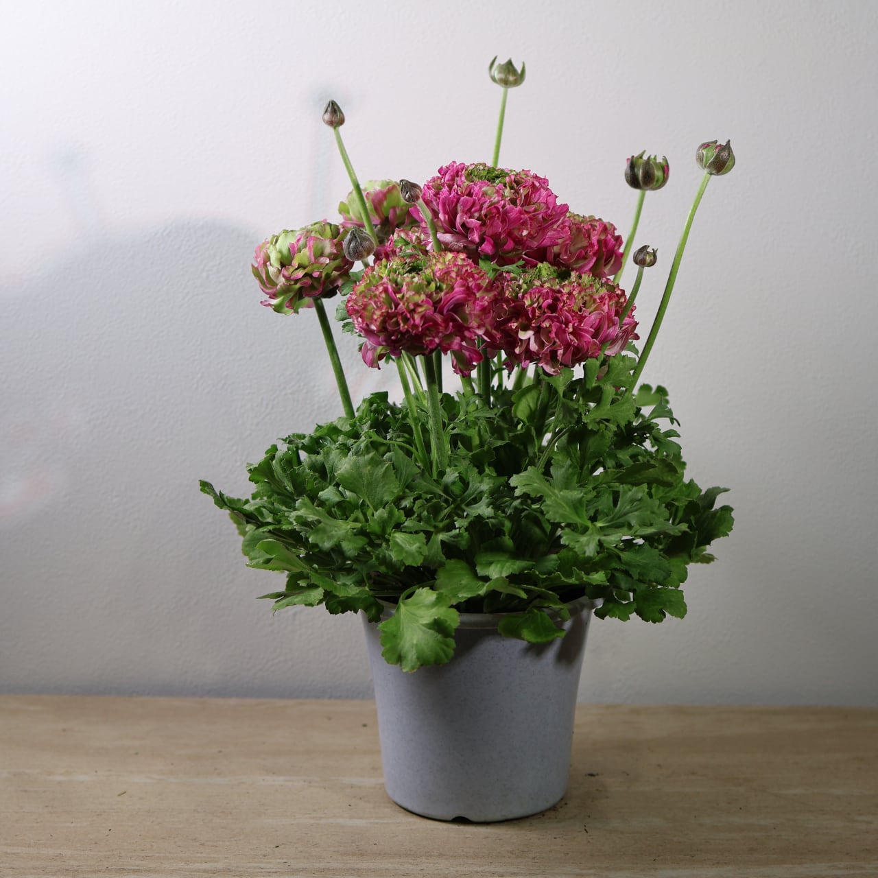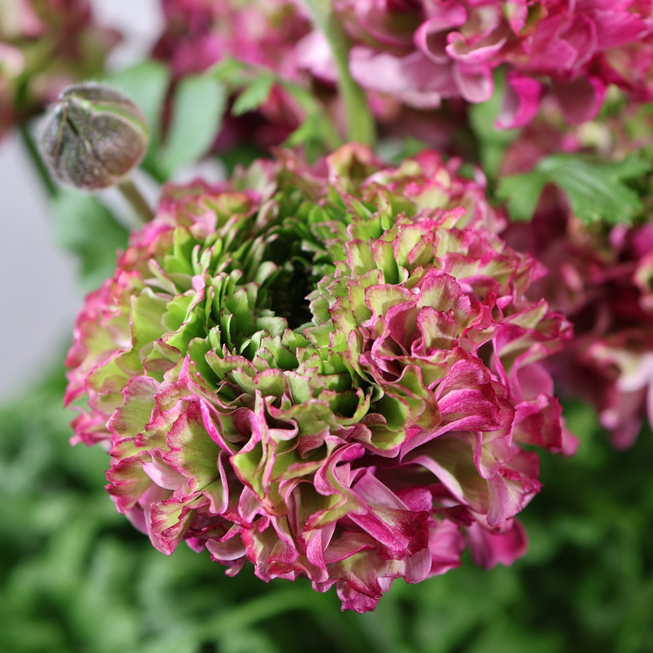 「ポンポンマルヴァ」は、繊細さと存在感を併せ持つラナンキュラスの人気品種です。