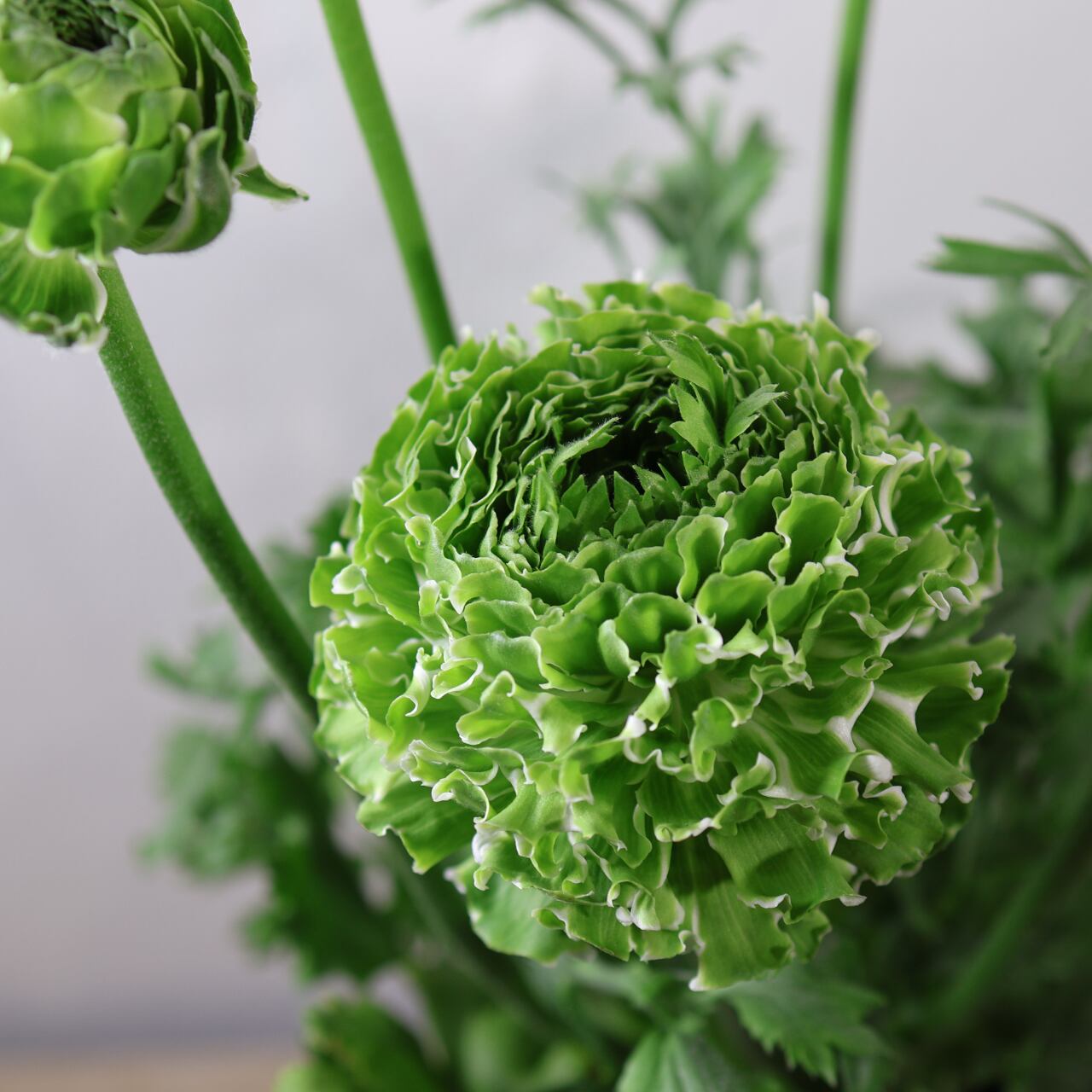 「ポンポン イグルー」は、爽やかなグリーン一色で構成された希少な色合いが魅力のラナンキュラス。