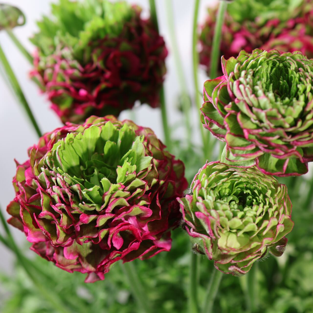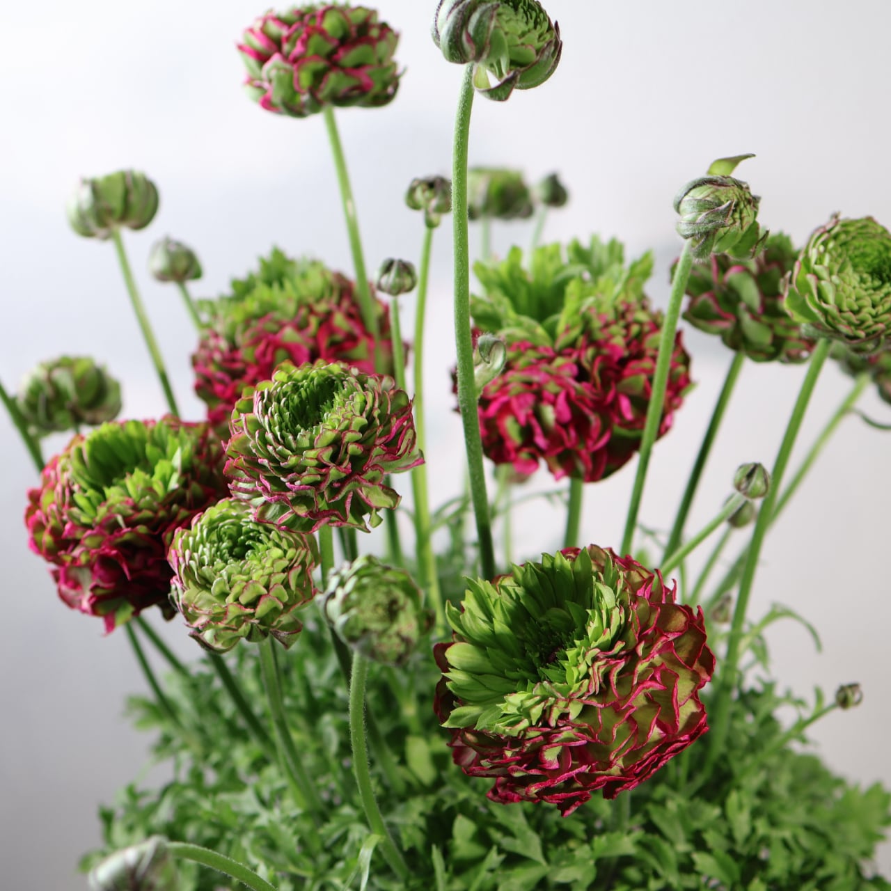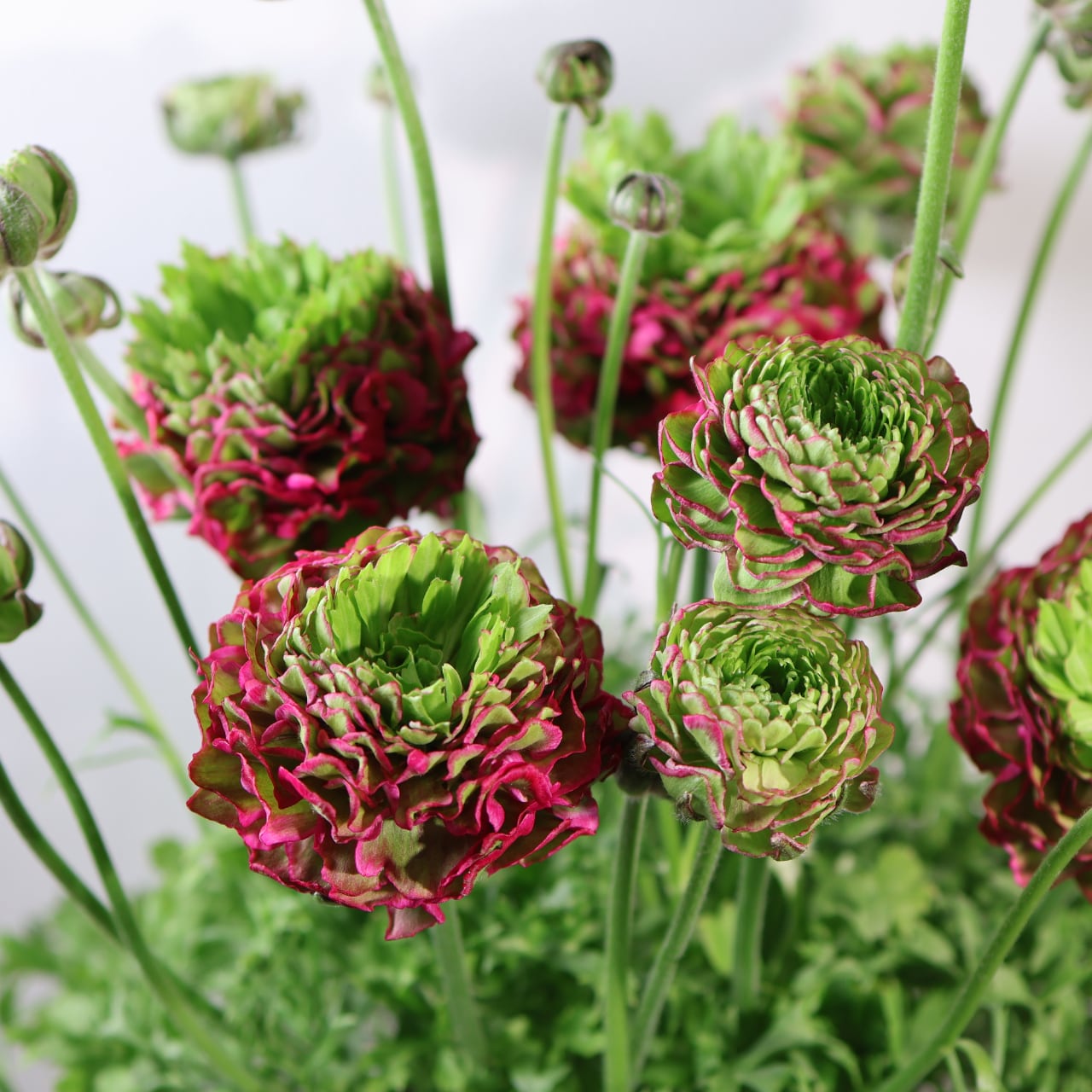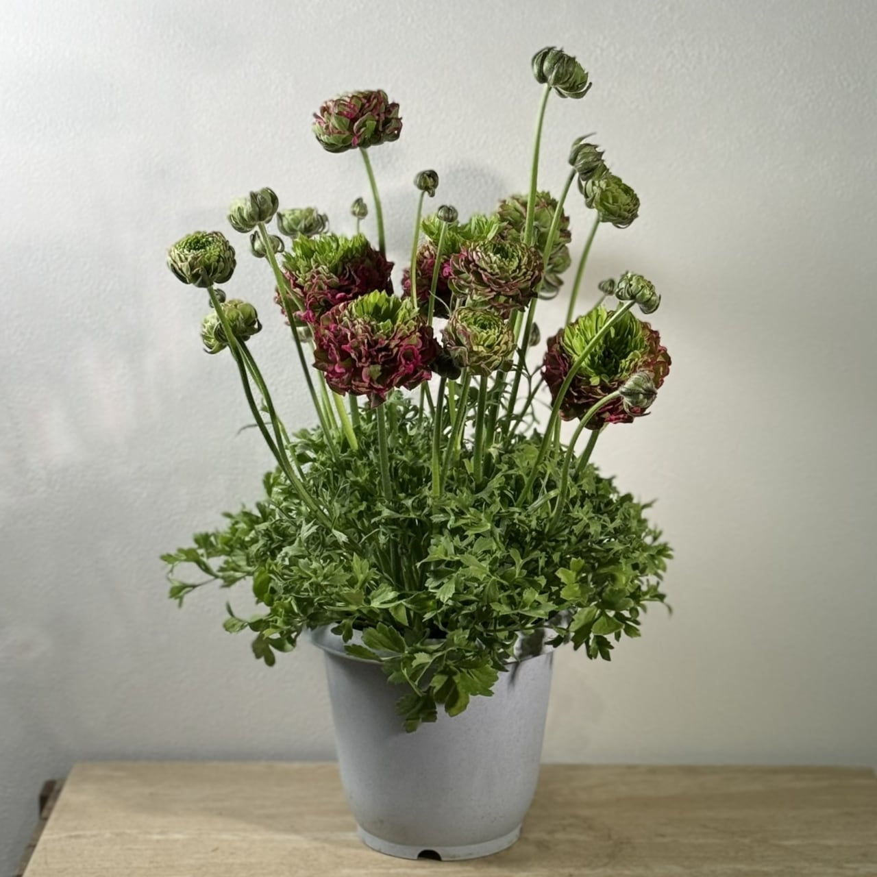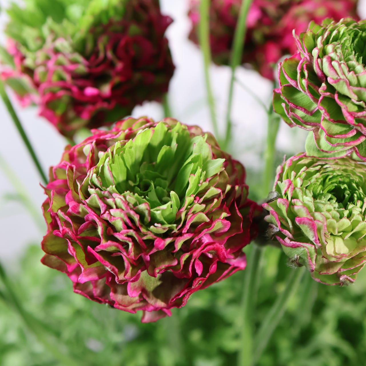 「ポンポンアラジン」は、繊細さと存在感を併せ持つラナンキュラスの人気品種です。