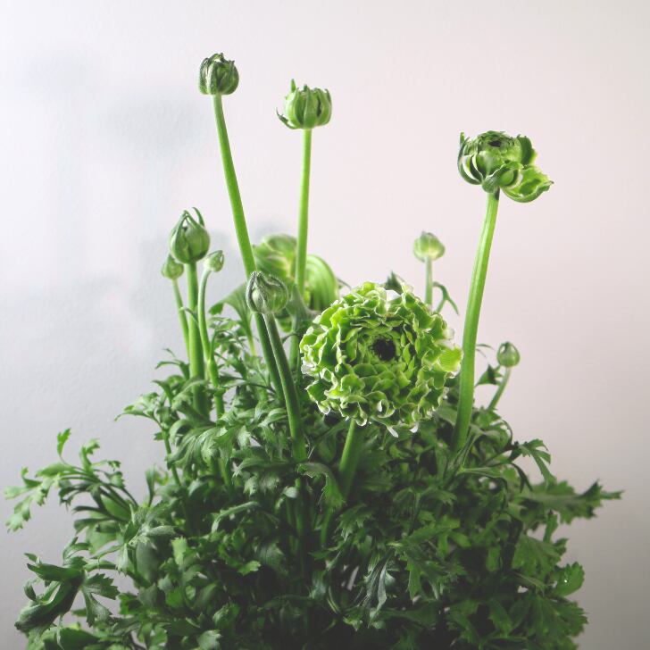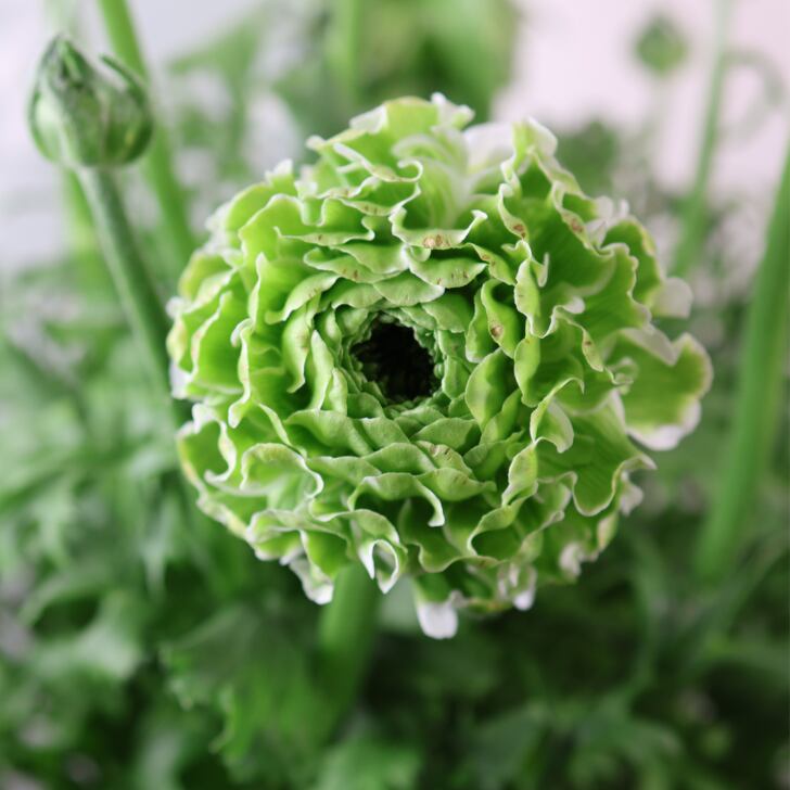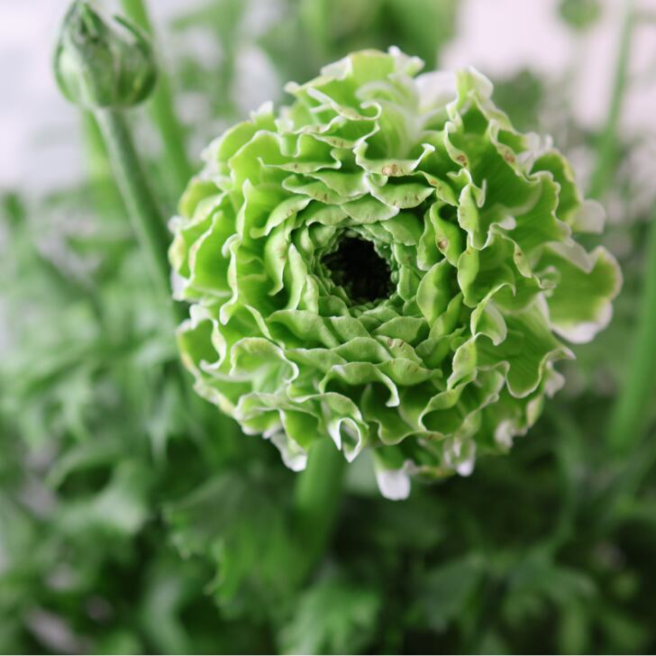 「ポンポン イグルー」は、爽やかなグリーン一色で構成された希少な色合いが魅力のラナンキュラス。