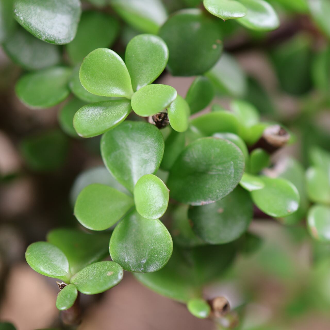 丸みのある小さな葉と赤みのある茎が特徴の人気多肉植物。