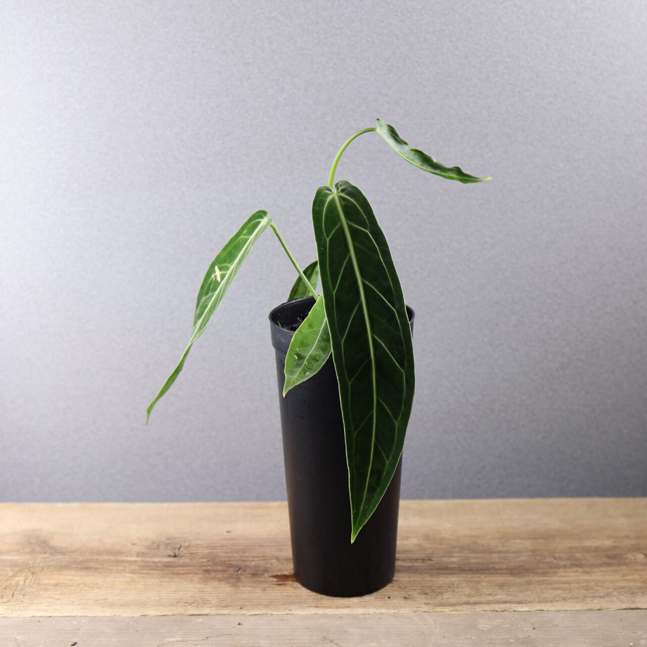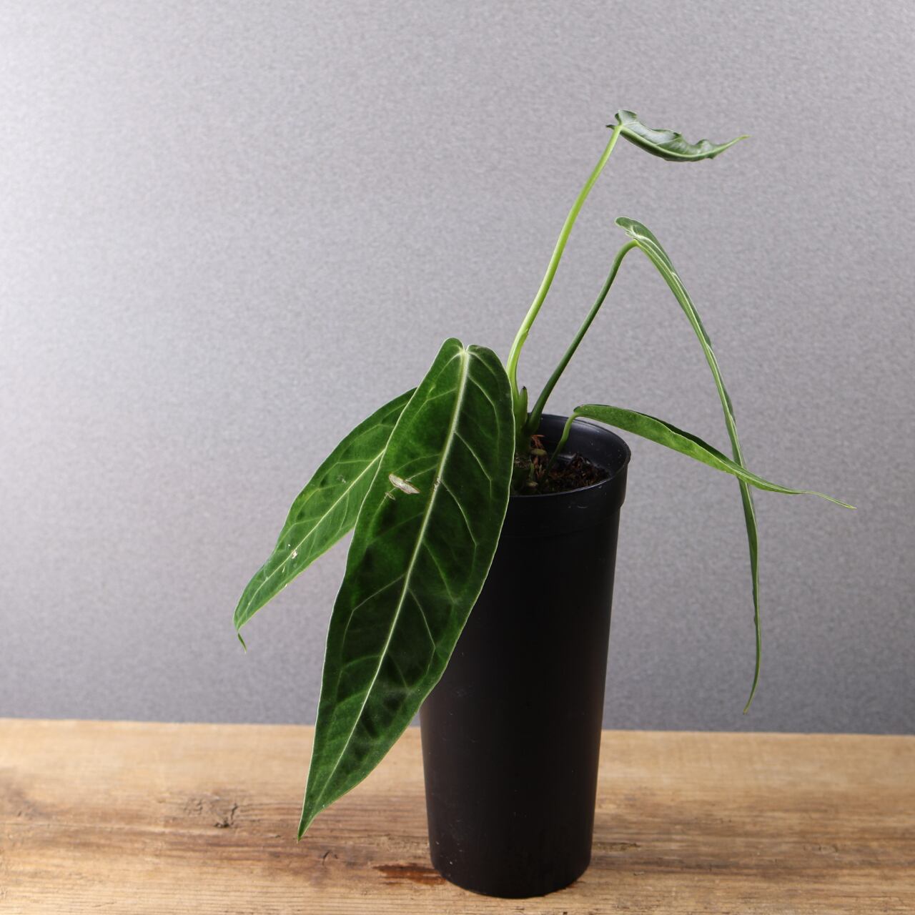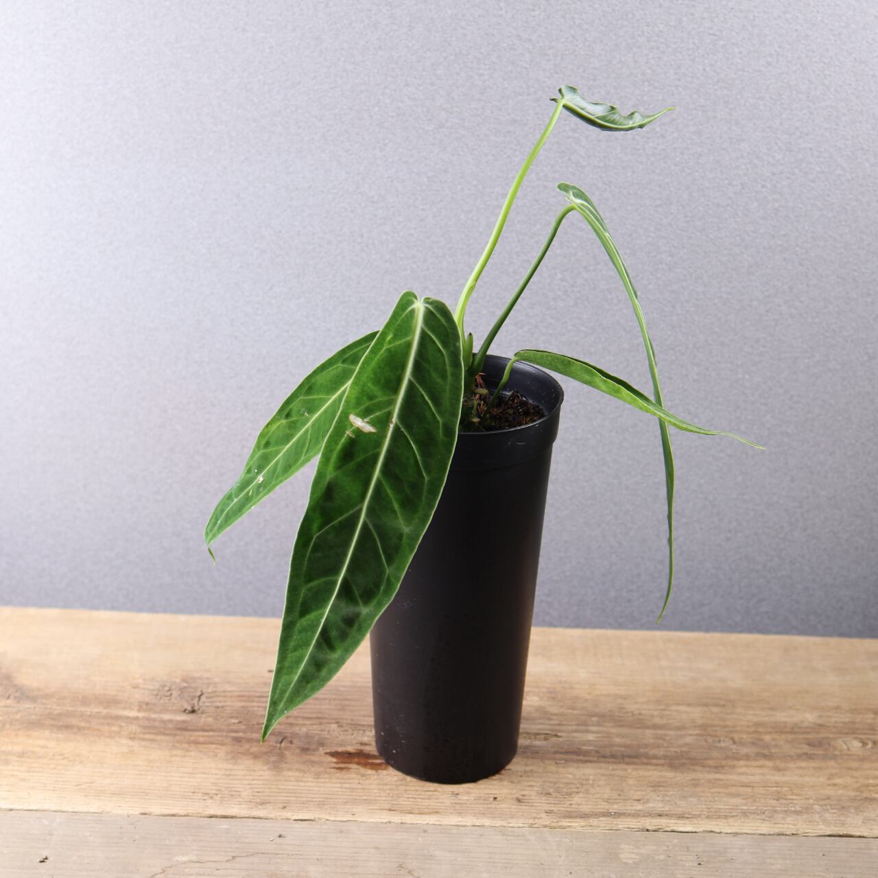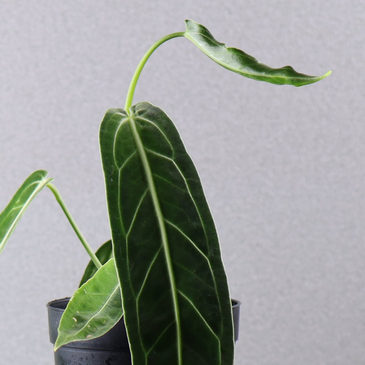 ビロード質の長大な葉が魅力の高級アンスリウム。