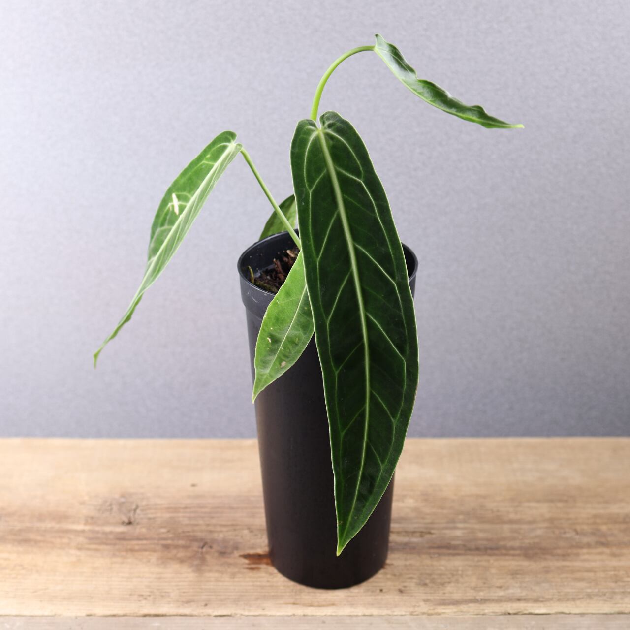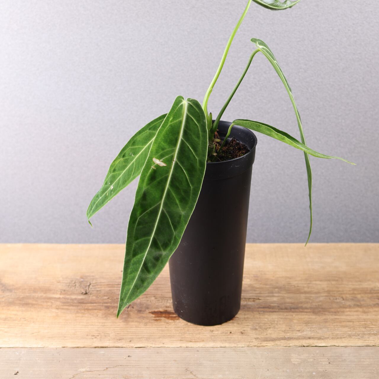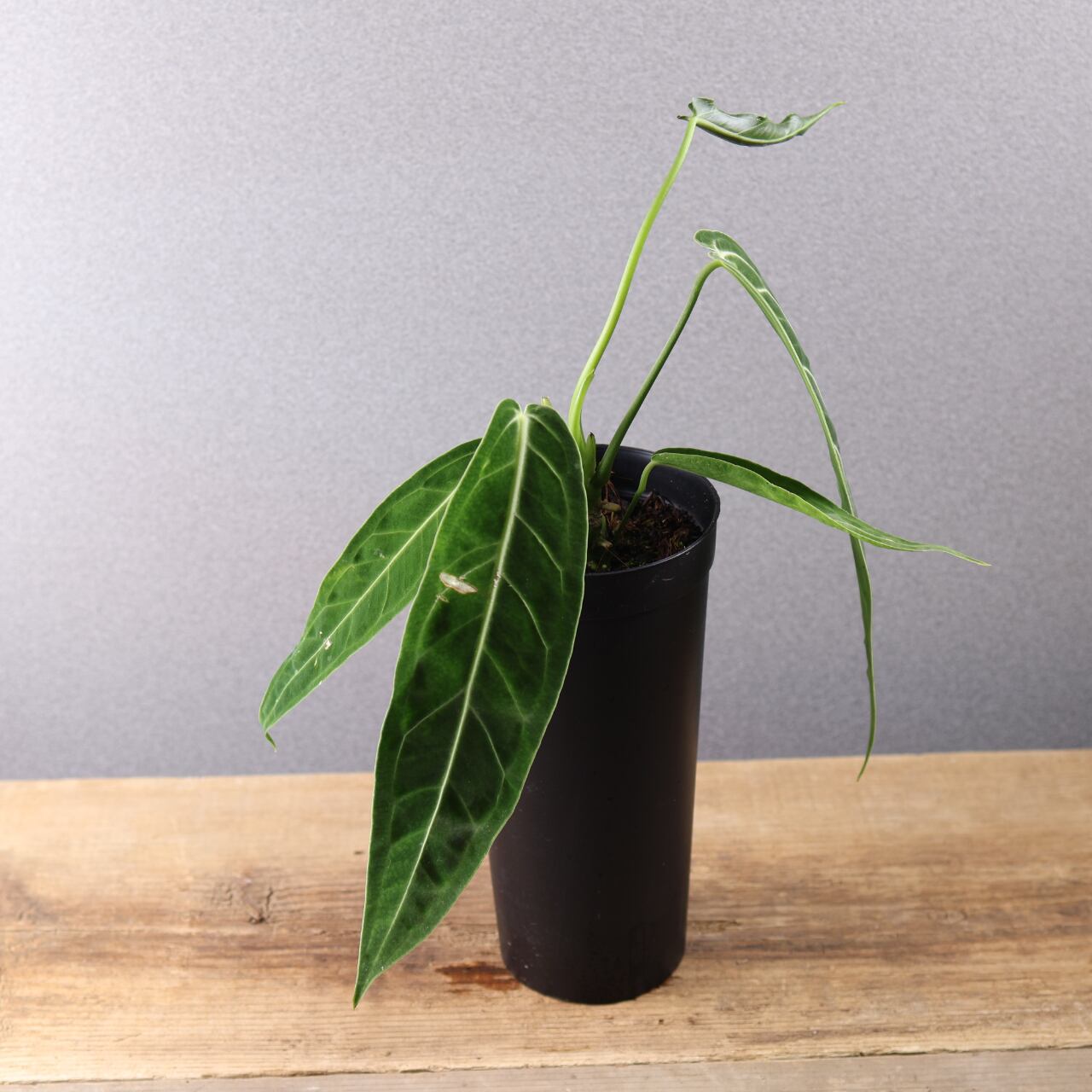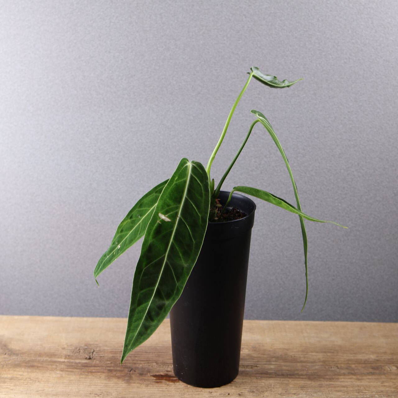 ビロード質の長大な葉が魅力の高級アンスリウム。