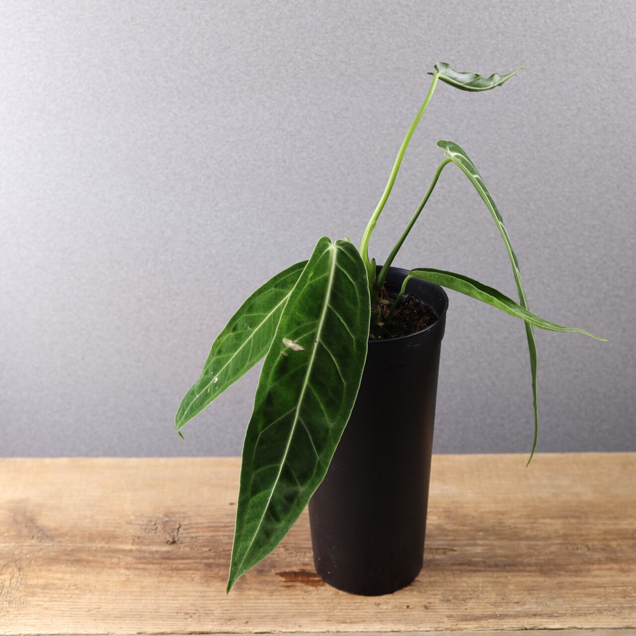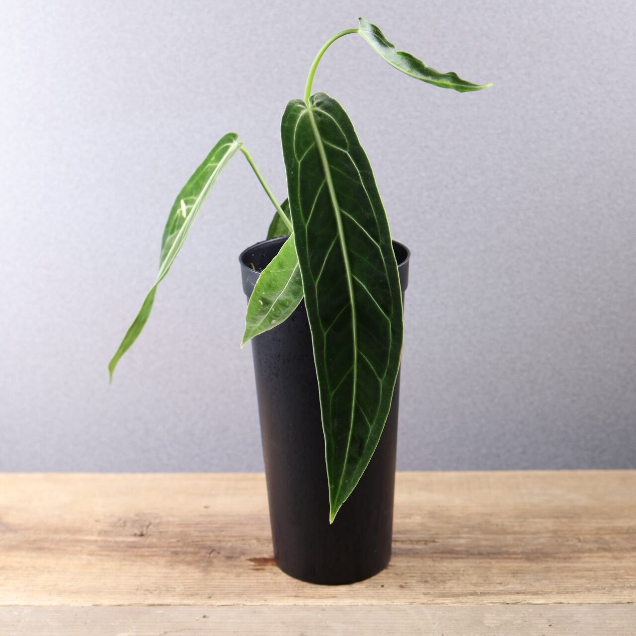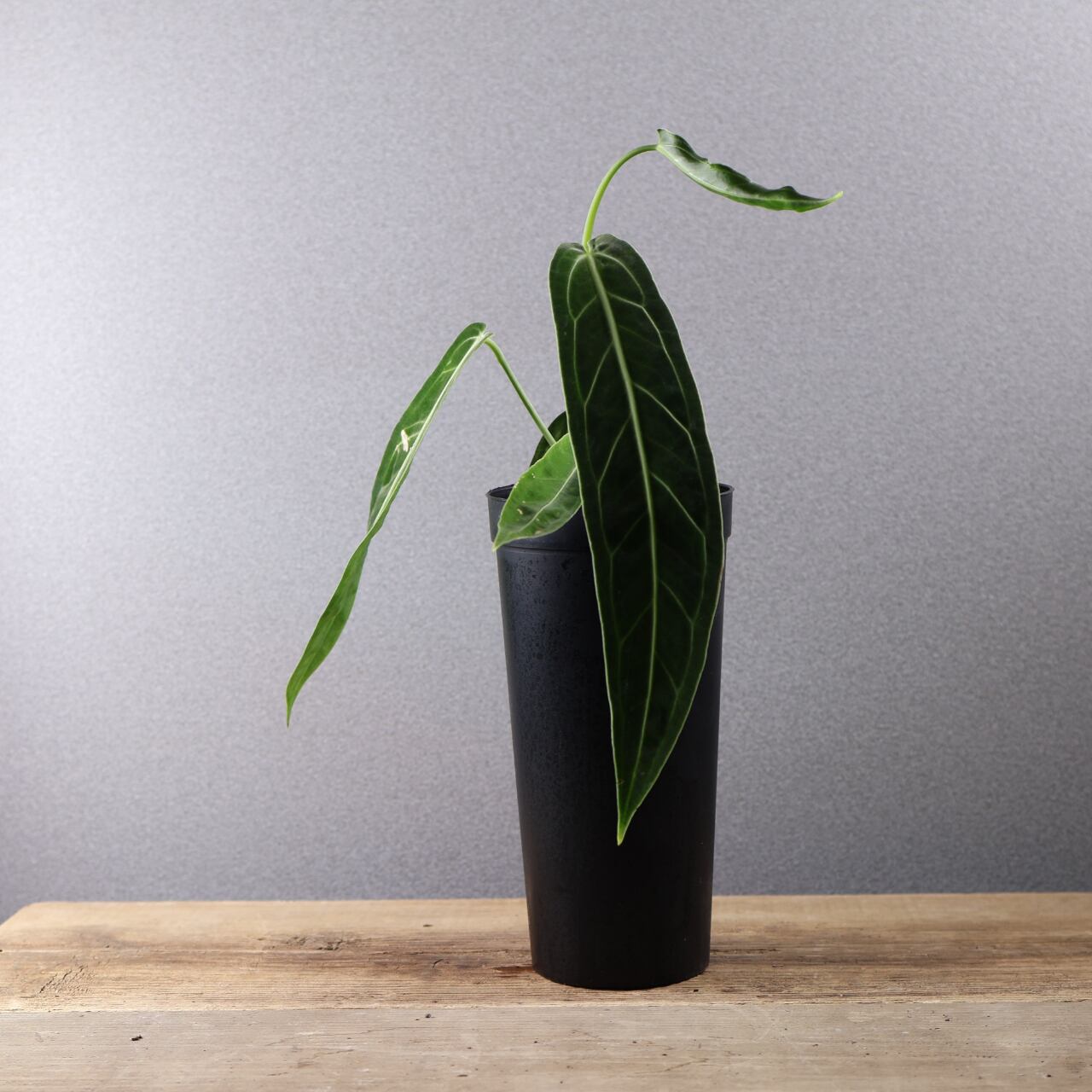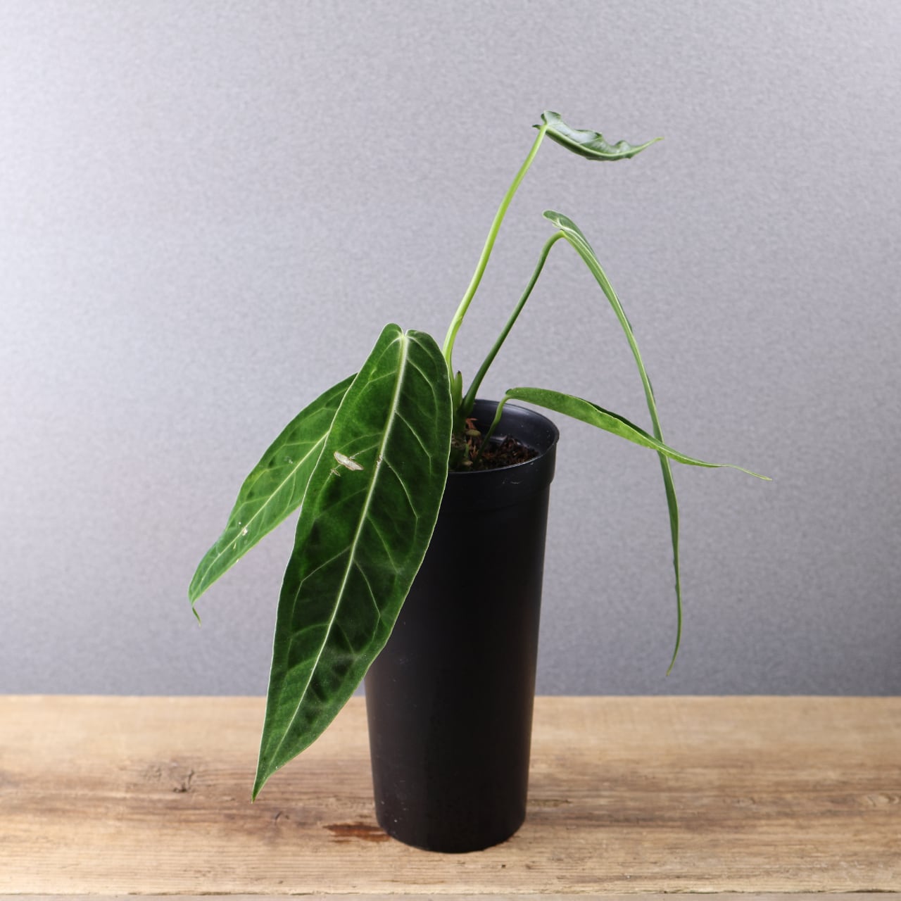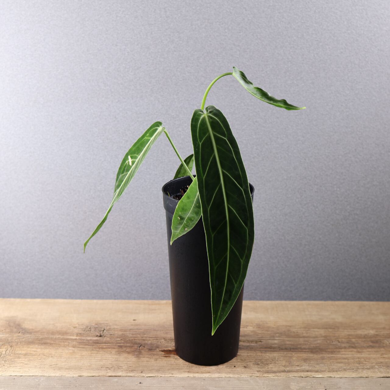 ビロード質の長大な葉が魅力の高級アンスリウム。