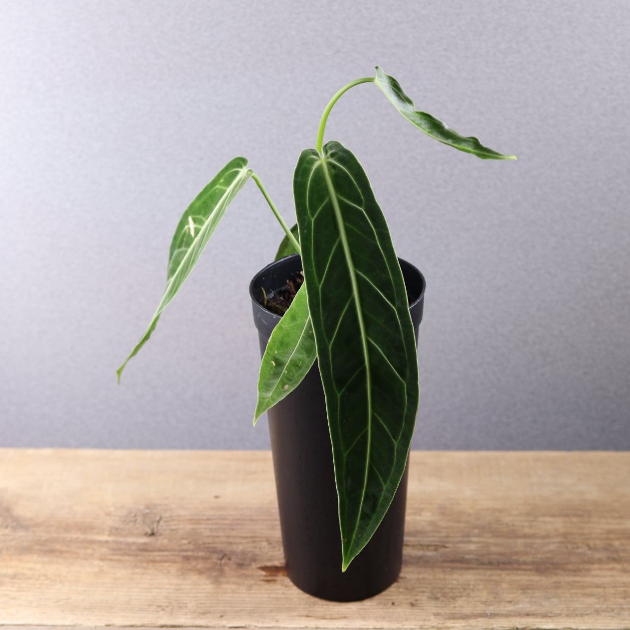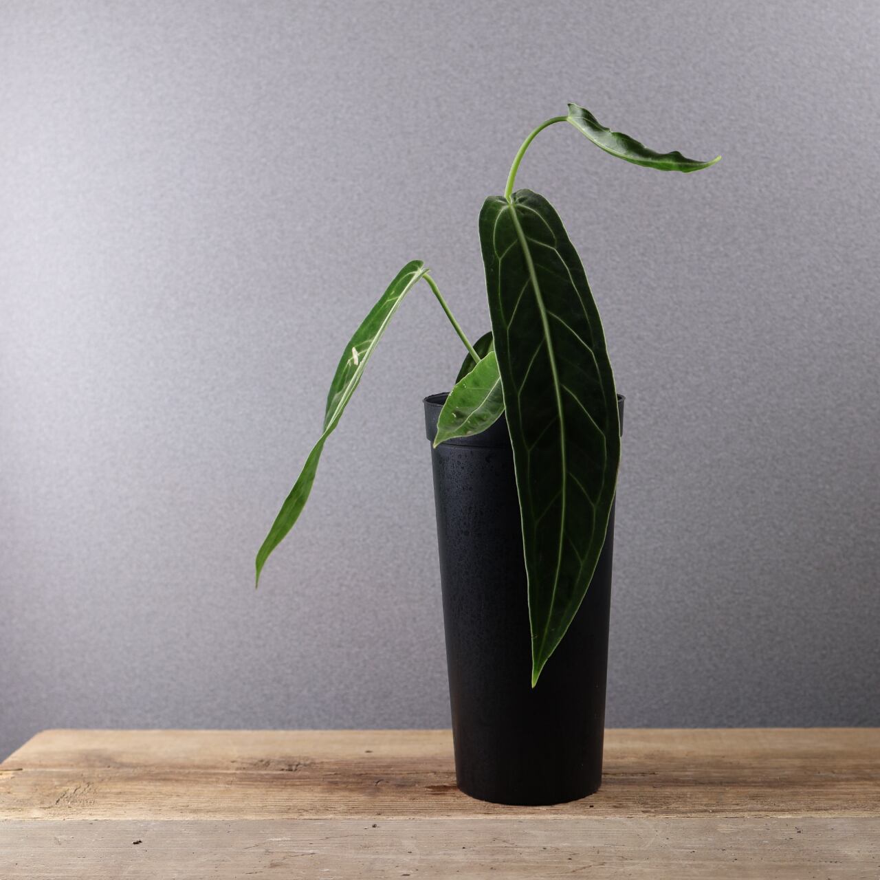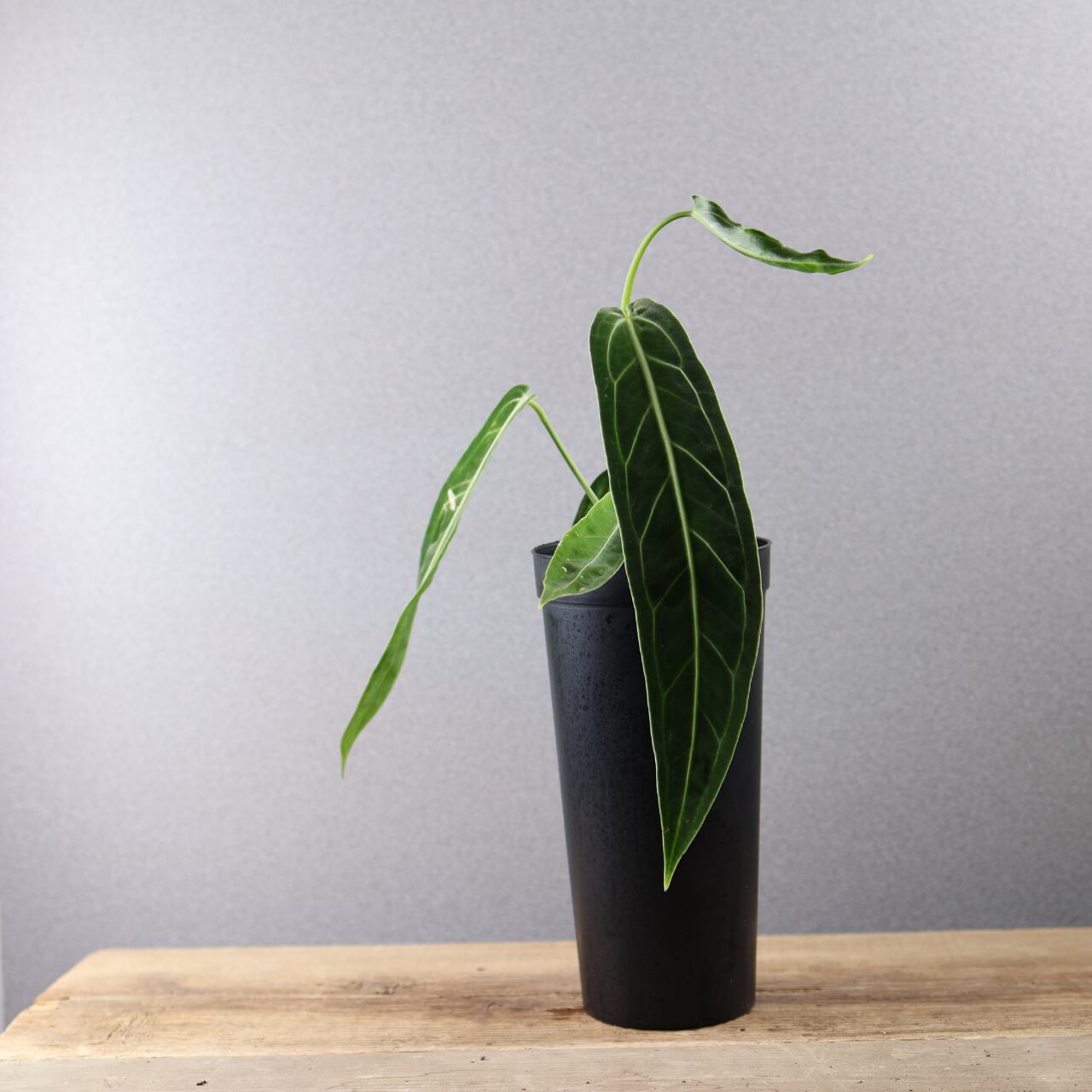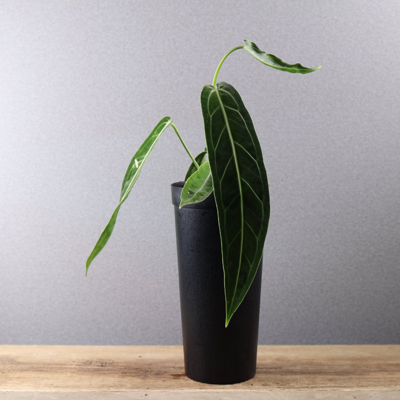 ビロード質の長大な葉が魅力の高級アンスリウム。