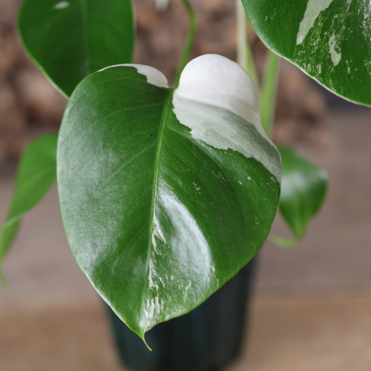 グリーンの葉に対して、純白に近いコントラストの強い斑が入り、一枚ごとに異なる模様を楽しめるのが魅力です。