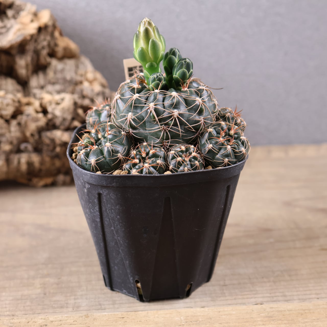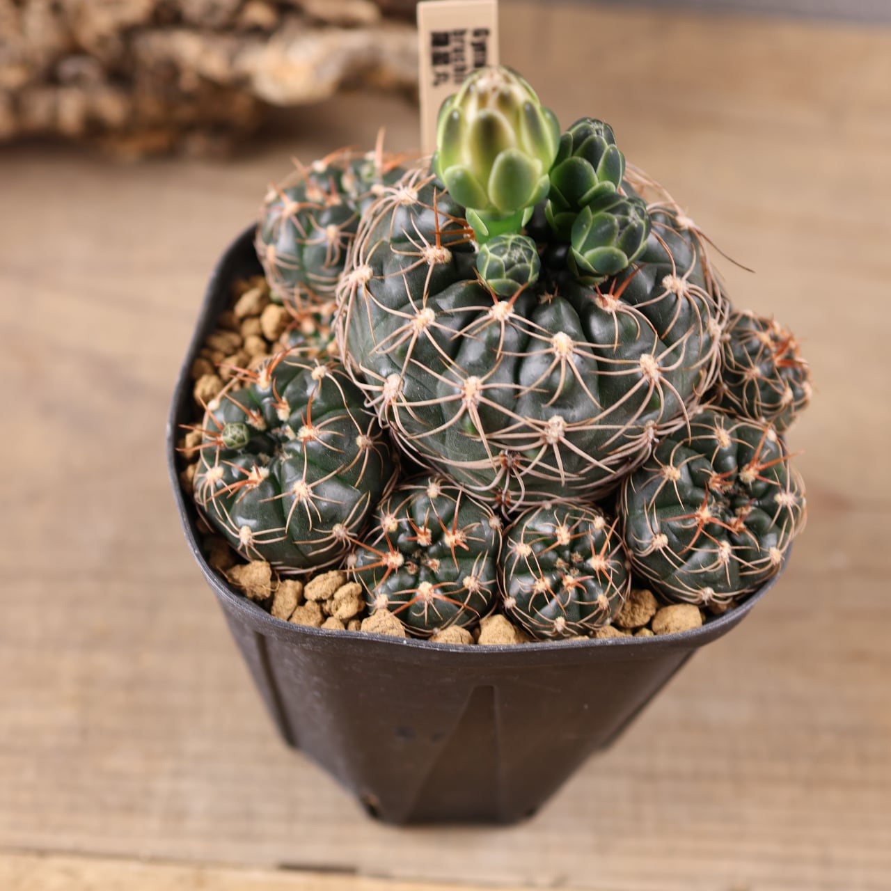 やや扁平な球体に、星のように広がる刺が特徴で、名前の通りどこか“星”を連想させるフォルム。成長すると子株を出して群生し、見応えのある株に育っていきます。さらに開花期には繊細で可愛らしい花を咲かせ、観賞価値も高い品種です。