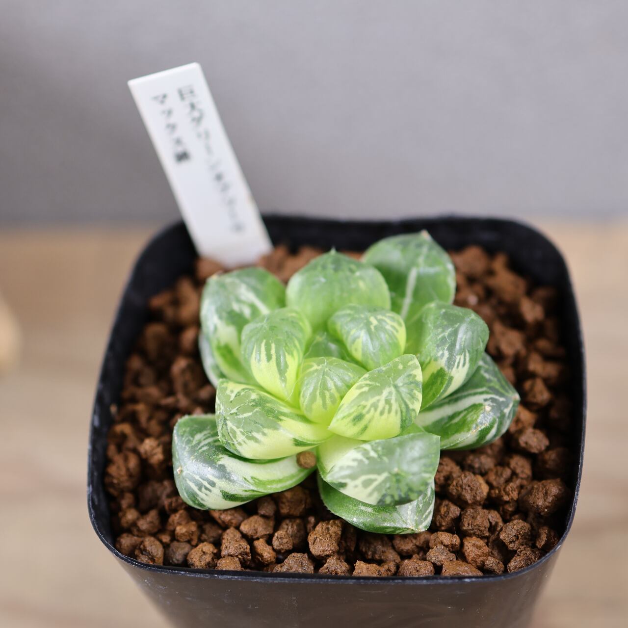 透明感のある葉で人気のHaworthiaオブツーサ系の中でも、サイズ感と斑の迫力が際立つ大型選抜系統。