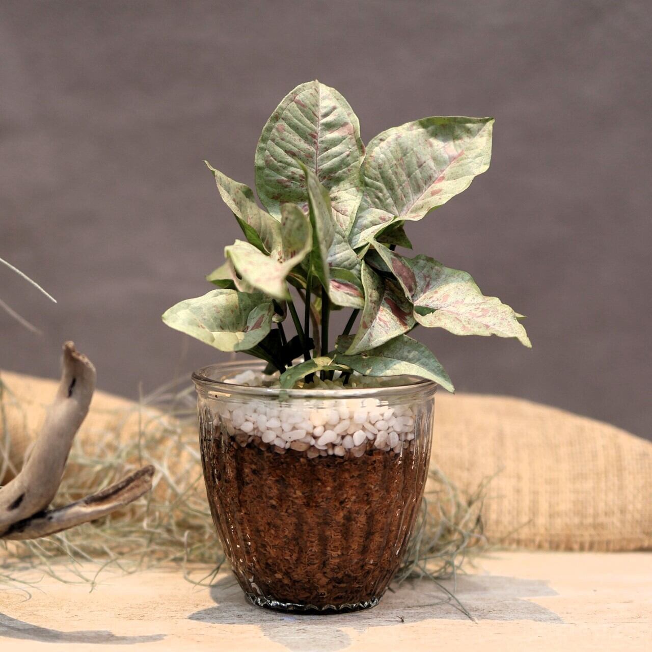 『シンゴニウム』ガラス鉢付き_ハイドロカルチャー_観葉植物【送料無料】