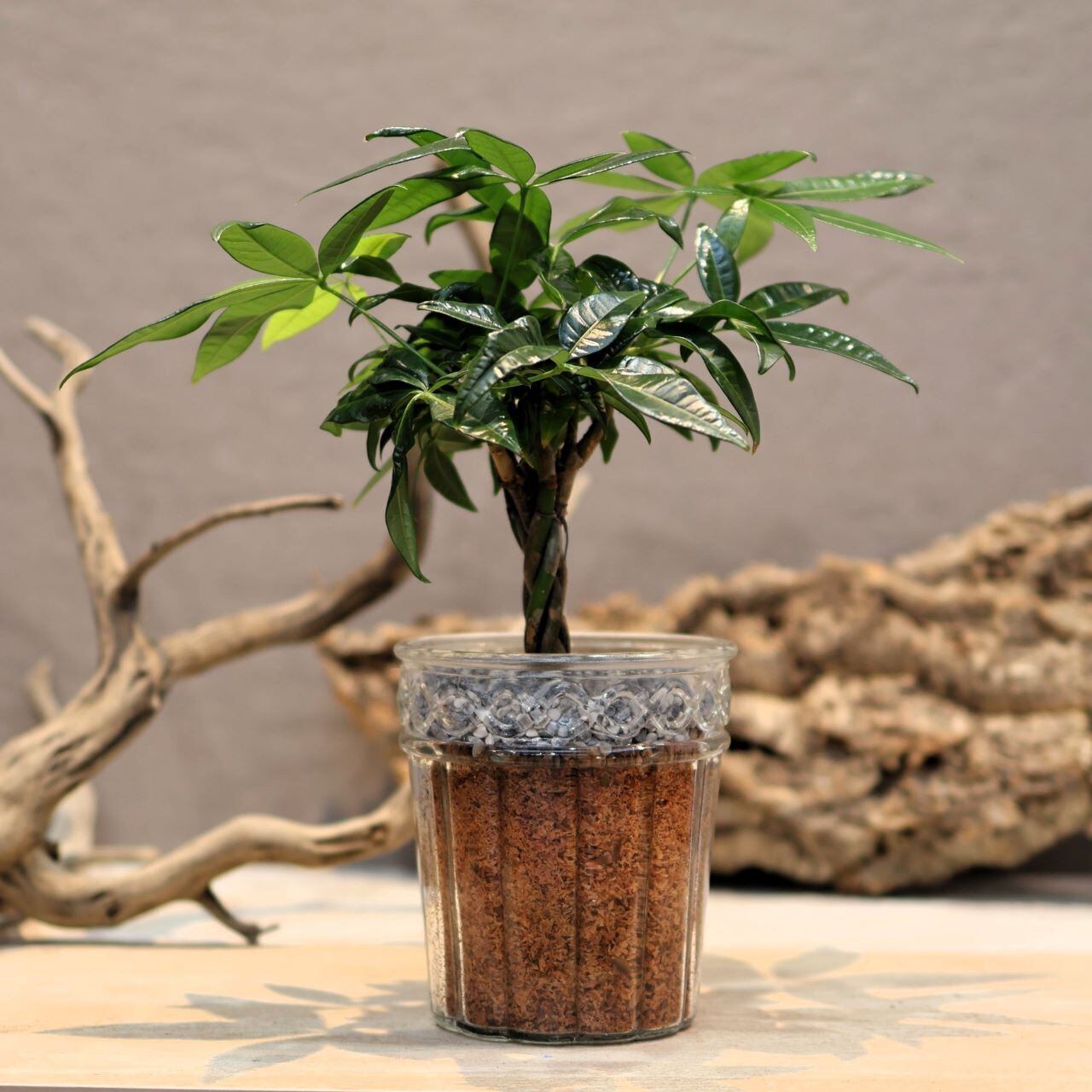 この美しいパキラをお手元に迎えて、癒しの時間をお楽しみください。
