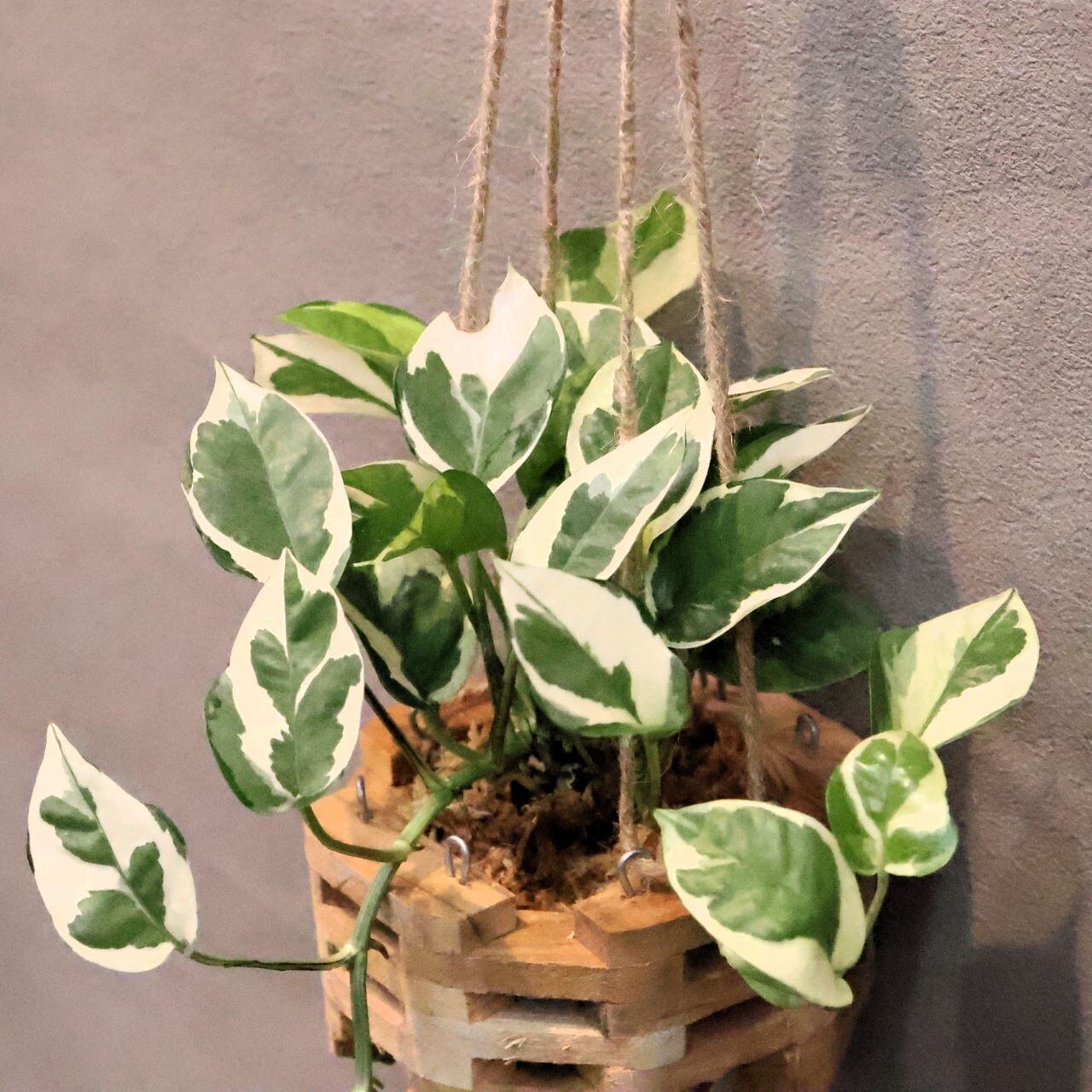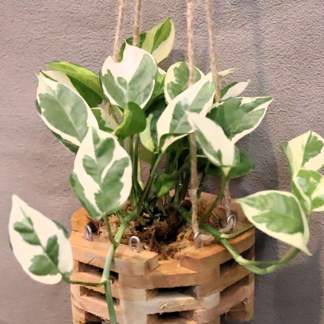 『ポトス エメラルド』チークバスケット付き_観葉植物【送料無料】