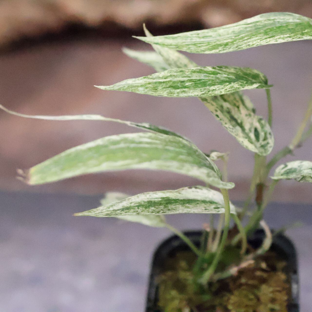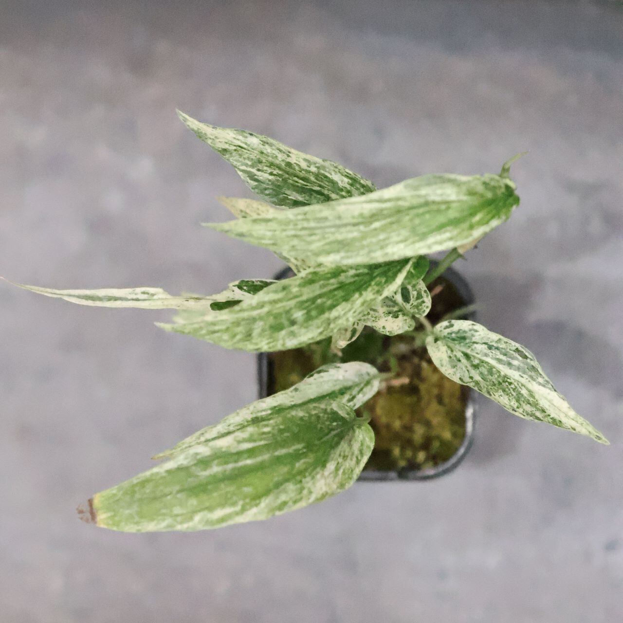 『アミドリウム斑入りジッペリアナム』は、あまり出回らないサトイモ科の植物。