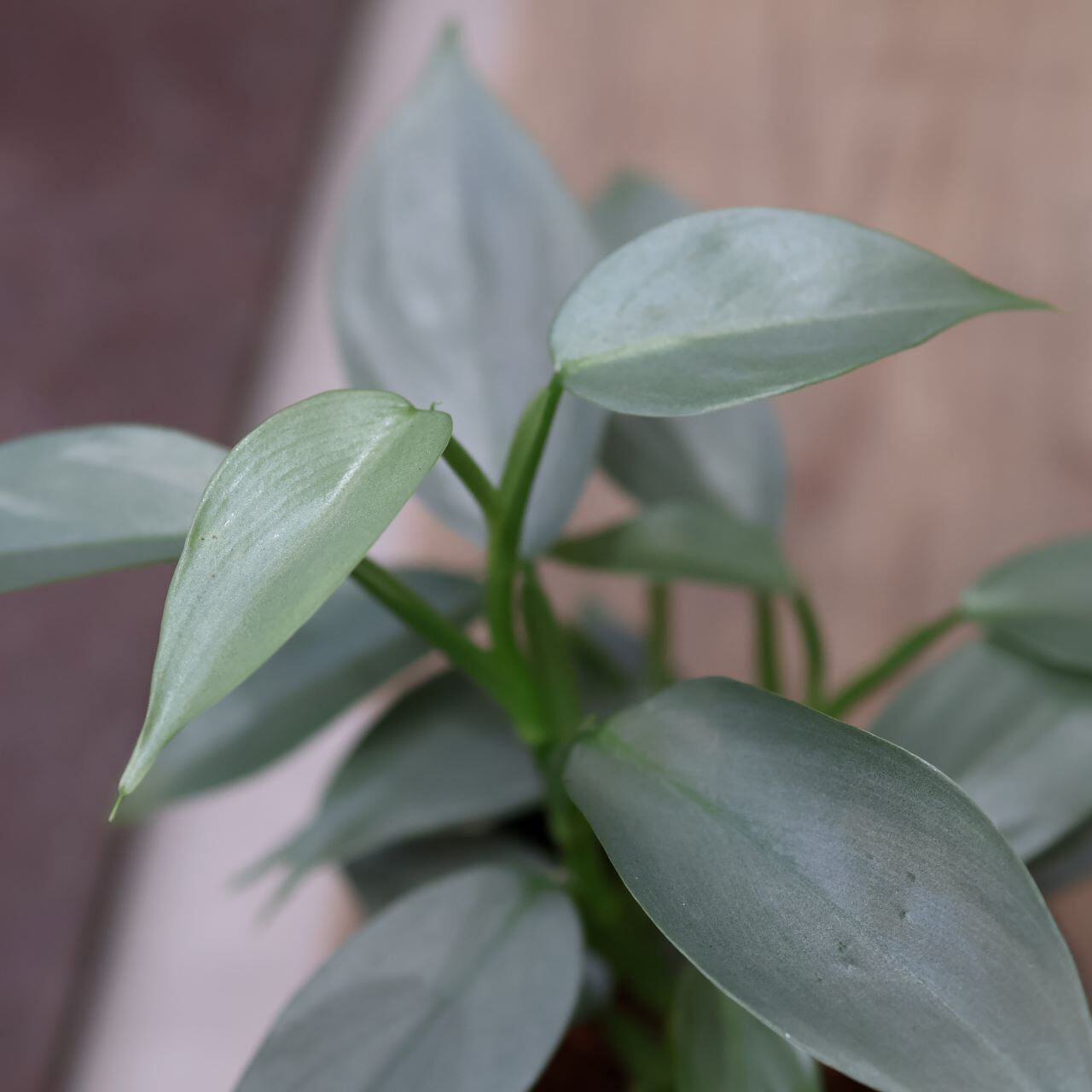 『フィロデンドロン シルバーメタル』は、メタリックのようなシルバーの美しい葉が特徴のサトイモ科の人気の観葉植物です!