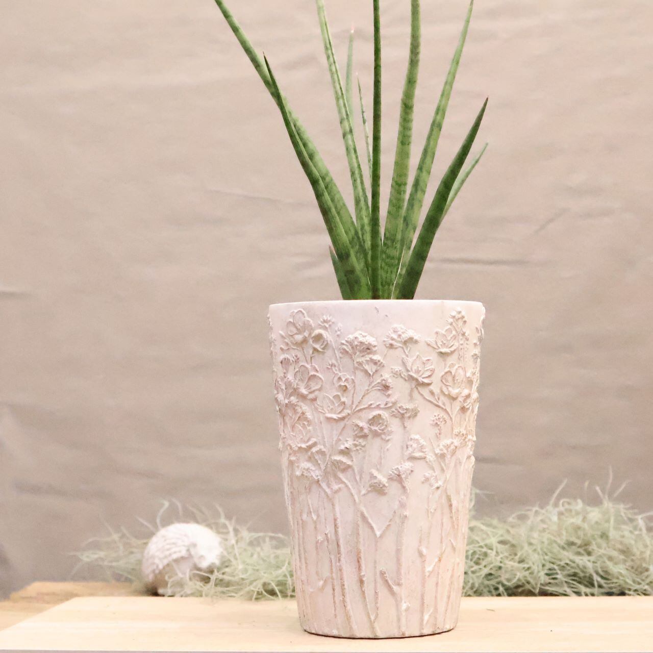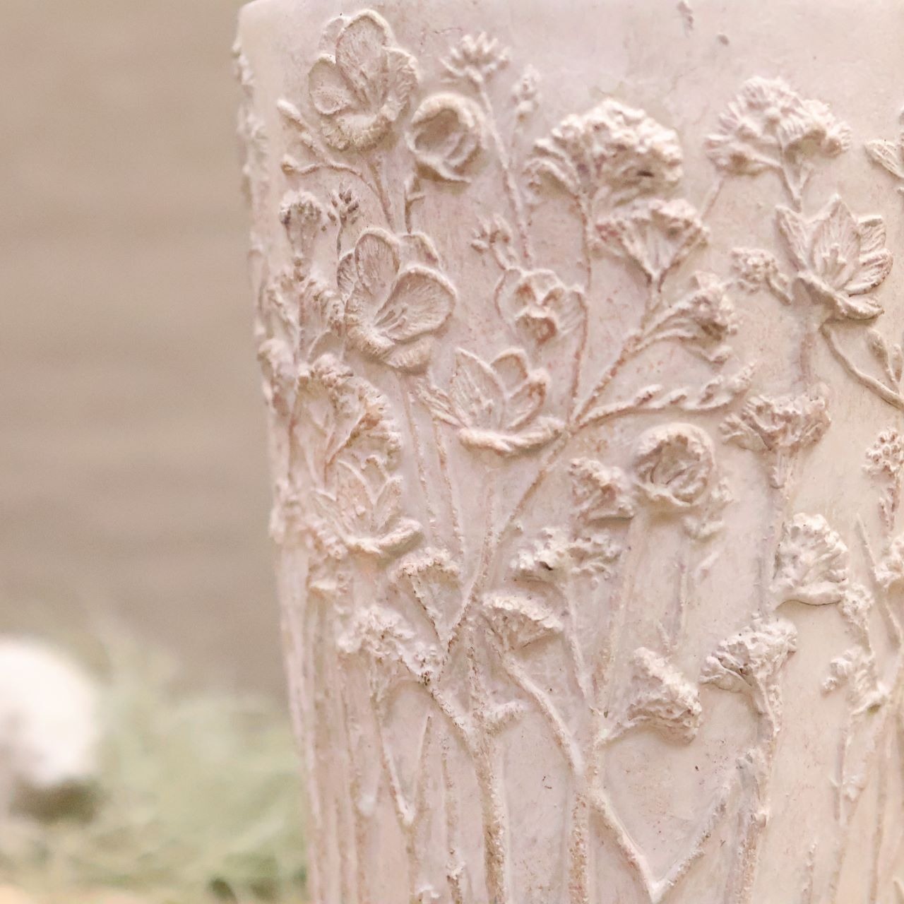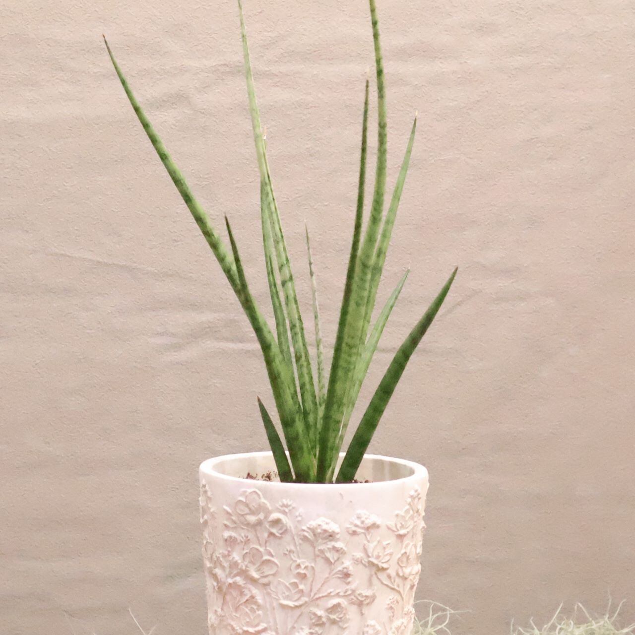 シャビーシックな小花柄がかわいい石膏アートのような鉢でさりげなくおしゃれさをUPしてくれるはずです。