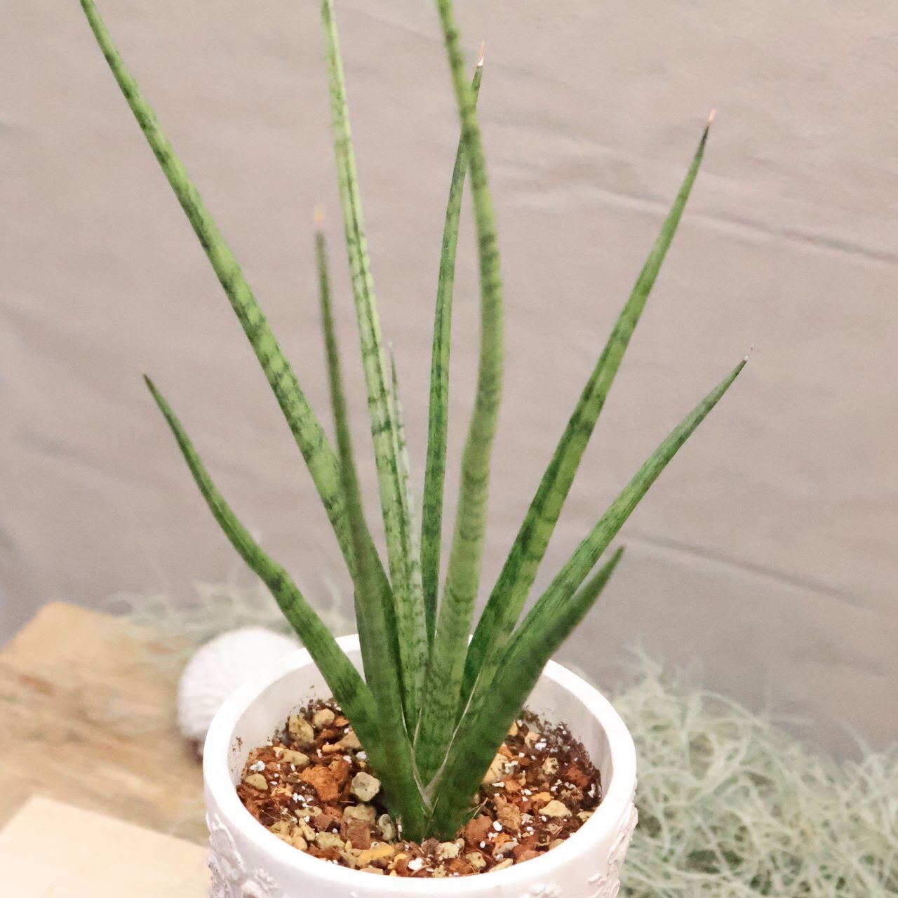 『サンスベリア グラキリス』は、空気清浄の効果があり風水にも良いと言われるサンスベリアの一種で 小型の棒状でなかなか流通しない希少品種です。
