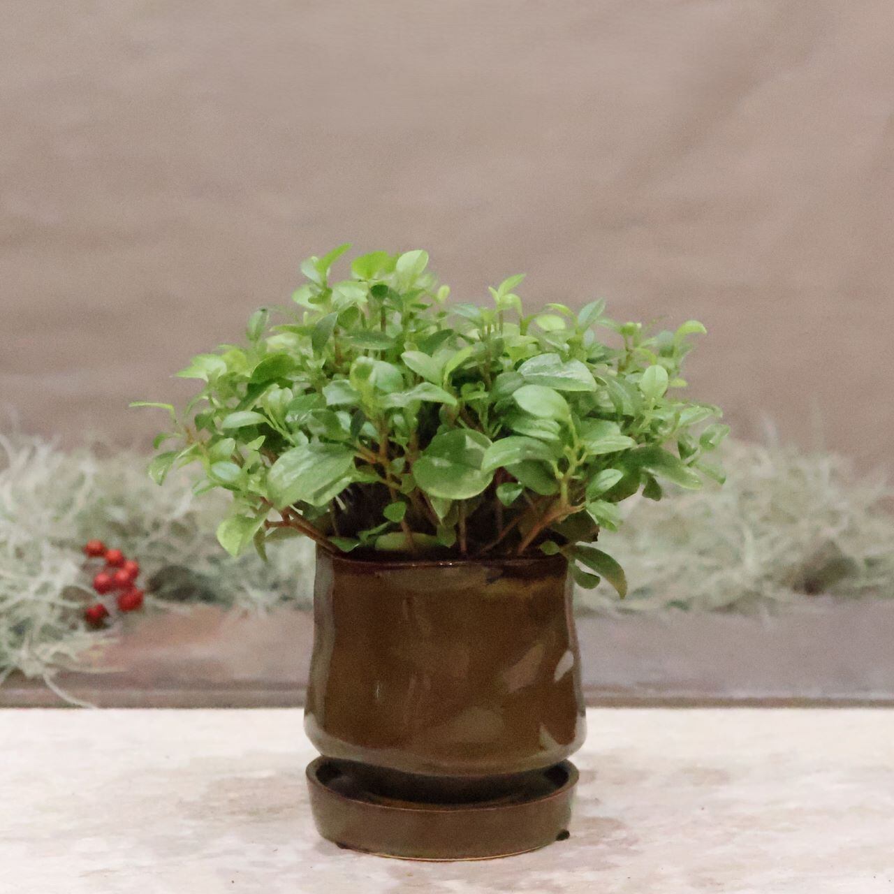 『ペペロミア グラベラ』は、小さなみどり色の葉が連なる観葉植物。インテリアに個性的なアクセントを加えます。その育てやすさから、初心者や忙しい方にもぴったりな品種です。鉢・鉢皿付きなので、届いたその日からすぐにお楽しみいただけます。