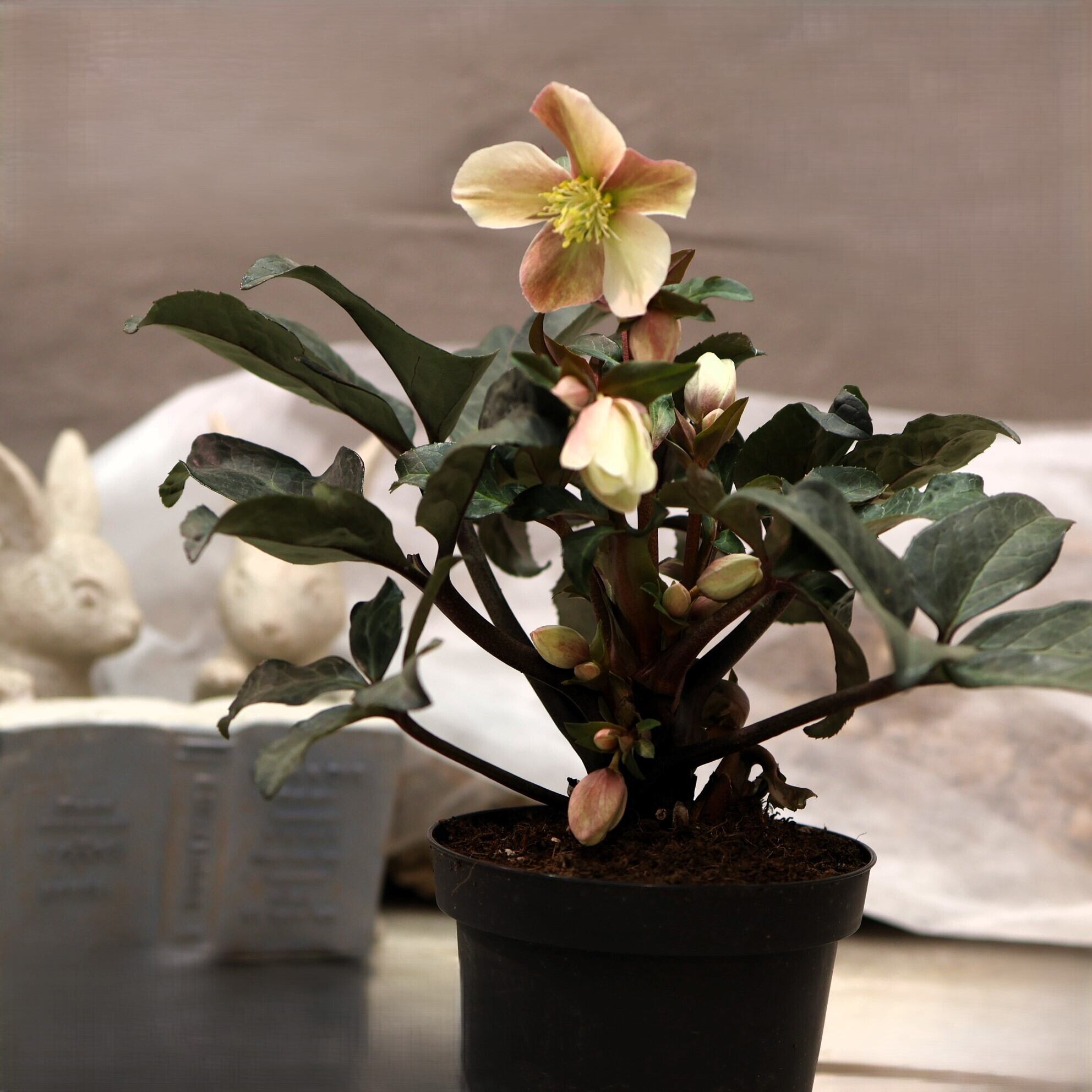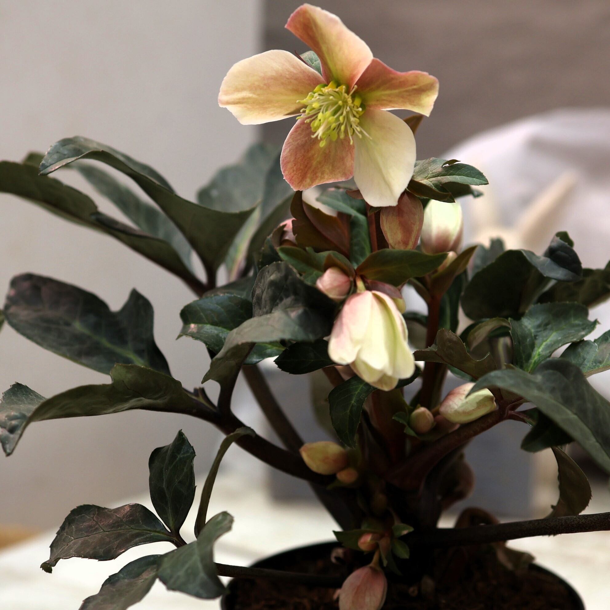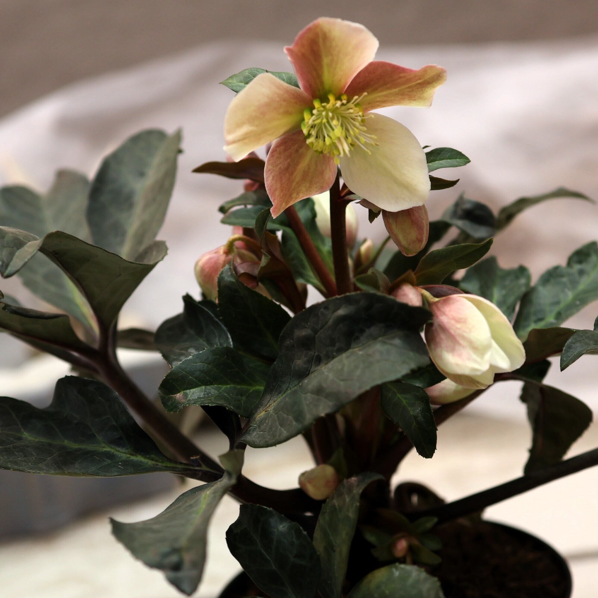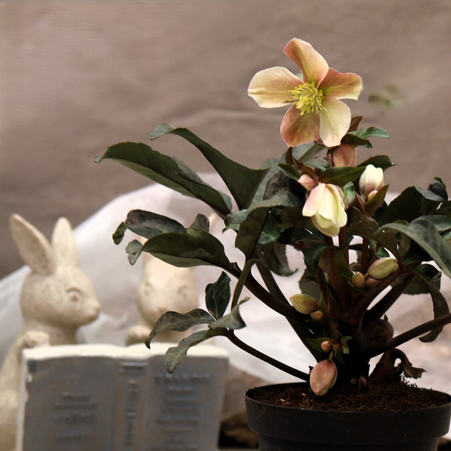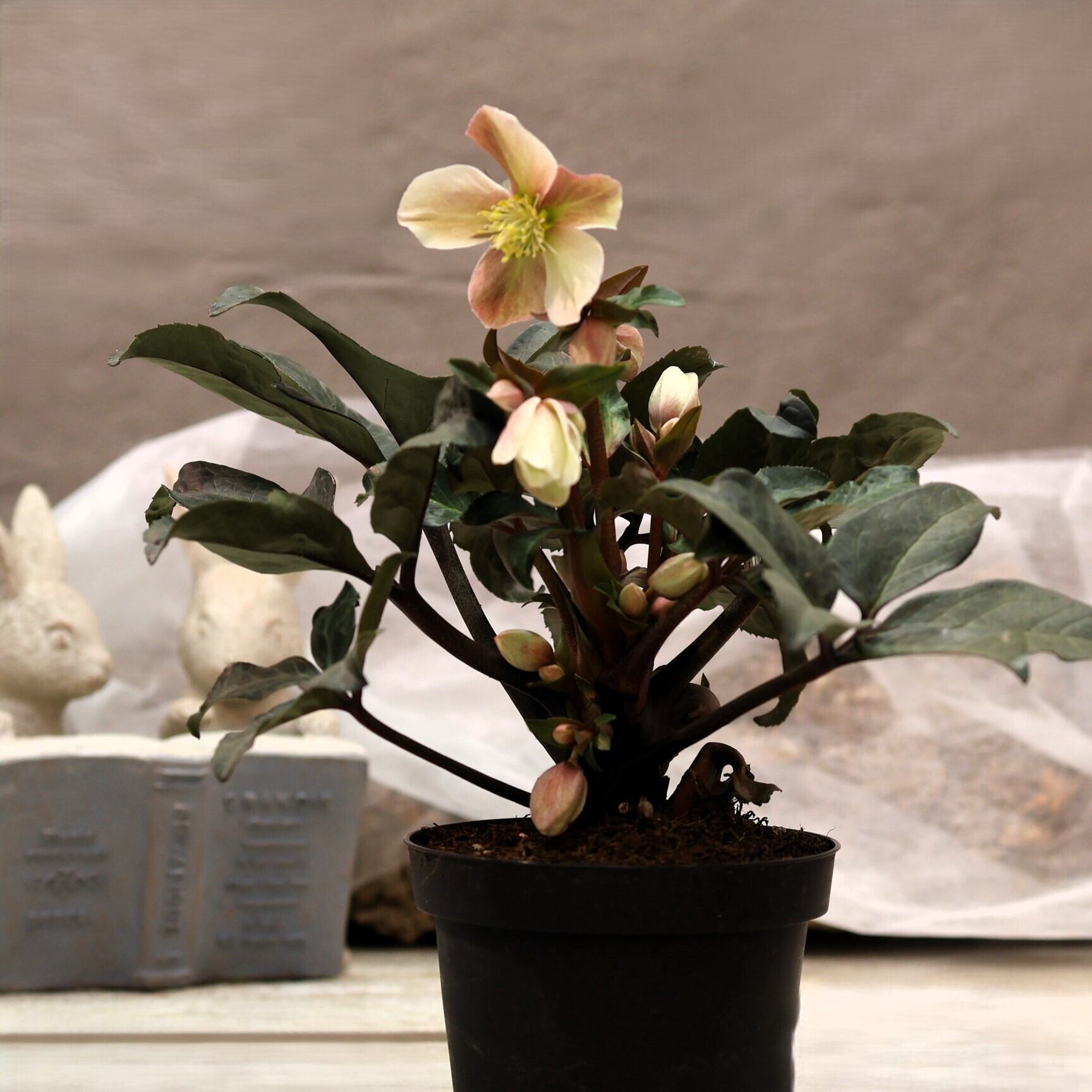 『クリスマスローズHGCマエストロ』は、一輪の花に、クリーム色とアンティークピンクが混ざり合っている品種です。