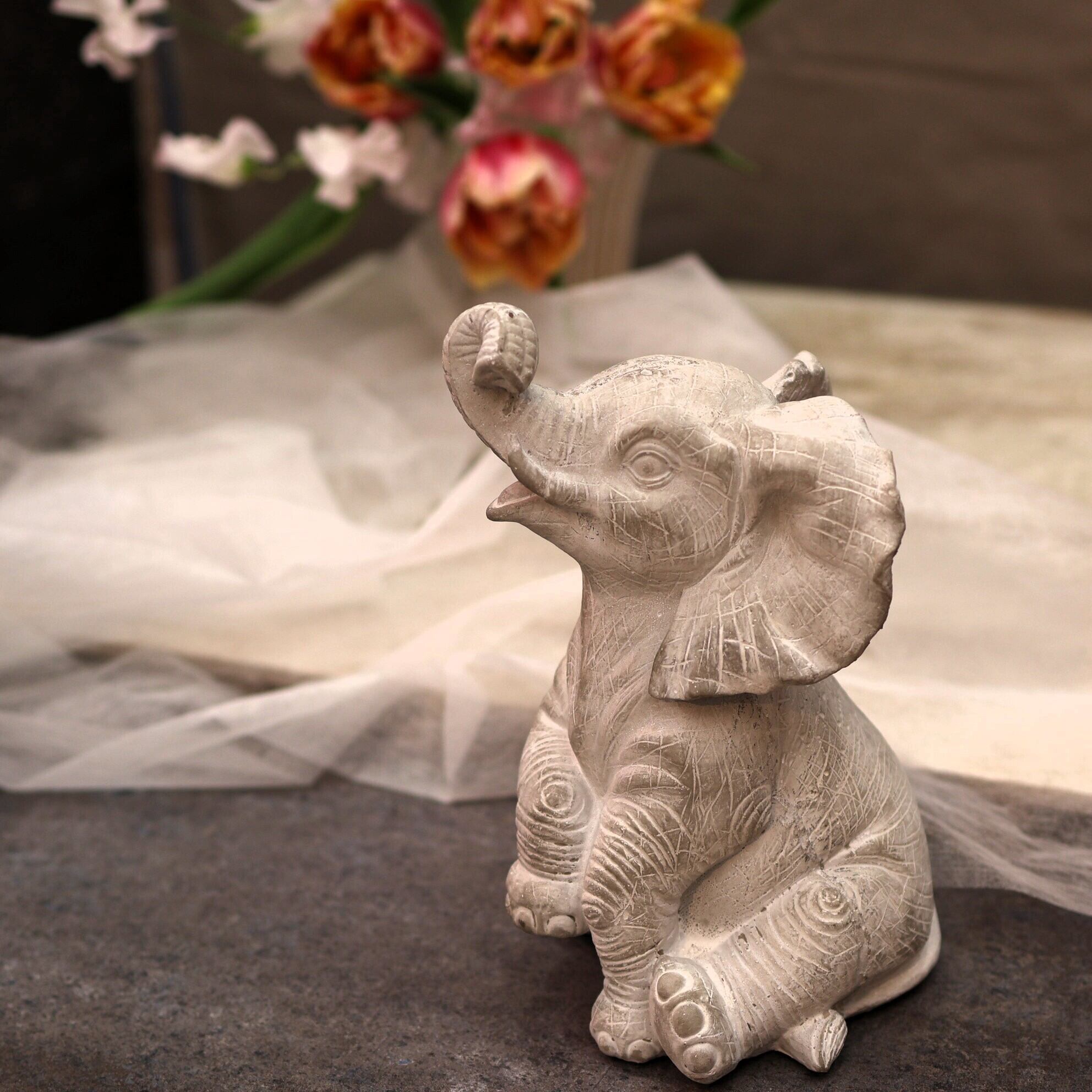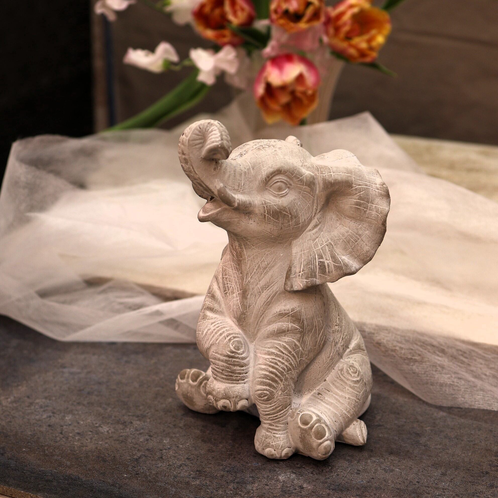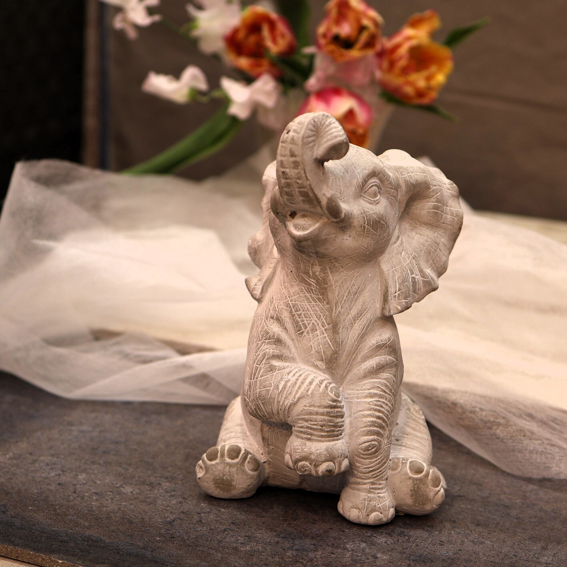 魅力的なデザインのゾウさんの置物です。ガーデン雑貨としてはもちろん、インテリアとしてもお楽しみいただけます。ゾウは縁起の良い動物とされていて、「安定」や「信頼」の象徴とも言われています。 ゾウのものを飾ると、後ろ立てに恵まれるとも言われています。 贈り物やプレゼントにもおすすめです。