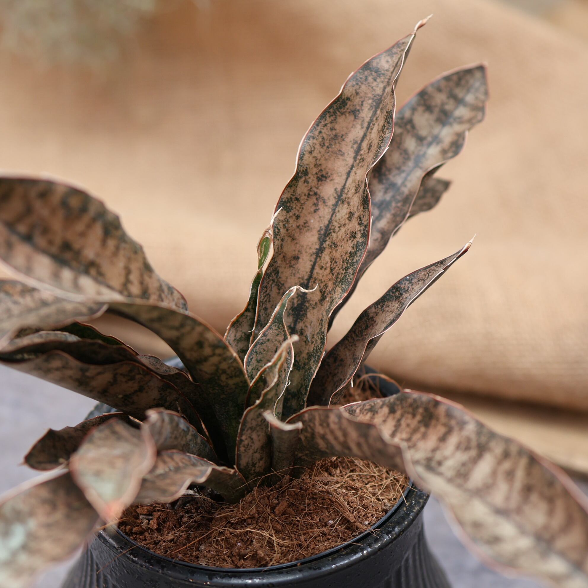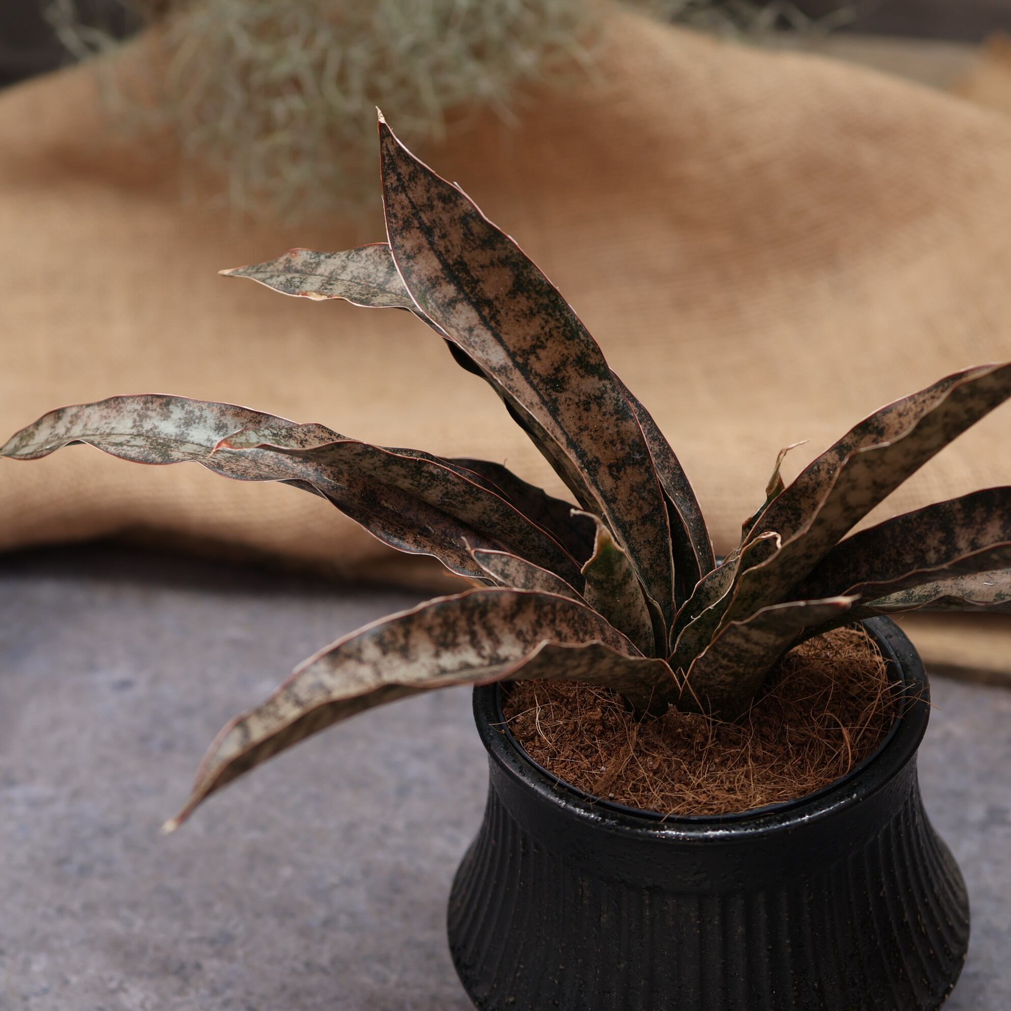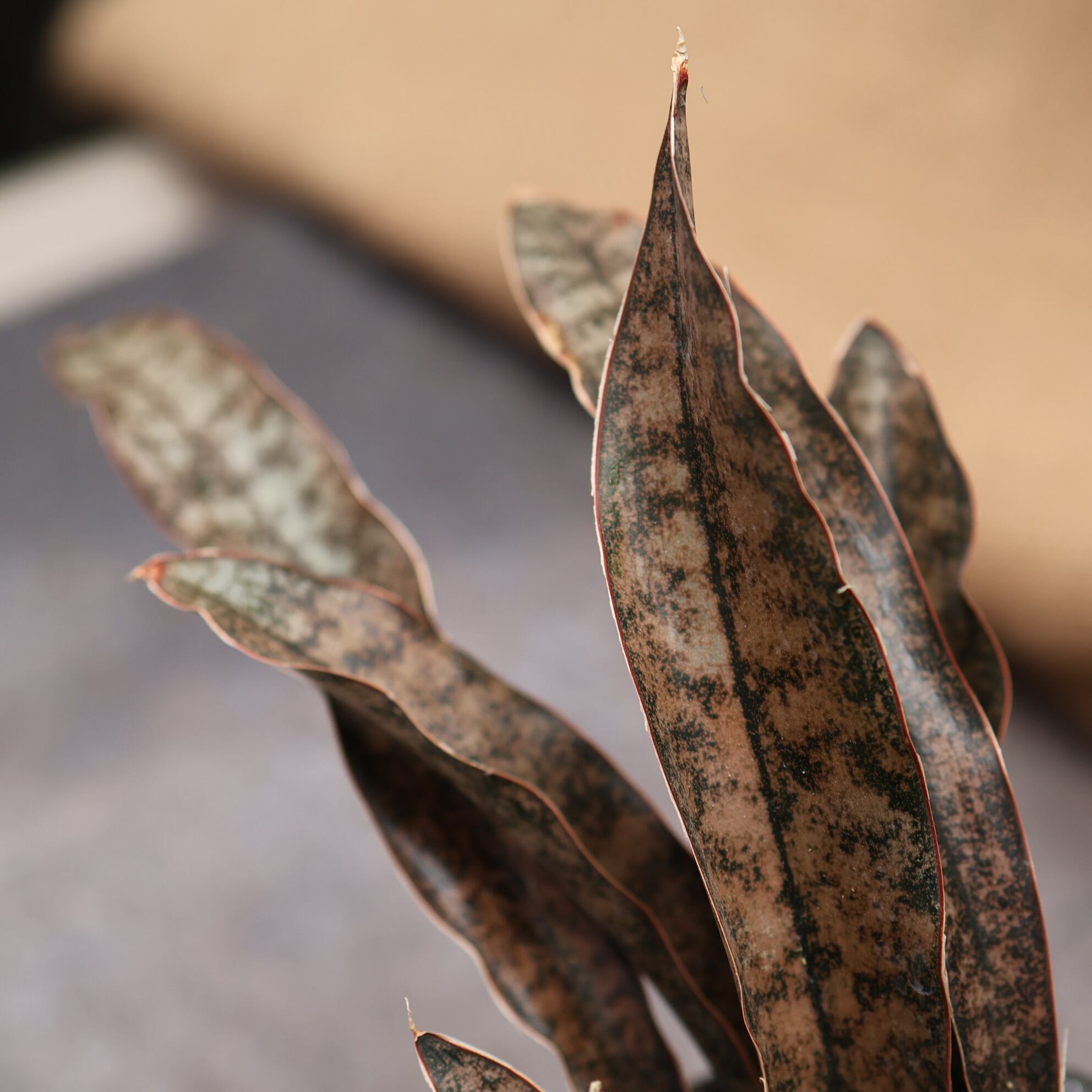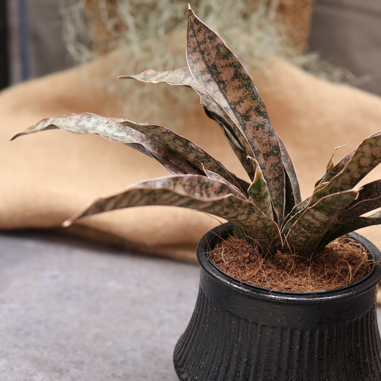 『サンスベリア コパトーン』は、サンスベリアの中でも個性的なカラーでインテリア性も高く、流通が少ない希少品種です。
