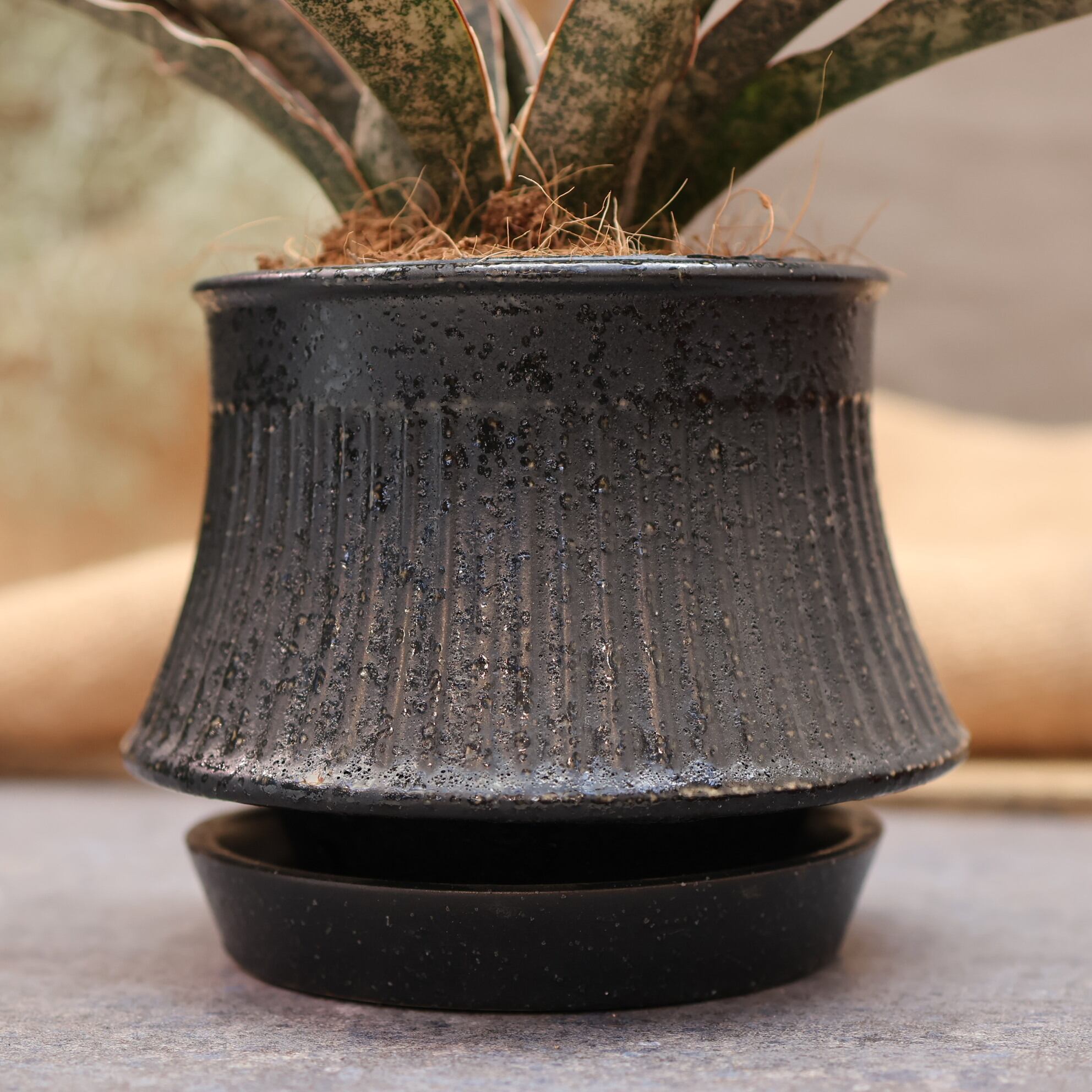 シックなデザインの鉢と鉢皿が付属し、お部屋のインテリアとしてもすぐにご利用いただけます