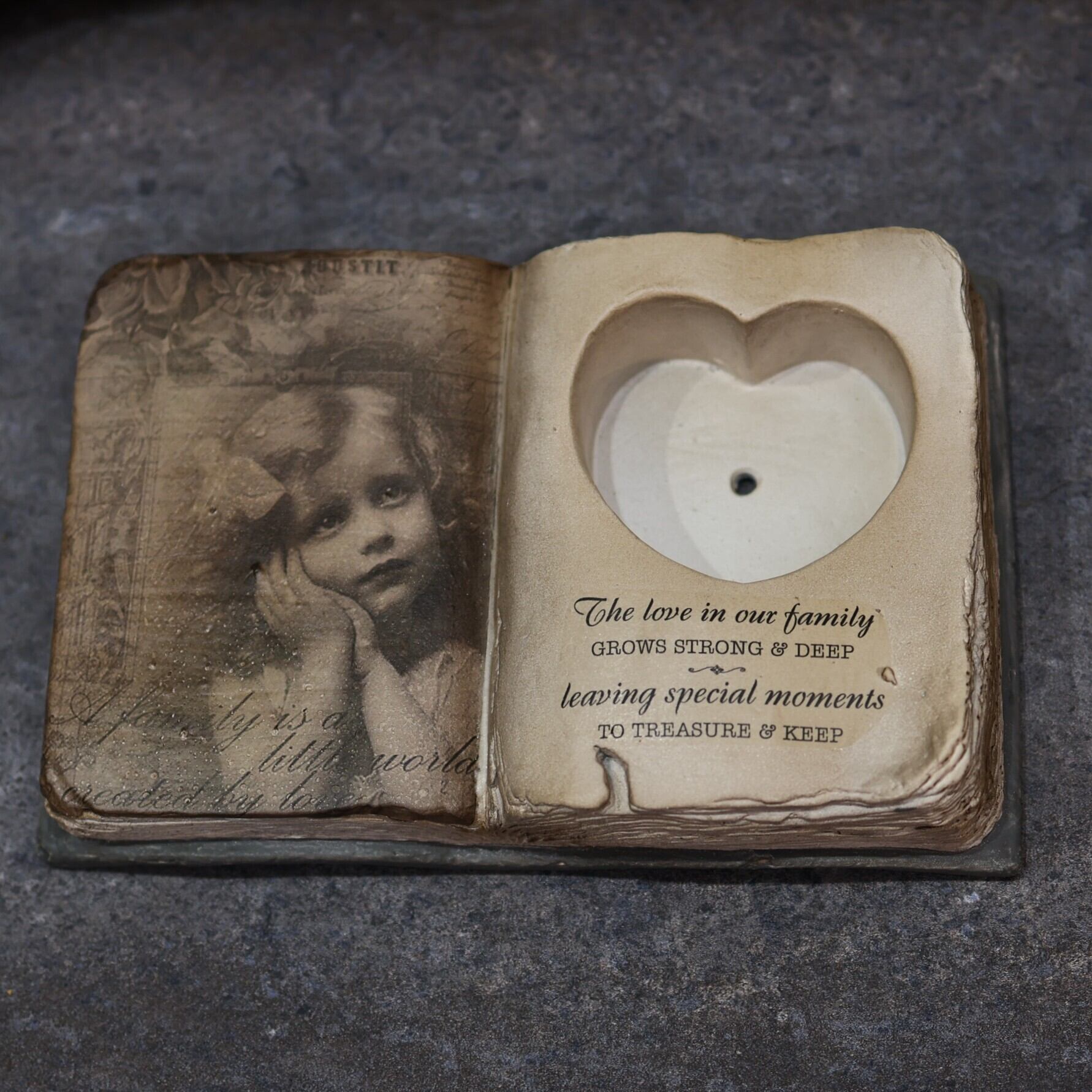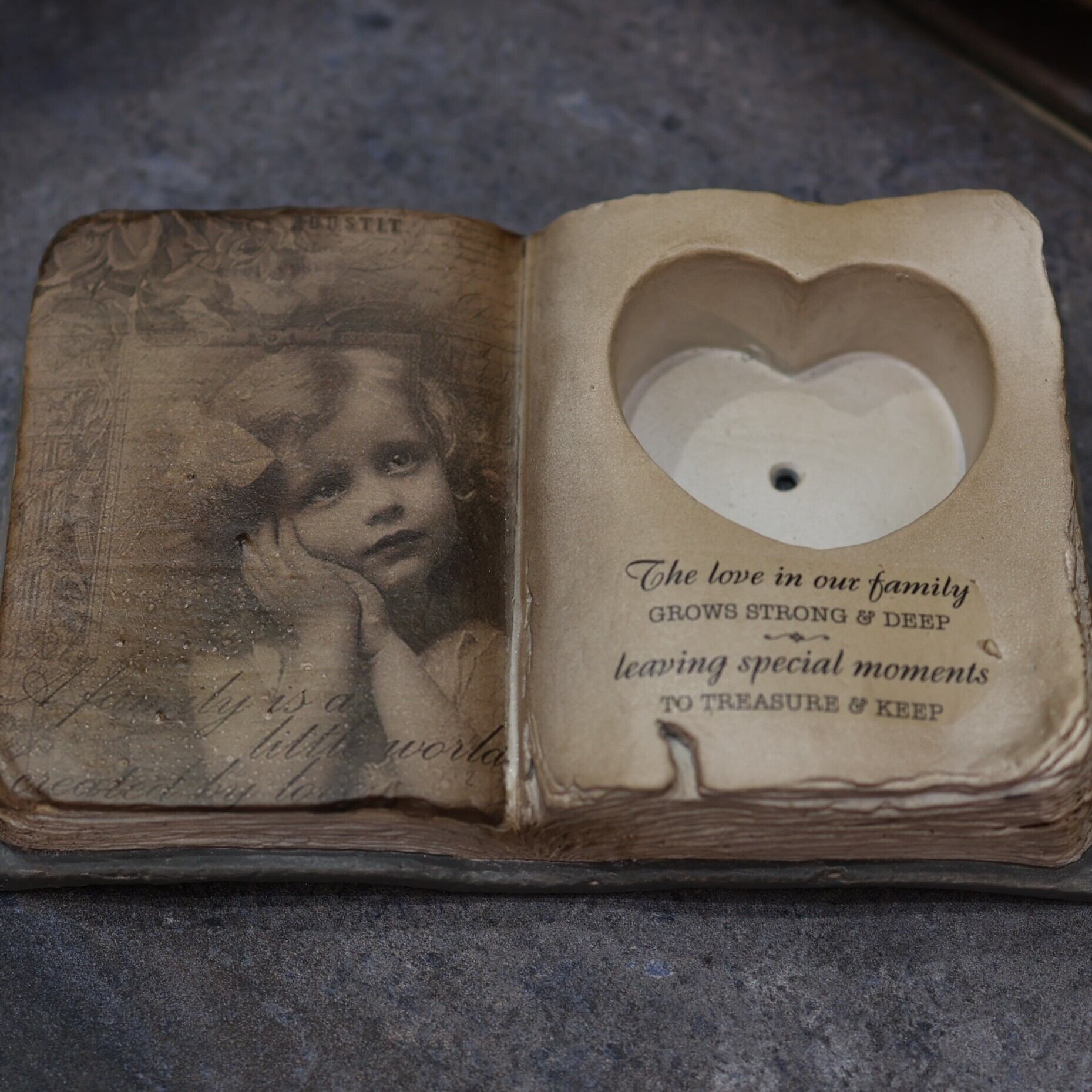 アンティークな洋書をモチーフにした多肉植物や小さな植物を植えるのにピッタリな鉢です。